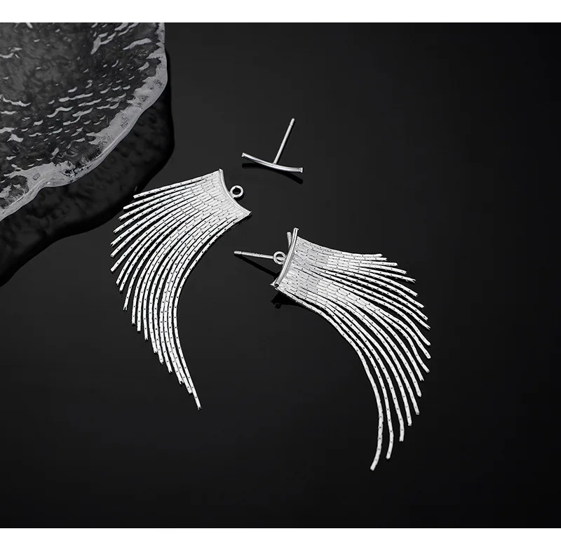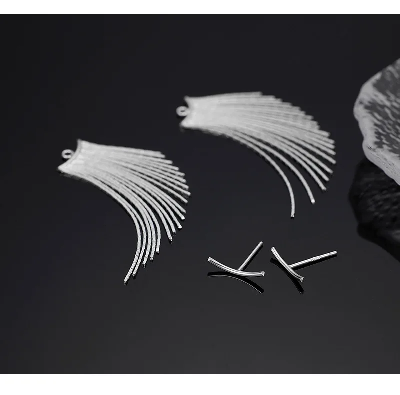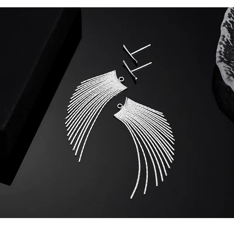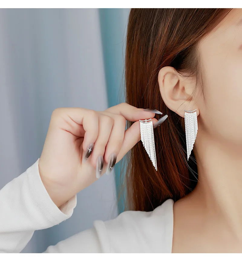 Jewel Type : F.I.N.S S925 Sterling Silver Long Tassel Drop Earrings Luxury Design Piercing Fringe Hanging Ear Studs Prevent Allergy Jewelry