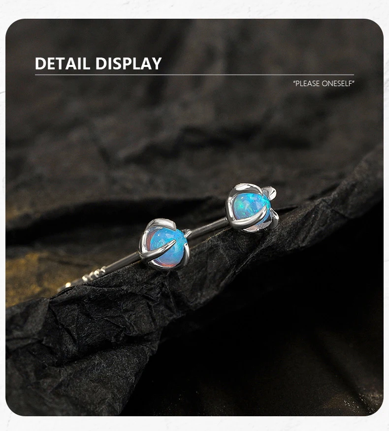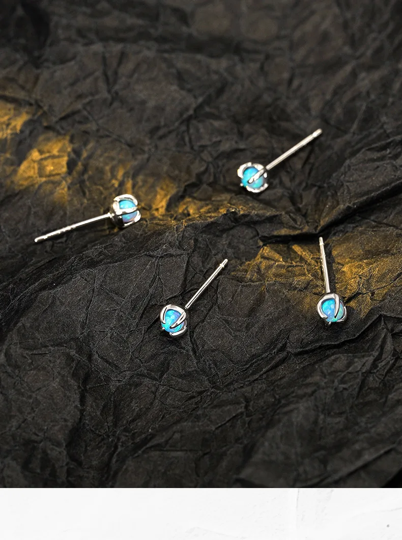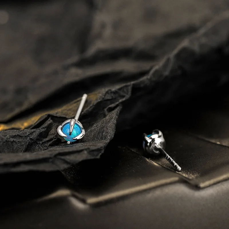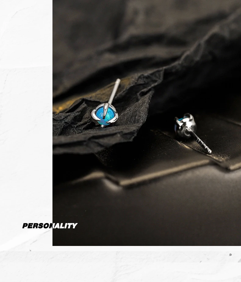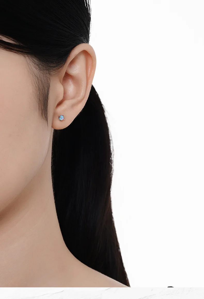 F.I.N.S Small Pure S925 Sterling Silver Colored Opal Piercing Earrings Mini Hypoallergenic Ear Stud Sleep Free Fine Jewelry