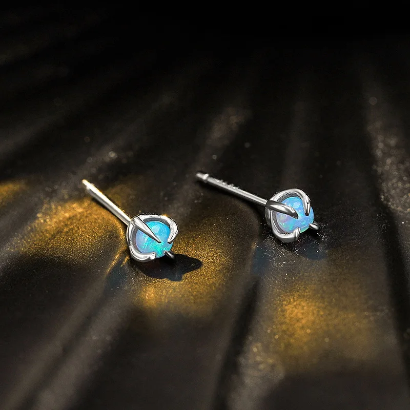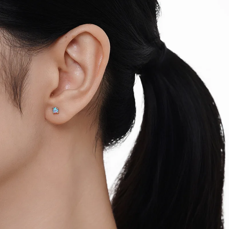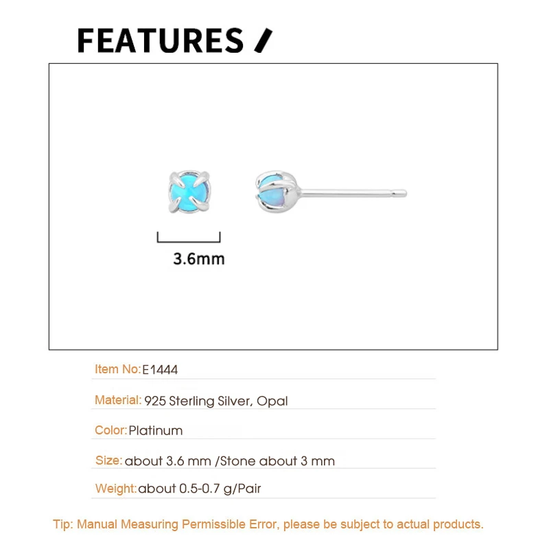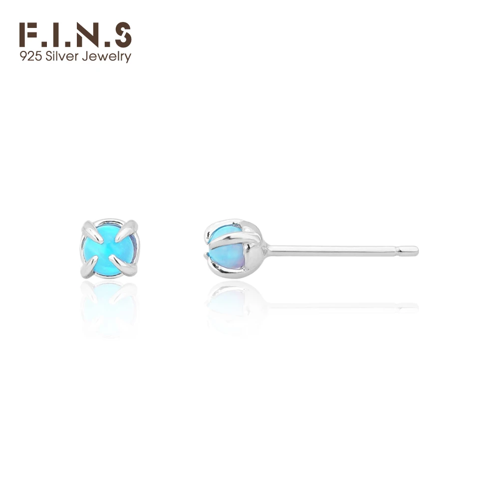Jewel Type : F.I.N.S Small Pure S925 Sterling Silver Colored Opal Piercing Earrings Mini Hypoallergenic Ear Stud Sleep Free Fine Jewelry