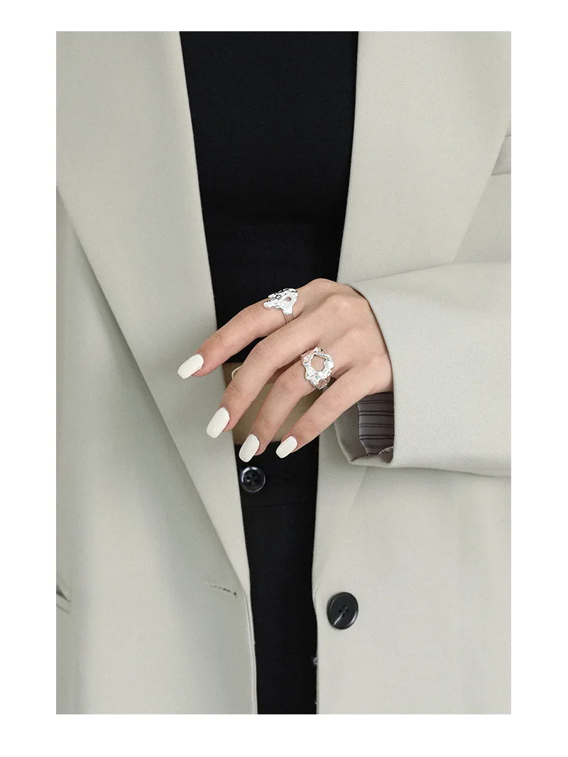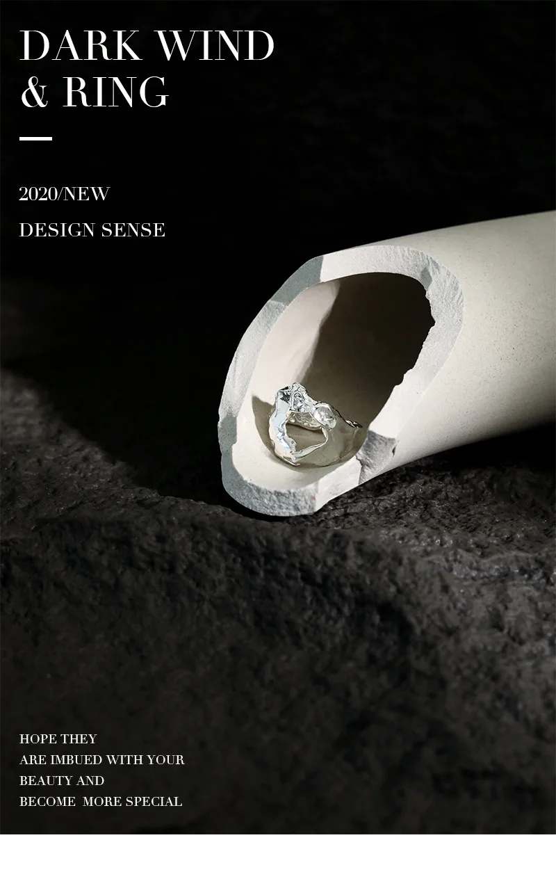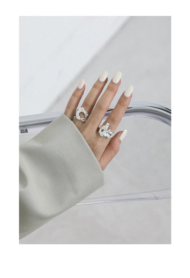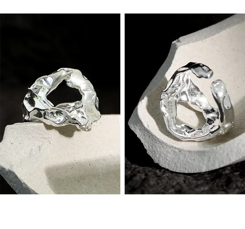 Jewel Type : F.I.N.S Unique Design Texture Authentic S925 Sterling Silver Rings Irregular Hollow Uneven Surface Finger Ring Prevent Allergy