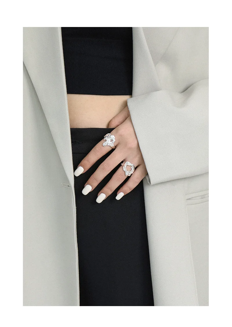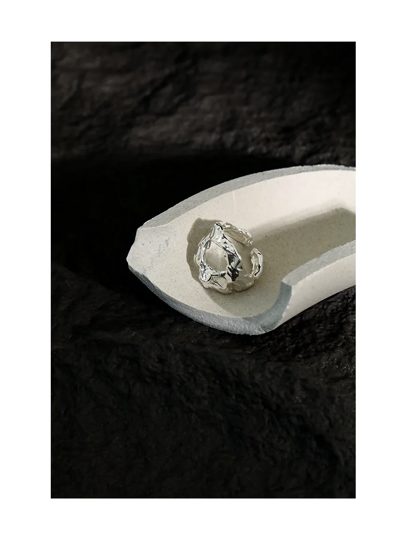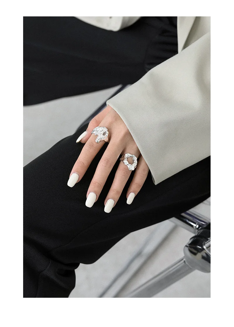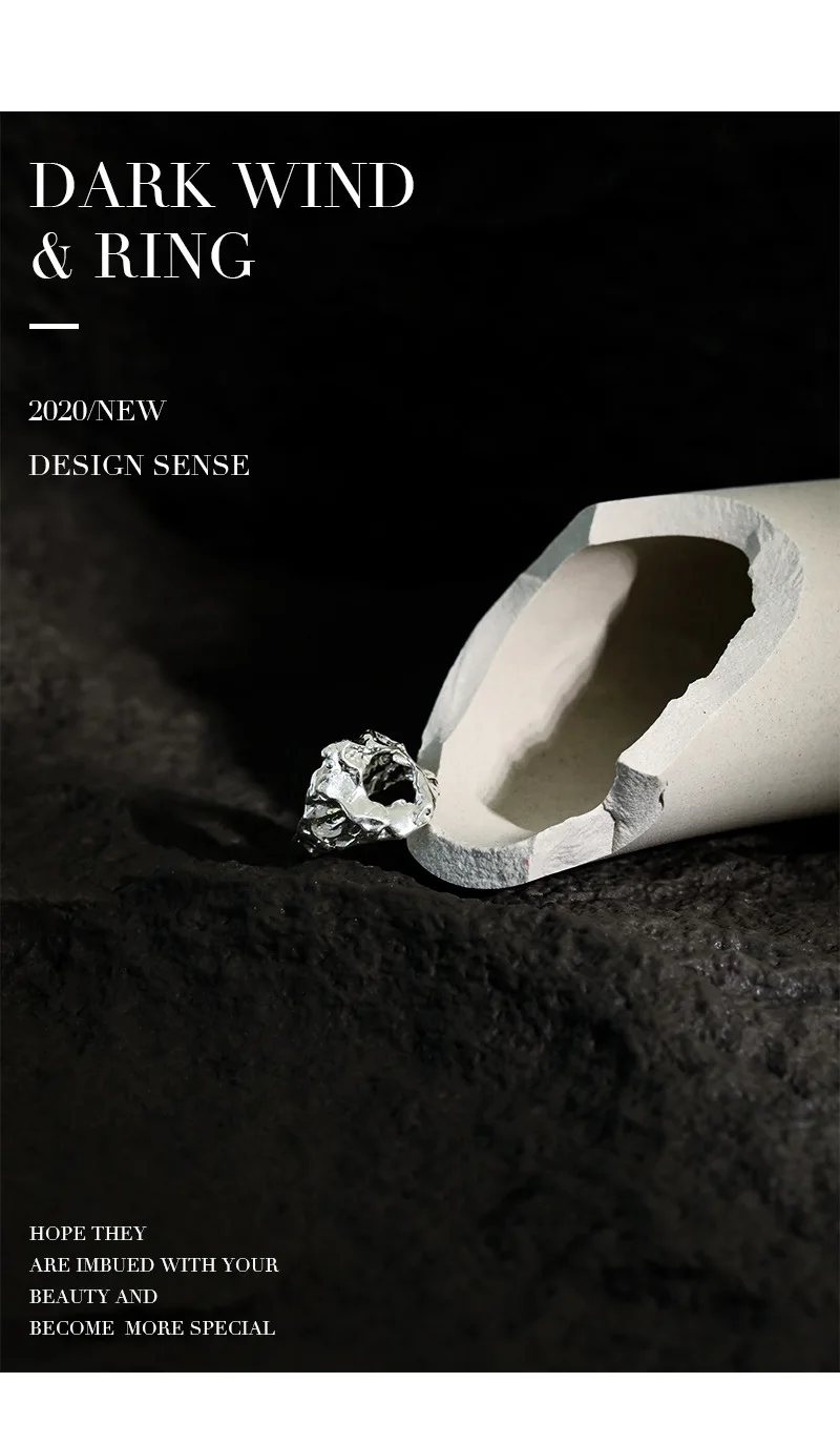 Jewel Type : F.I.N.S Unique Design Texture Authentic S925 Sterling Silver Rings Irregular Hollow Uneven Surface Finger Ring Prevent Allergy