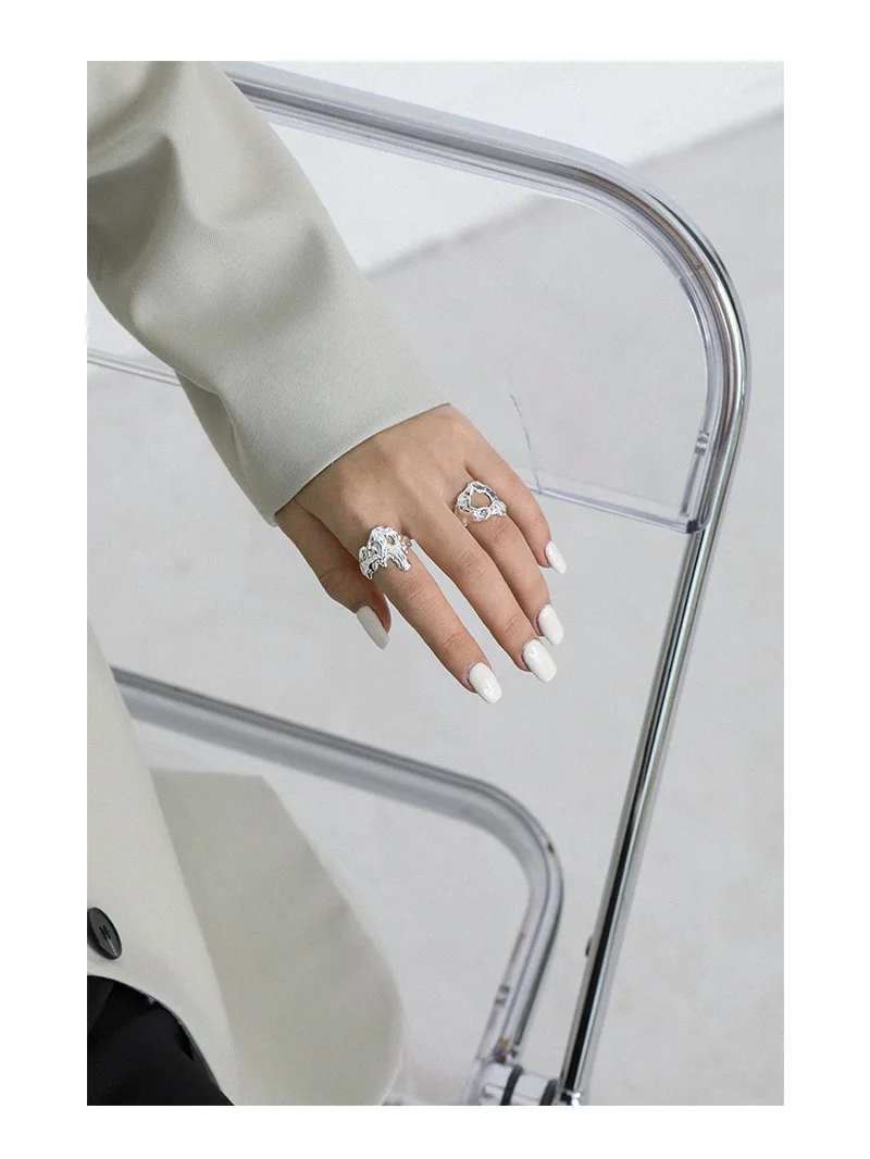 F.I.N.S Unique Design Texture Authentic S925 Sterling Silver Rings Irregular Hollow Uneven Surface Finger Ring Prevent Allergy