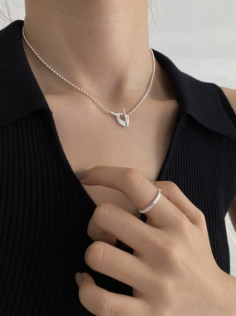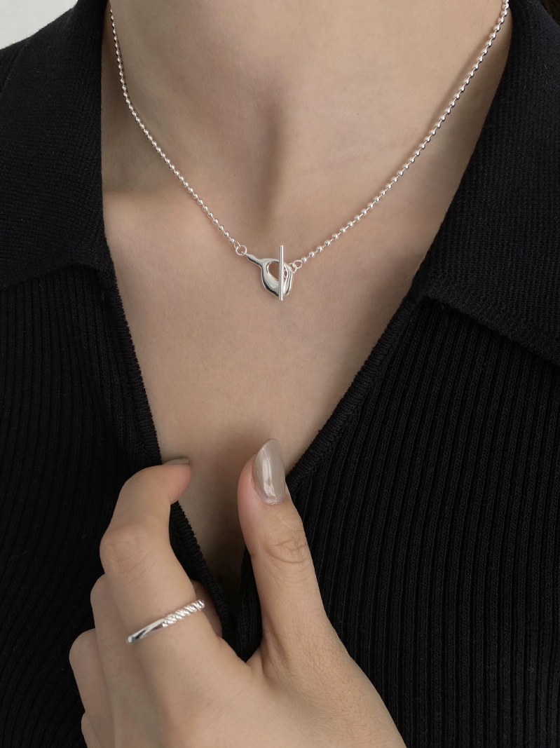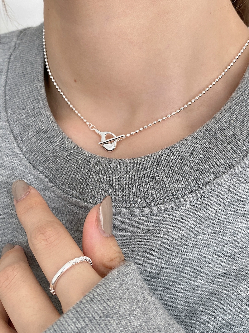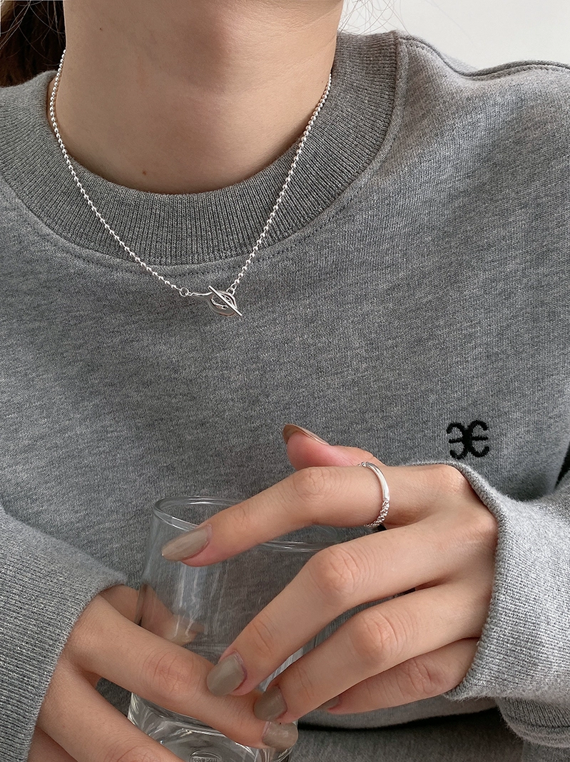 Ins style necklace cold S925 sterling silver irregular round bead necklace women’s trendy simple niche neck chain clavicle chain
