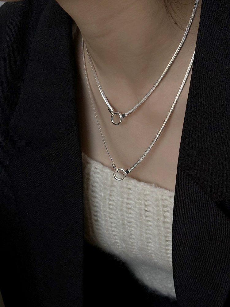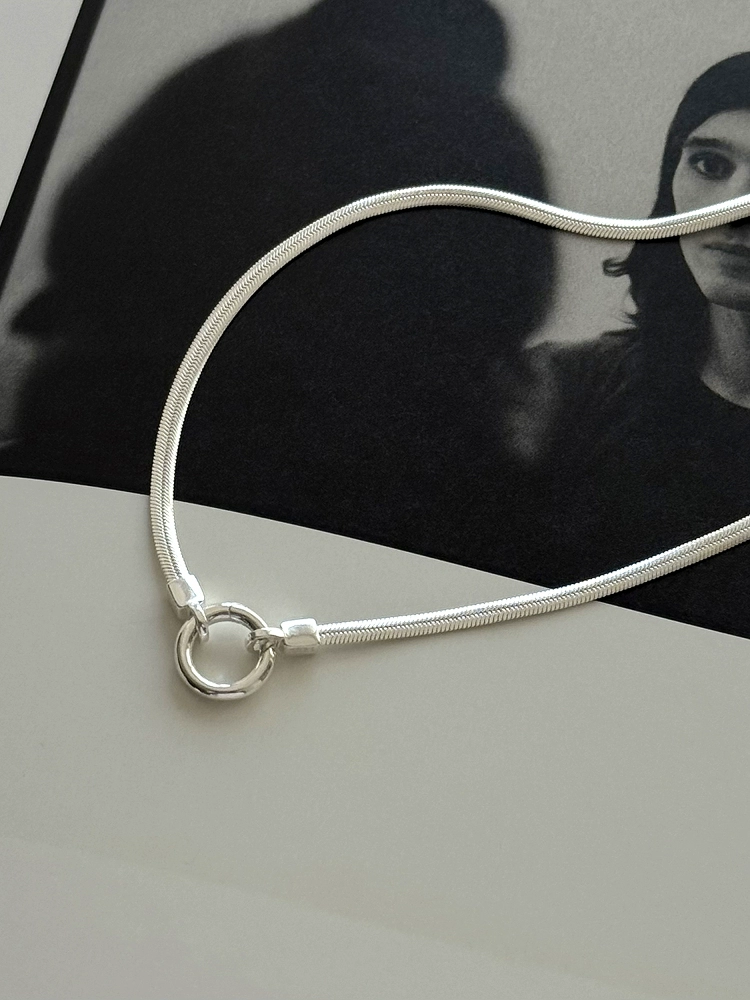 ins style S925 sterling silver heavy industry forged flat snake bone chain niche design personalized clavicle chain neck chain simple single chain