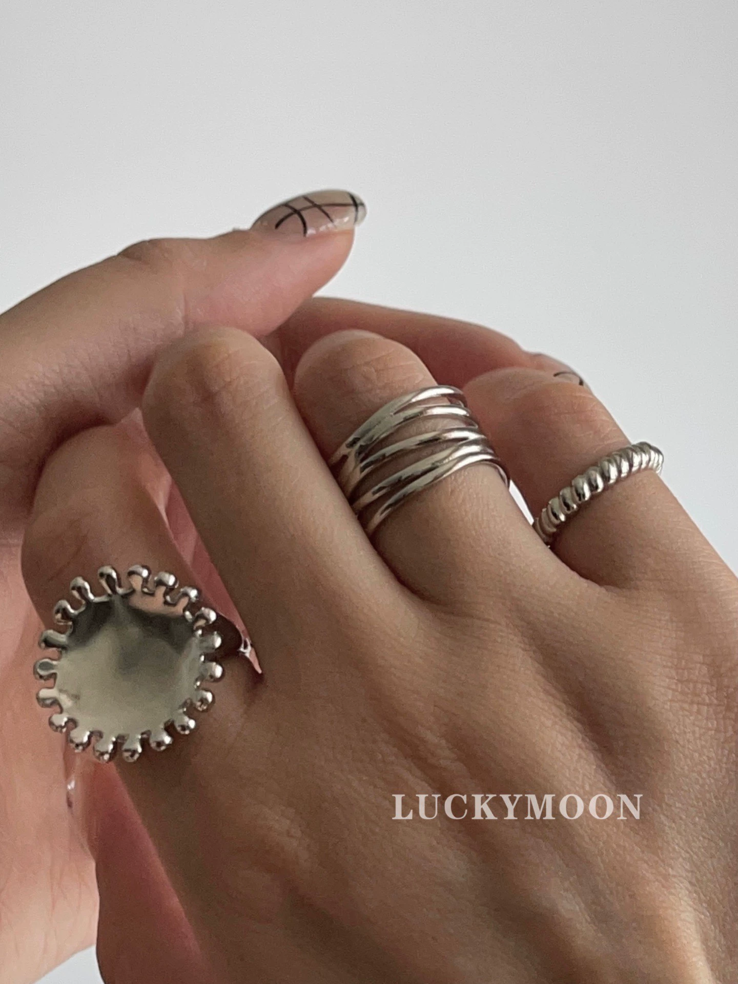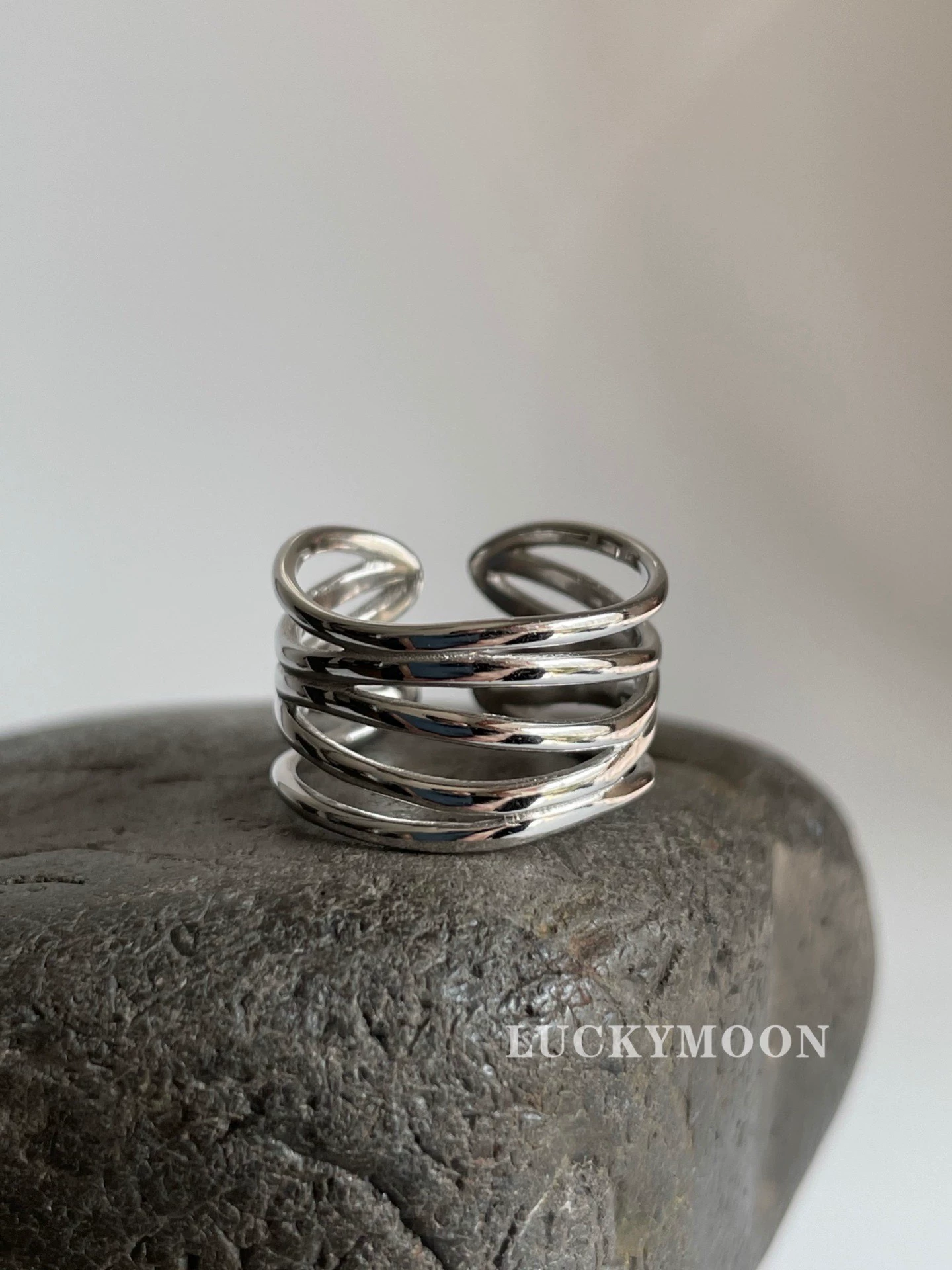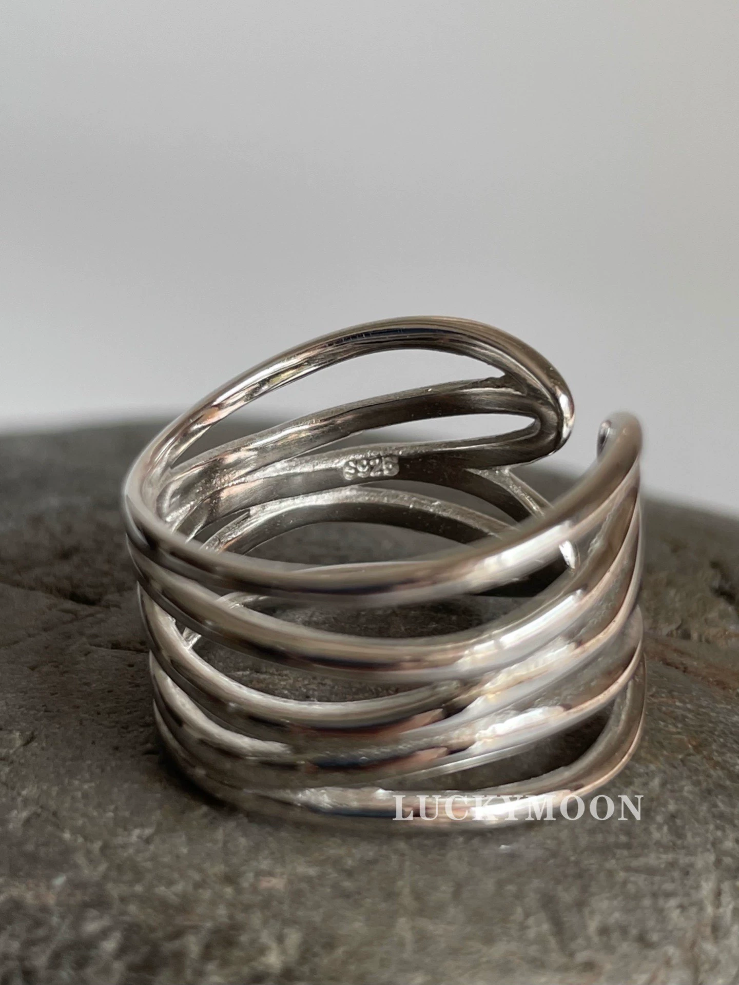Irregular multi-line ring S925 sterling silver opening adjustable R061