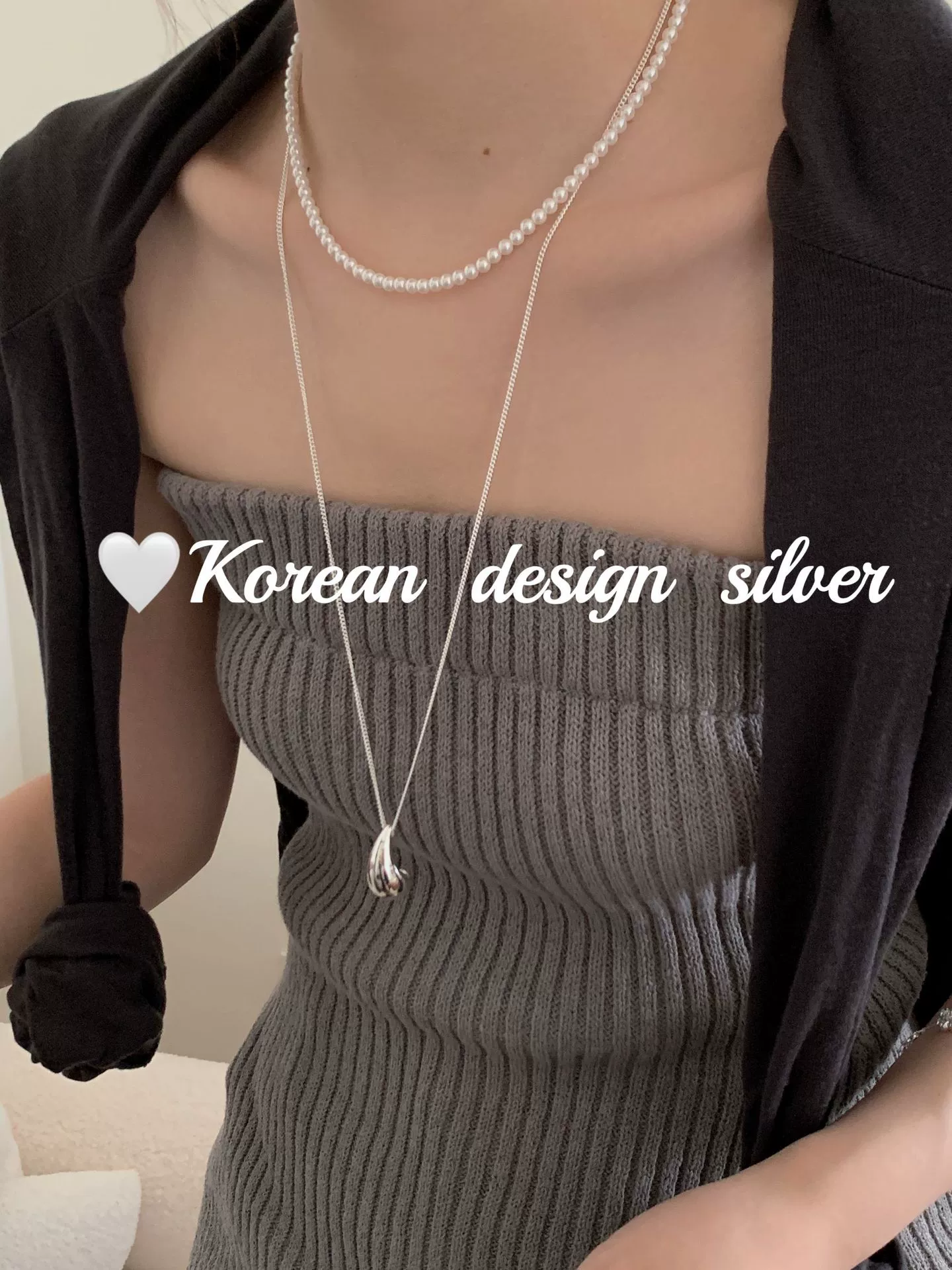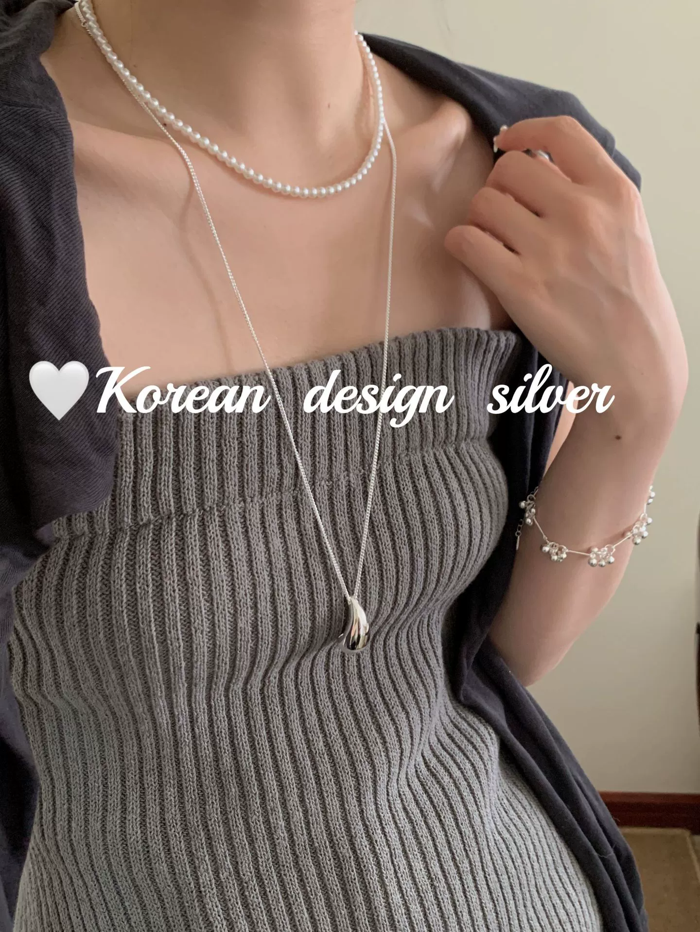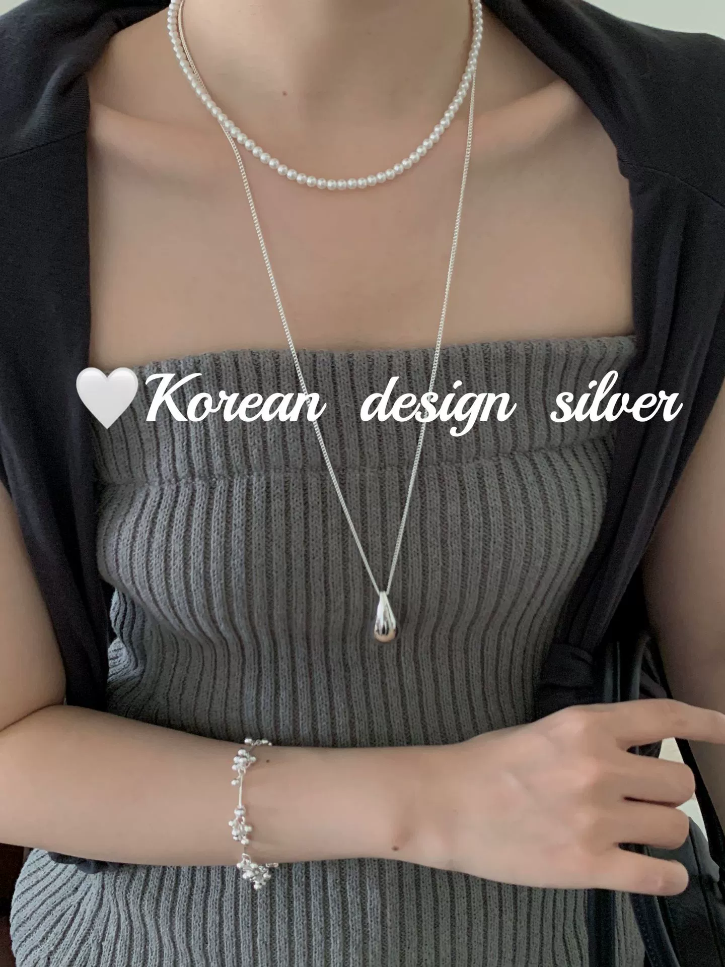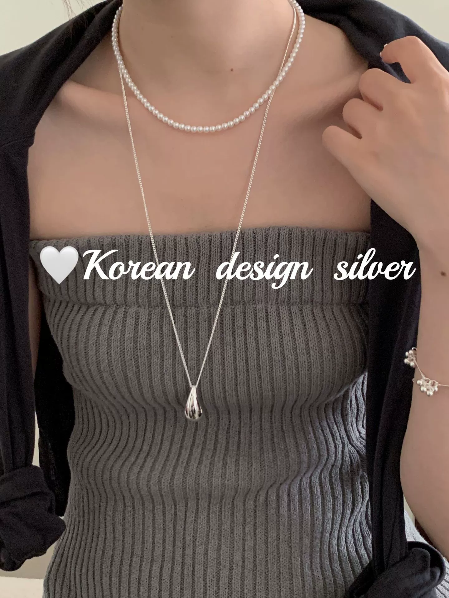 Korean ins style personalized heavy silver jewelry S925 sterling silver drop-shaped long 60cm necklace high-end sweater chain