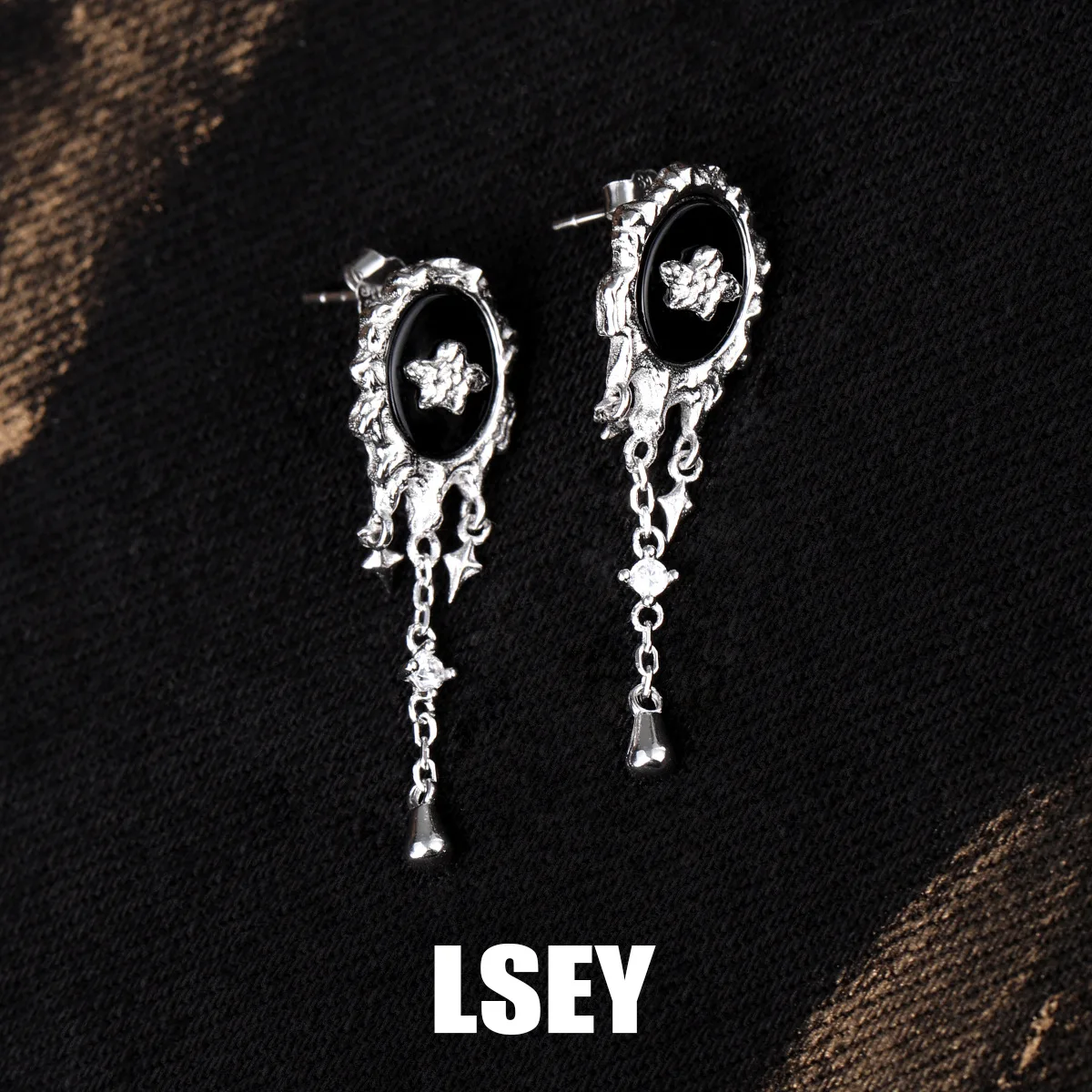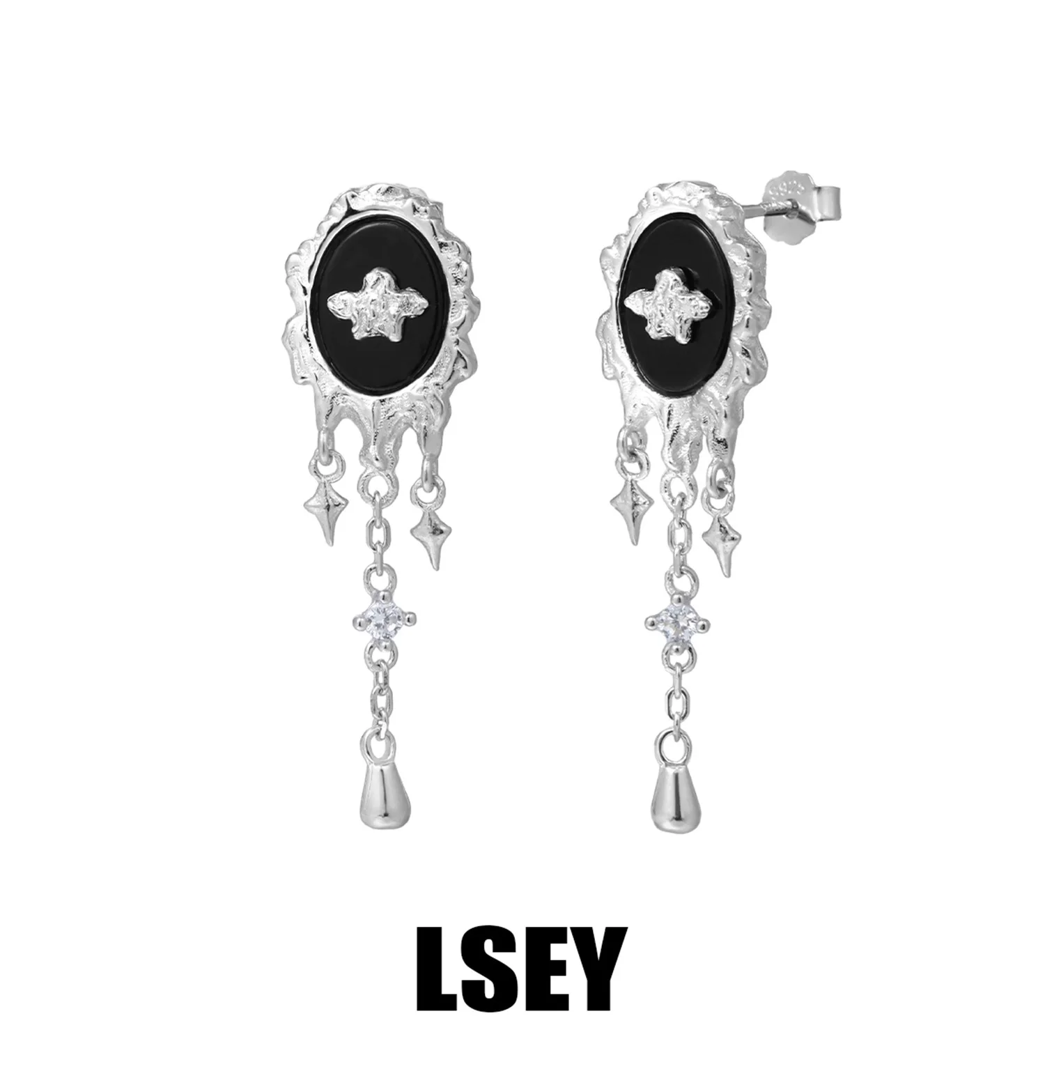 Minimalist S925 Sterling Silver Black agate liquid...