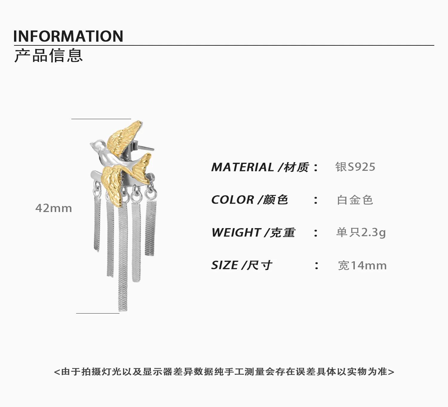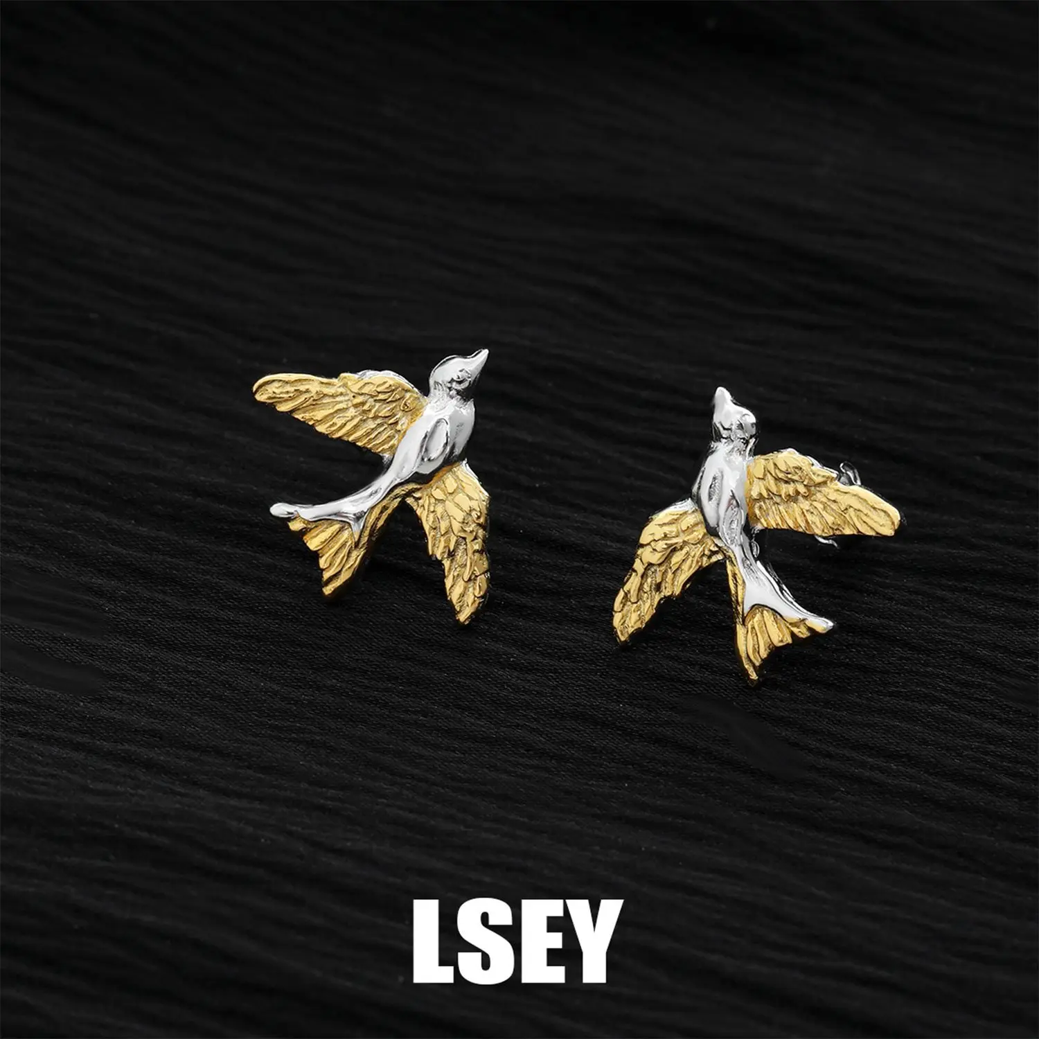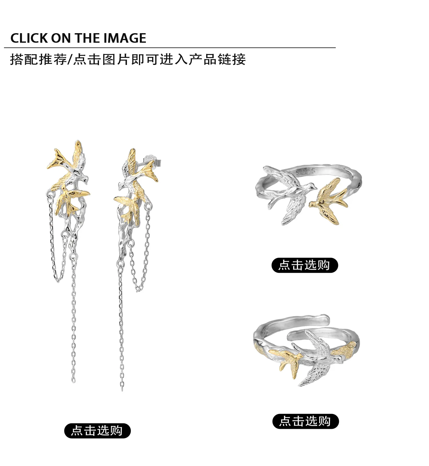 Minimalist S925 Sterling Silver Flying bird flat t...