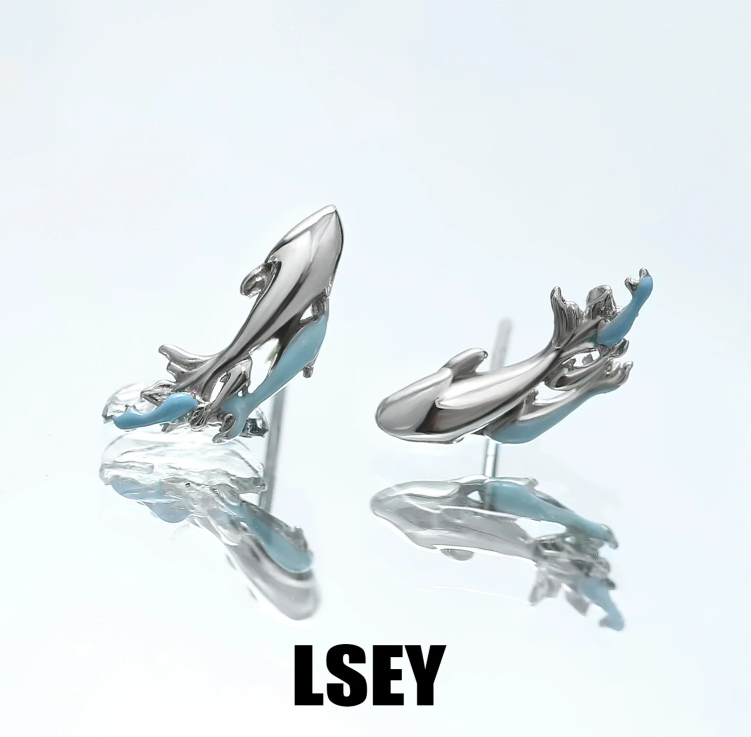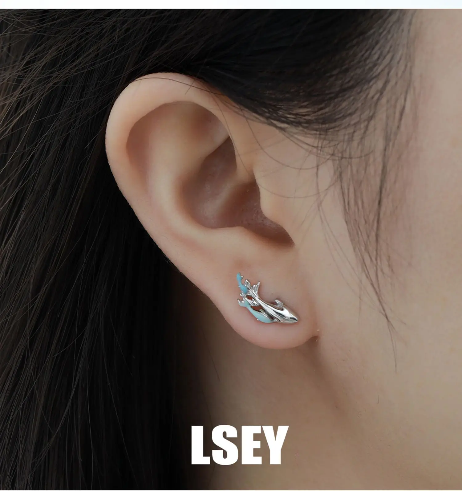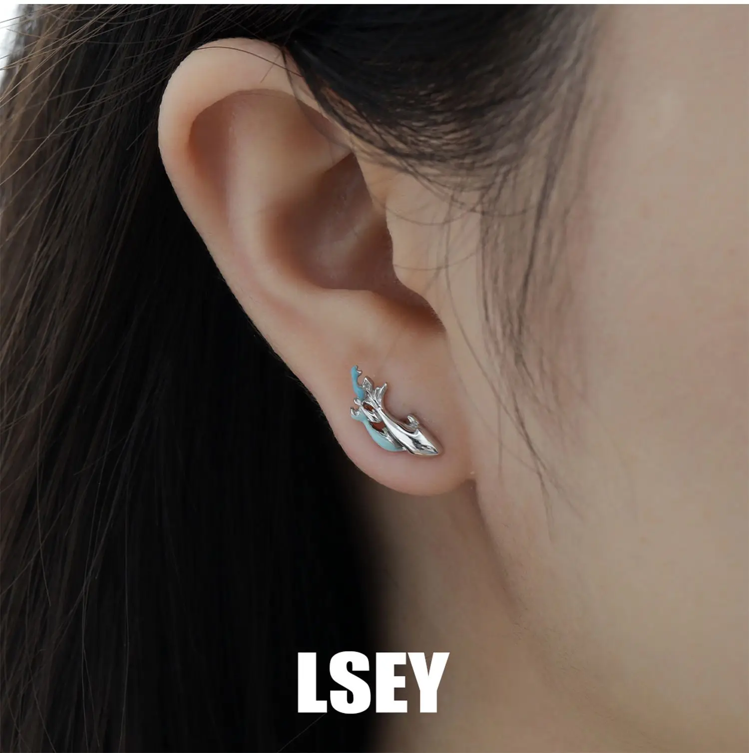 Minimalist S925 Sterling Silver Koi drip glue earr...