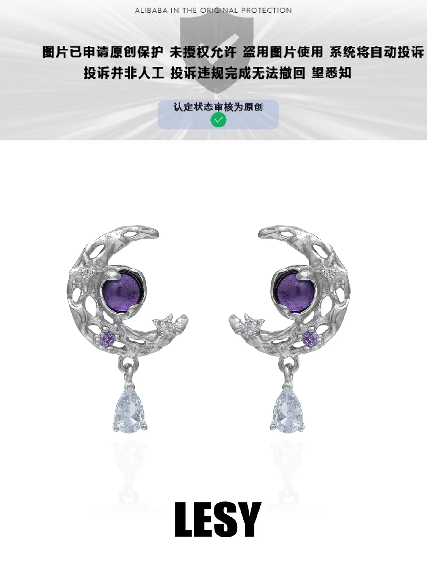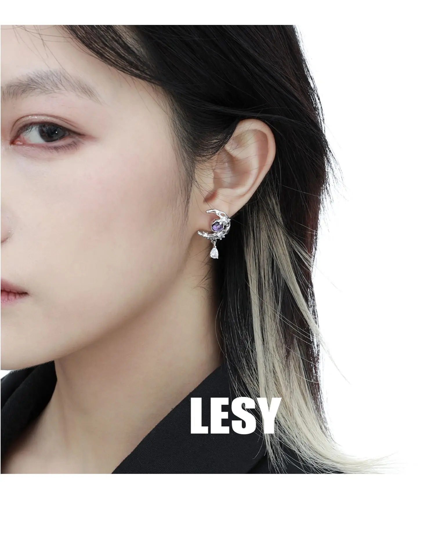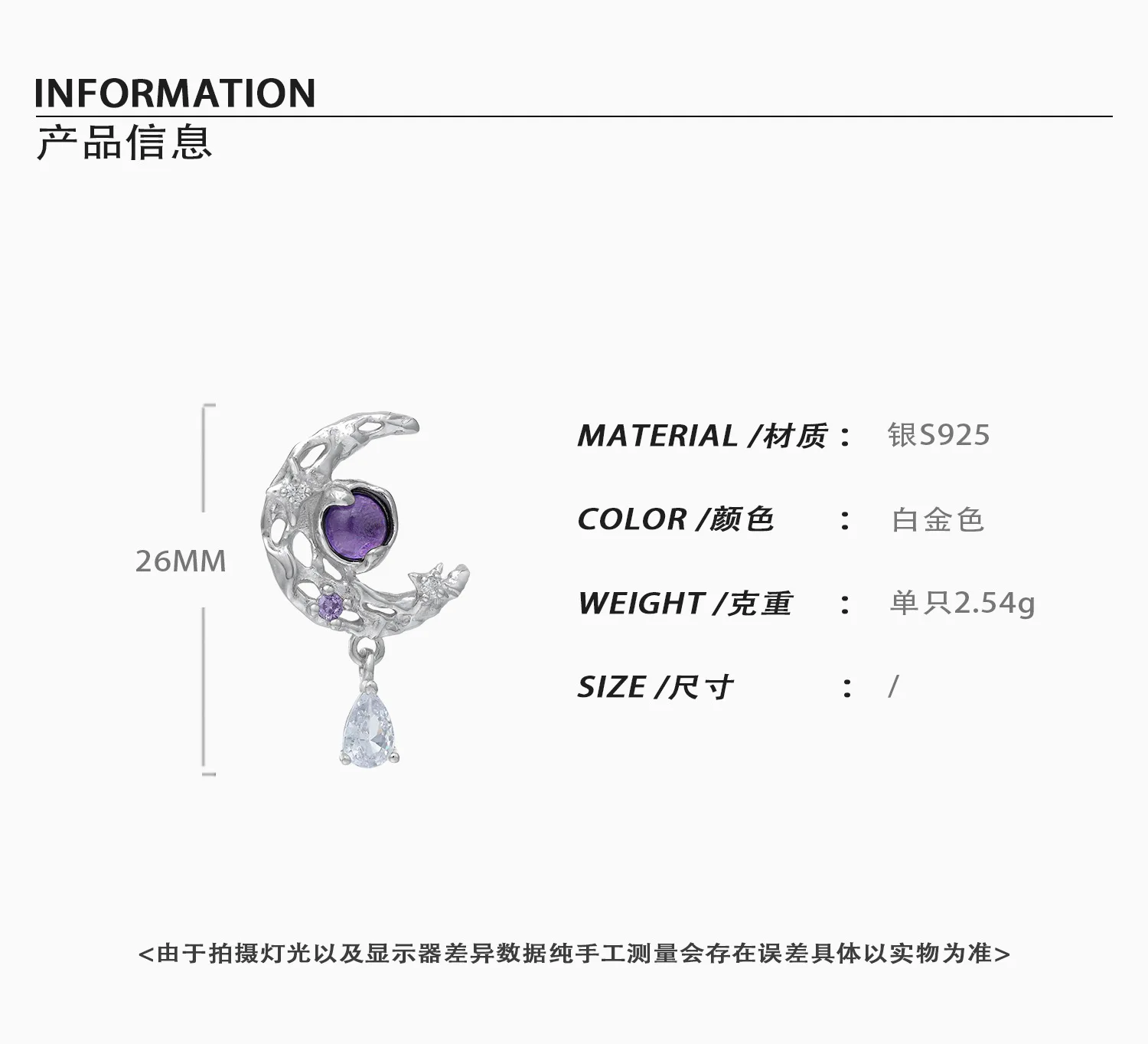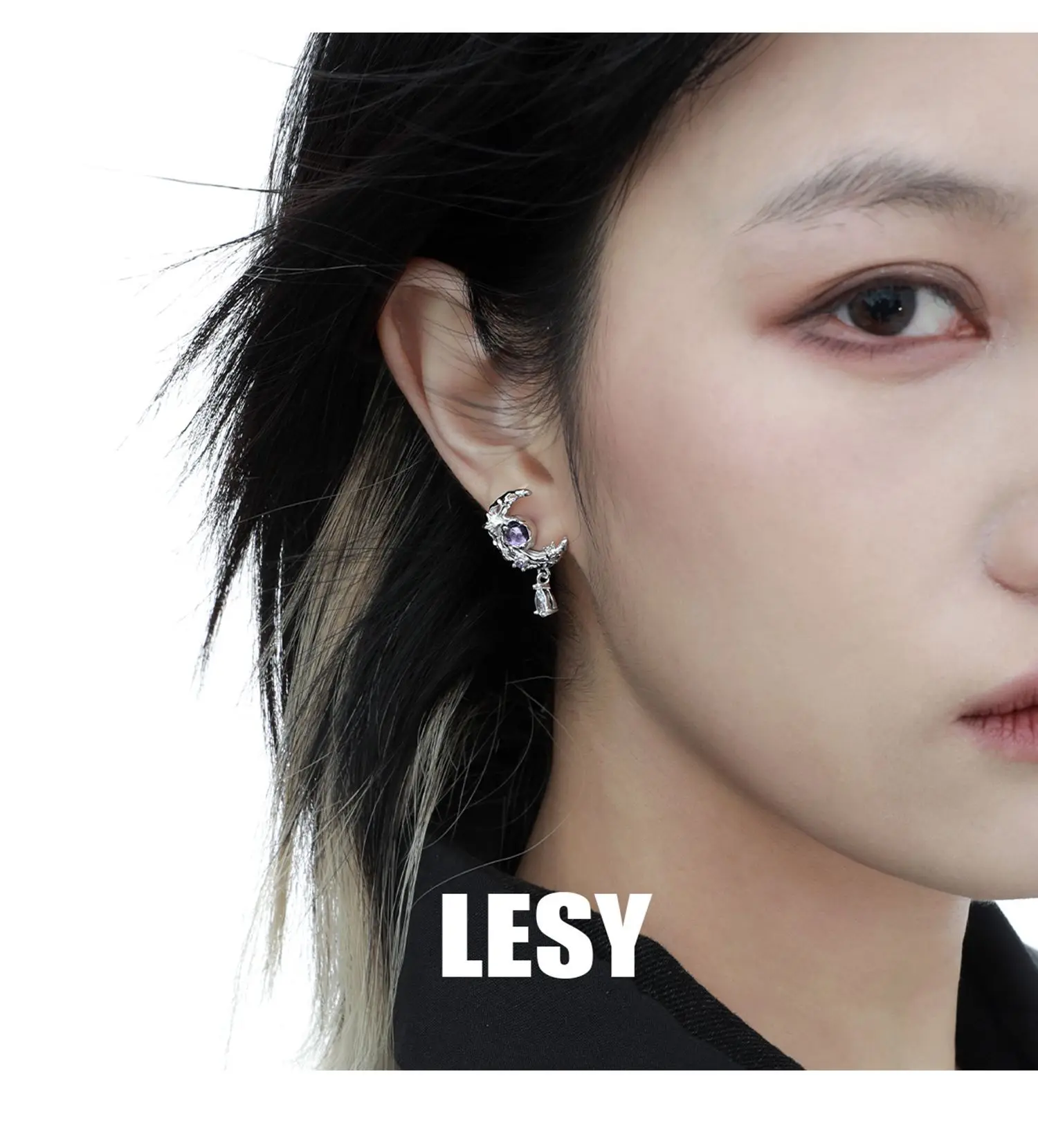 Minimalist S925 Sterling Silver Lava texture moon,...