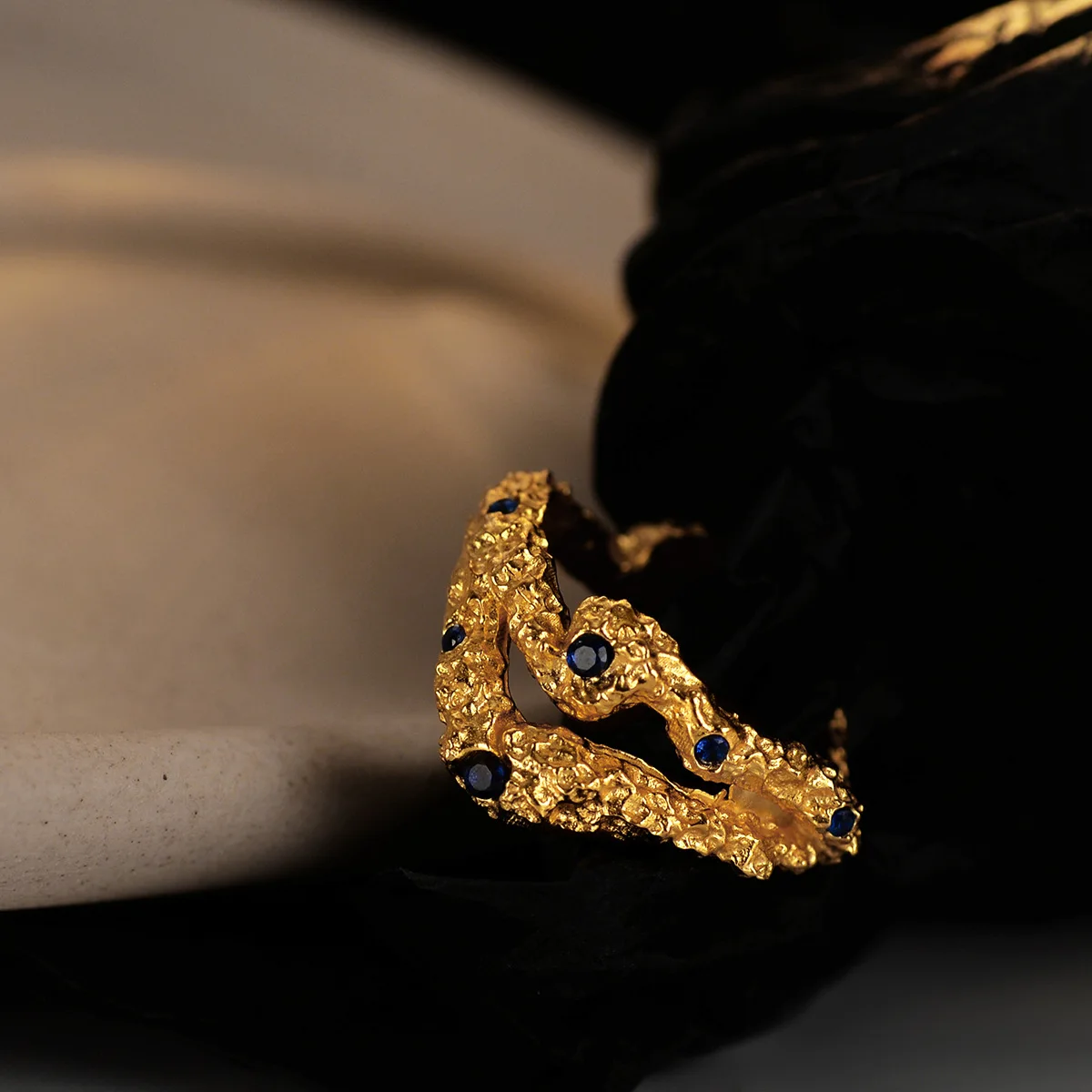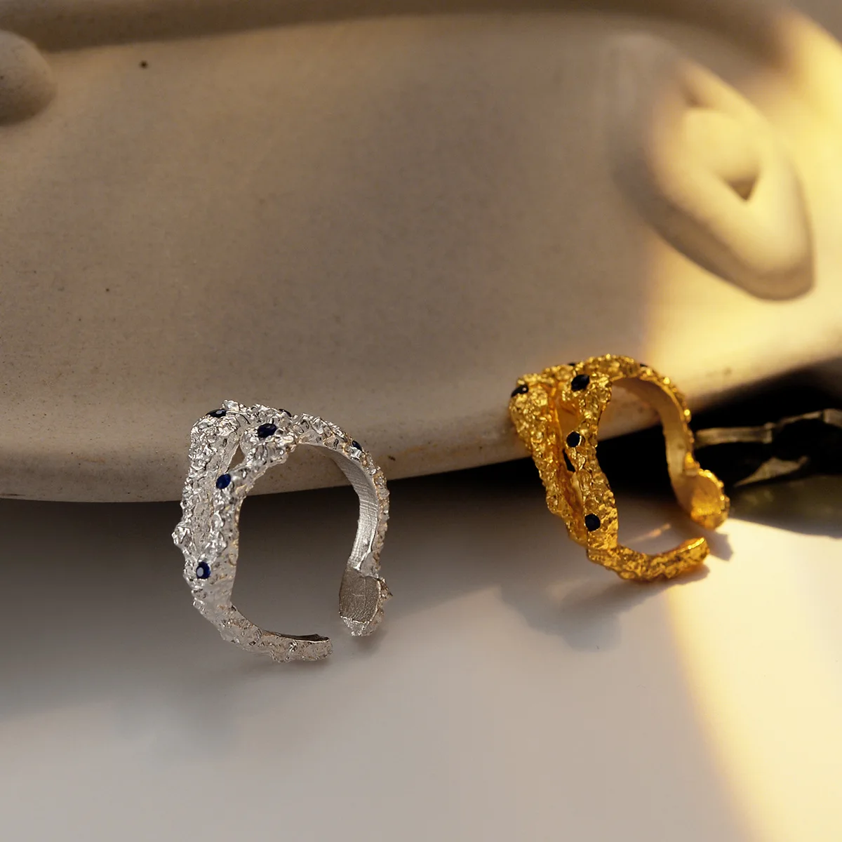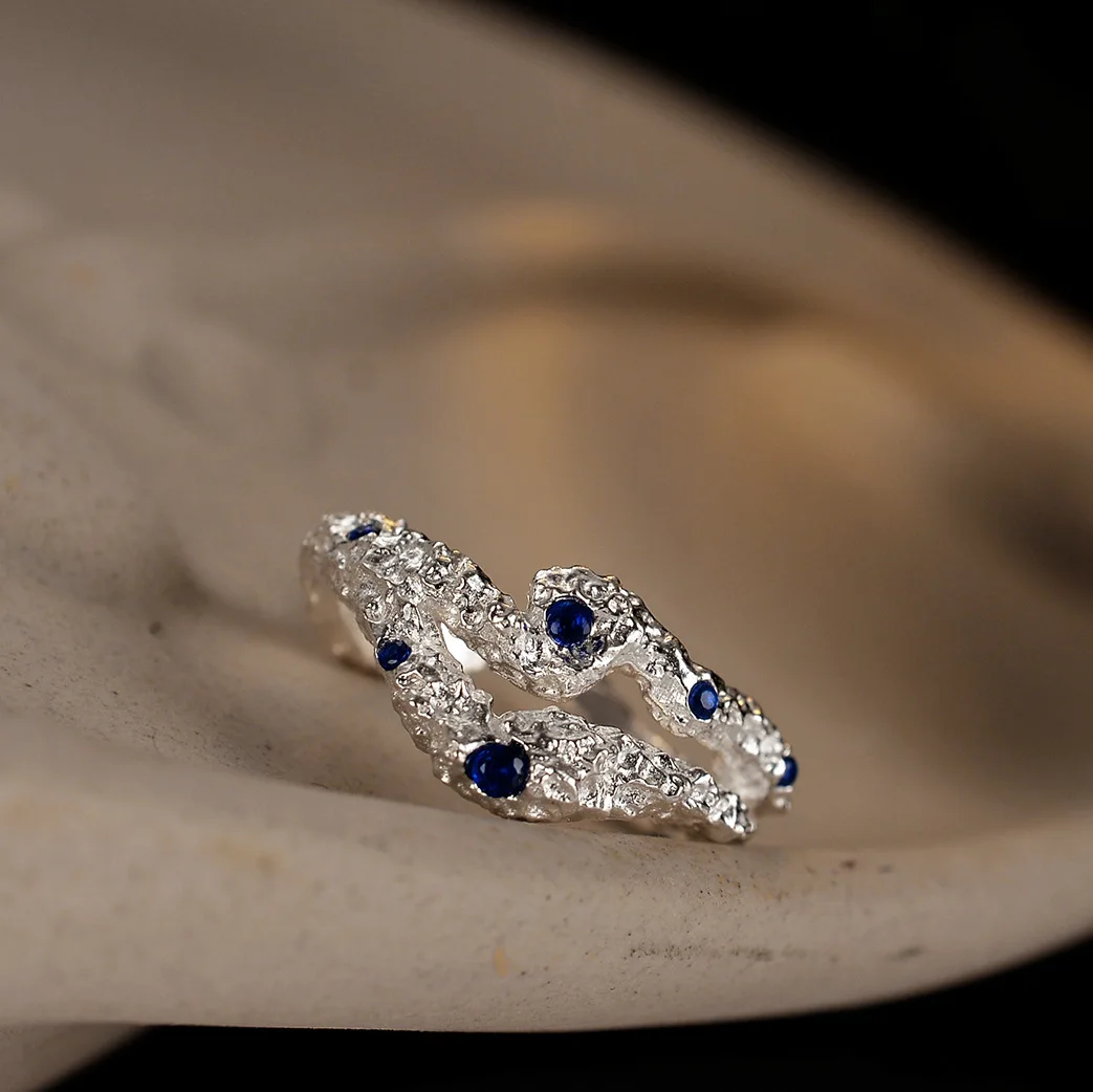 MLKENLY Blue Zircon Inlaid Hollow Burnt Finger Rin...