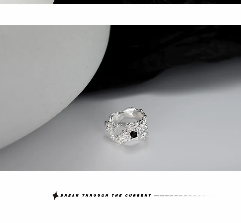 MLKENLY CZ Crystal Irregular Surface Real S925 Ste...