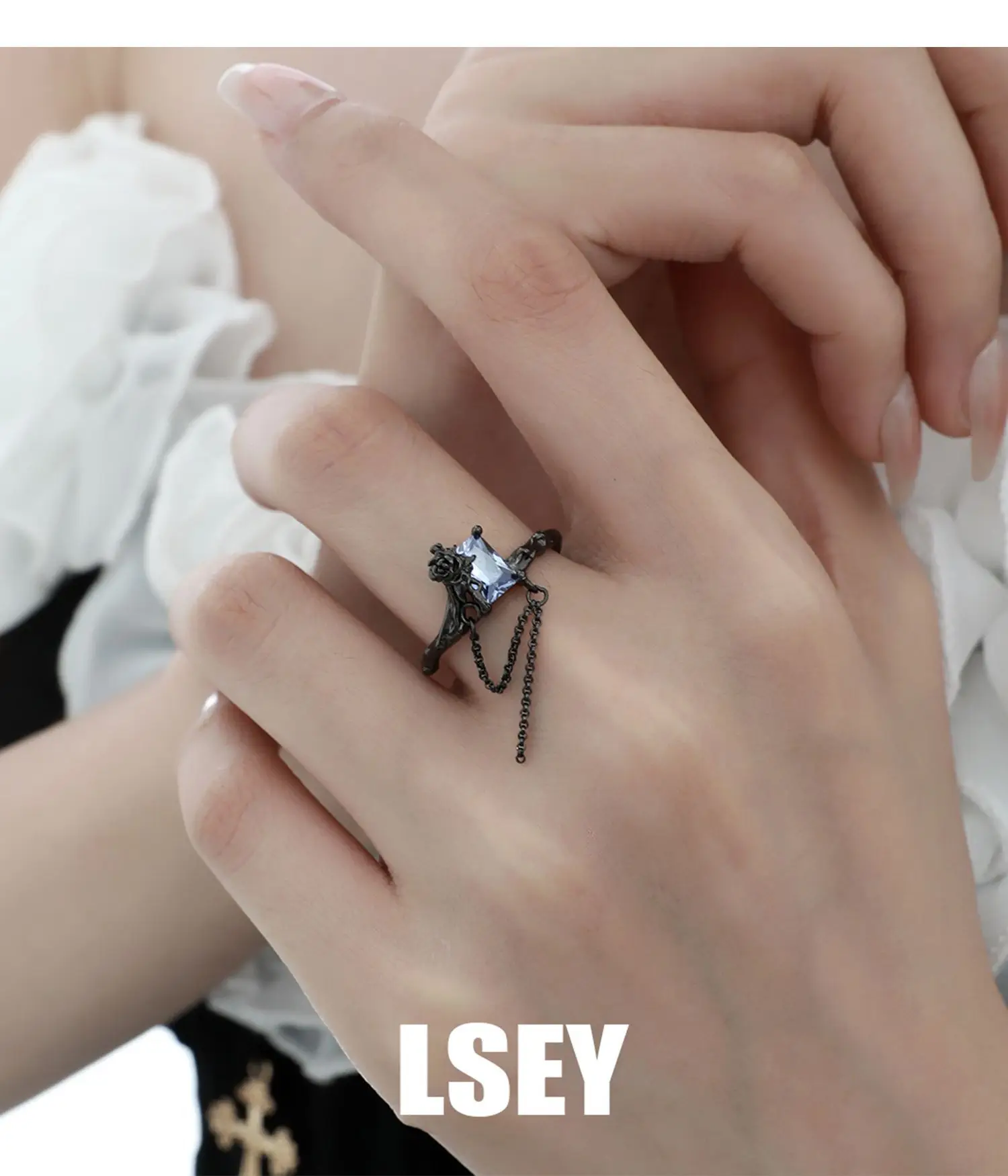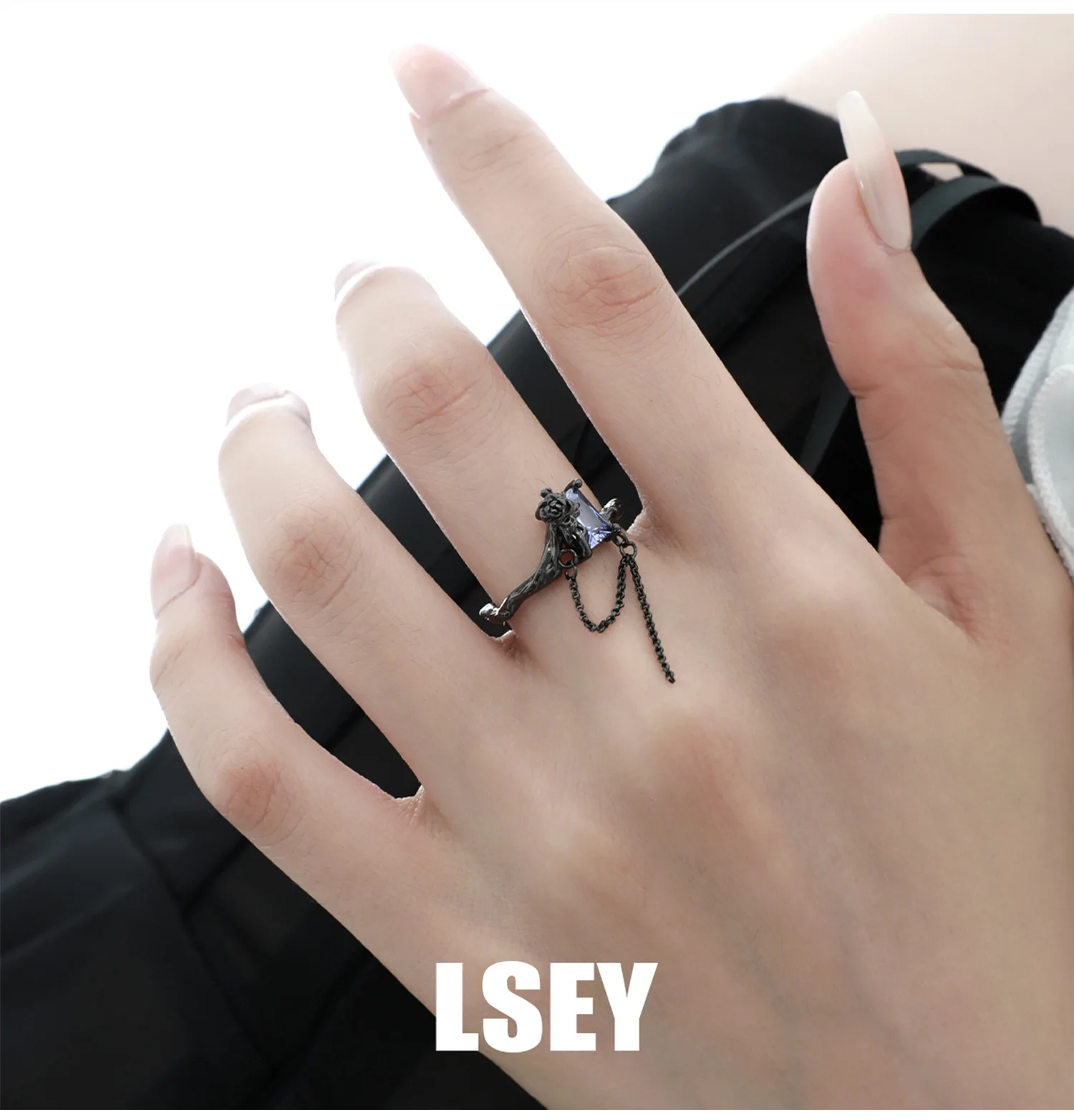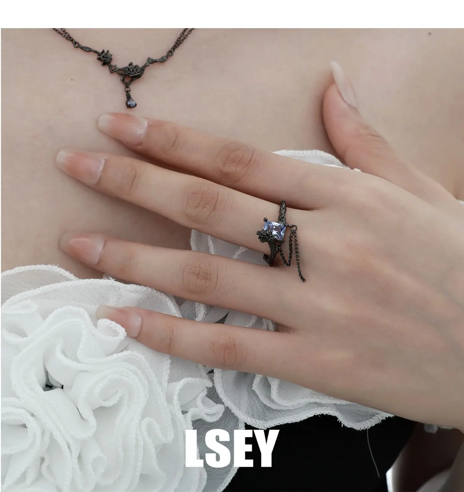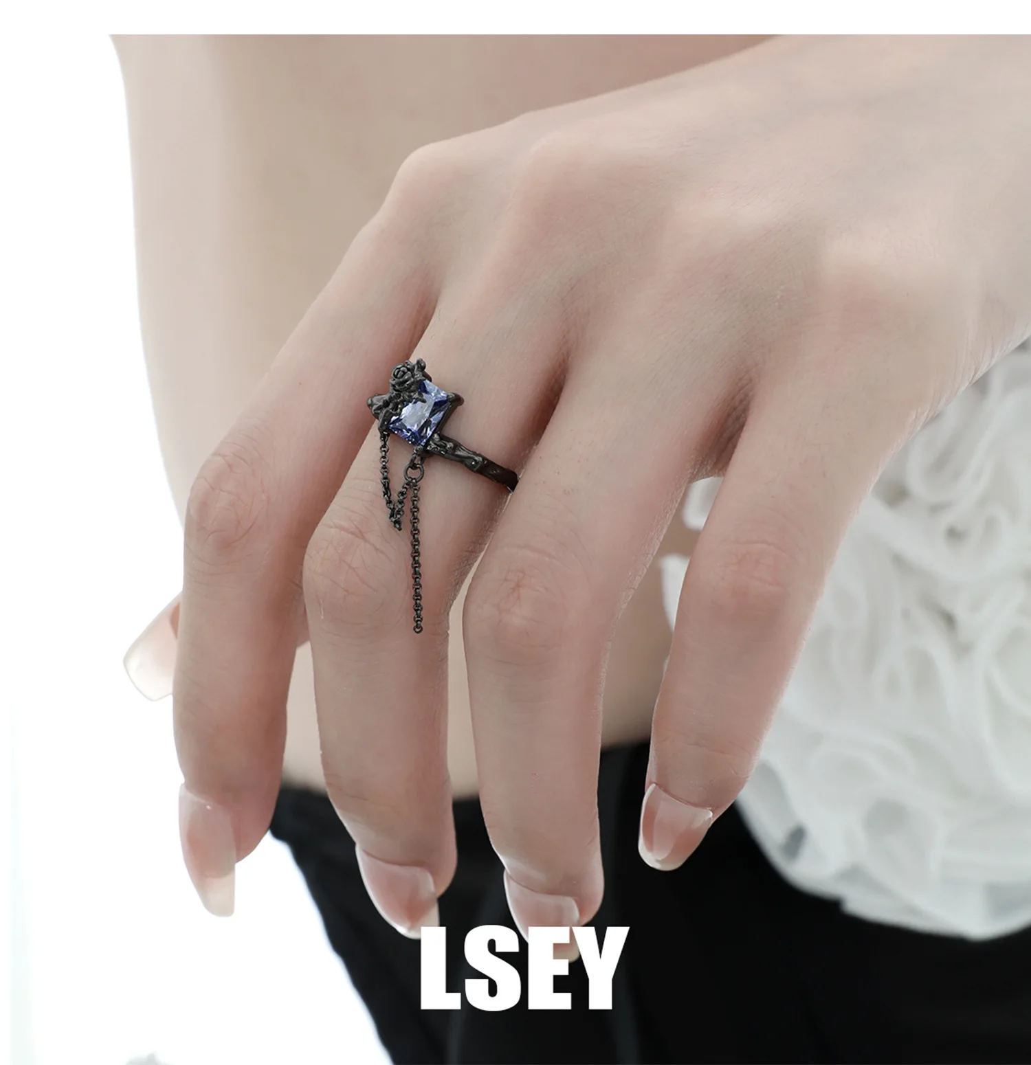 MLKENLY New S925 sterling silver Black Rose Tassel...