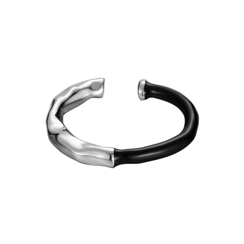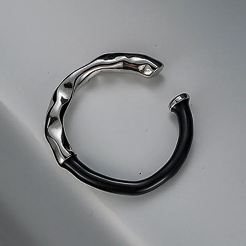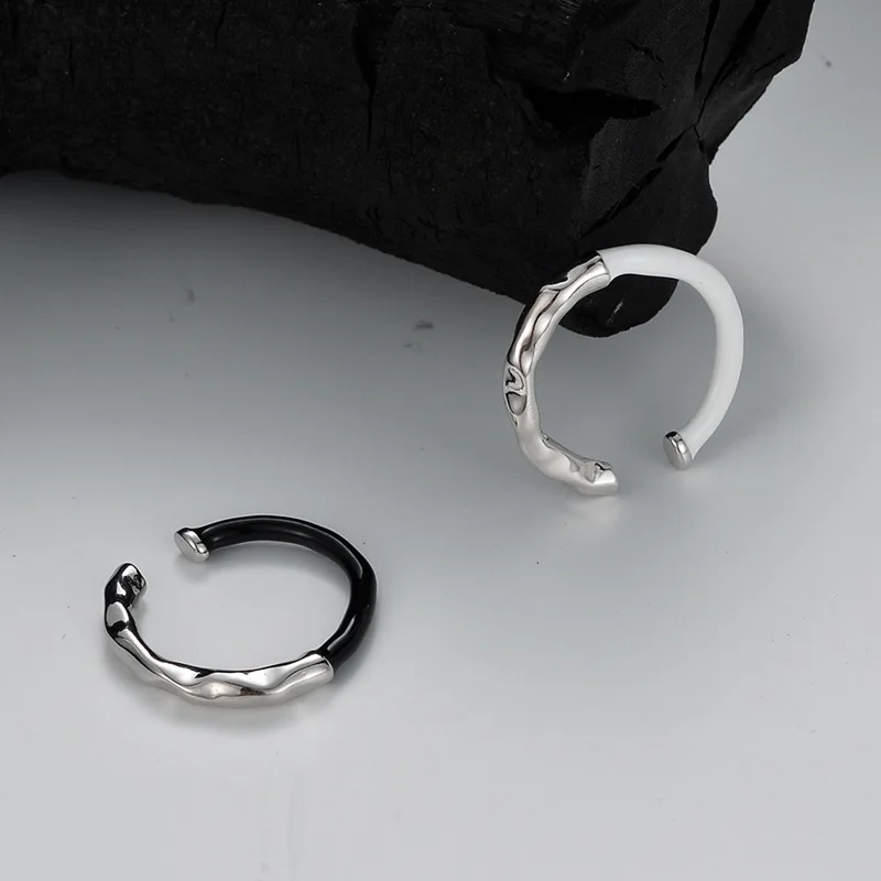 MLKENLY New S925 sterling silver Texture liquid metal drop glazed ring for women, fashionable and personalized ring