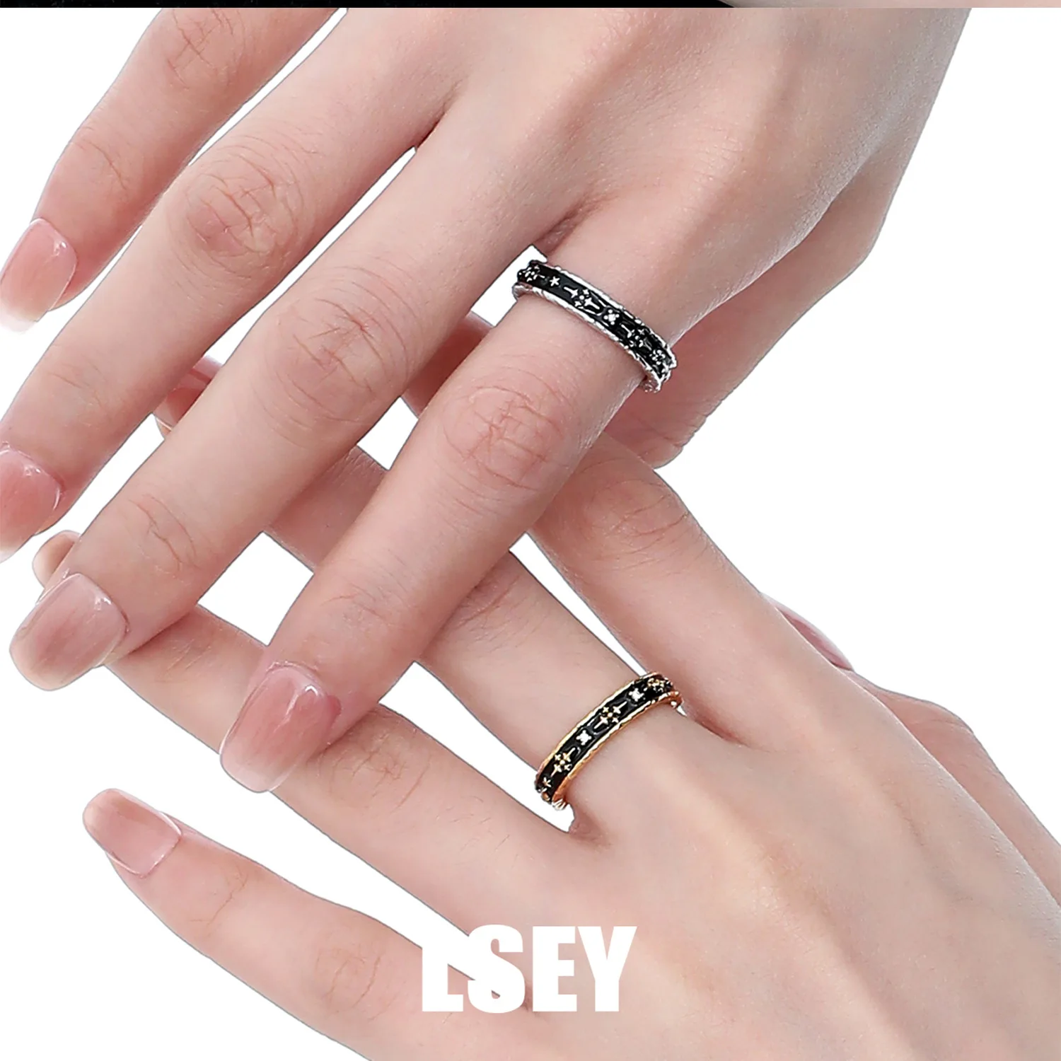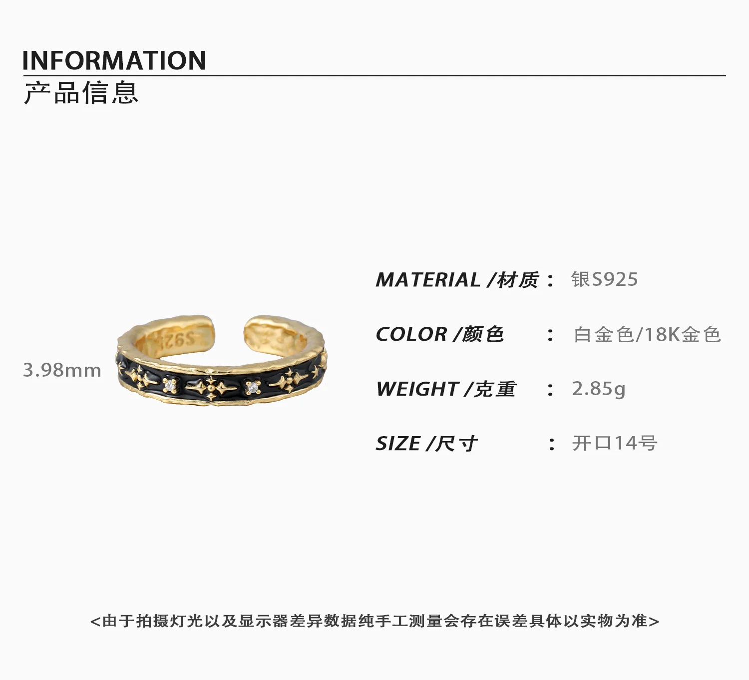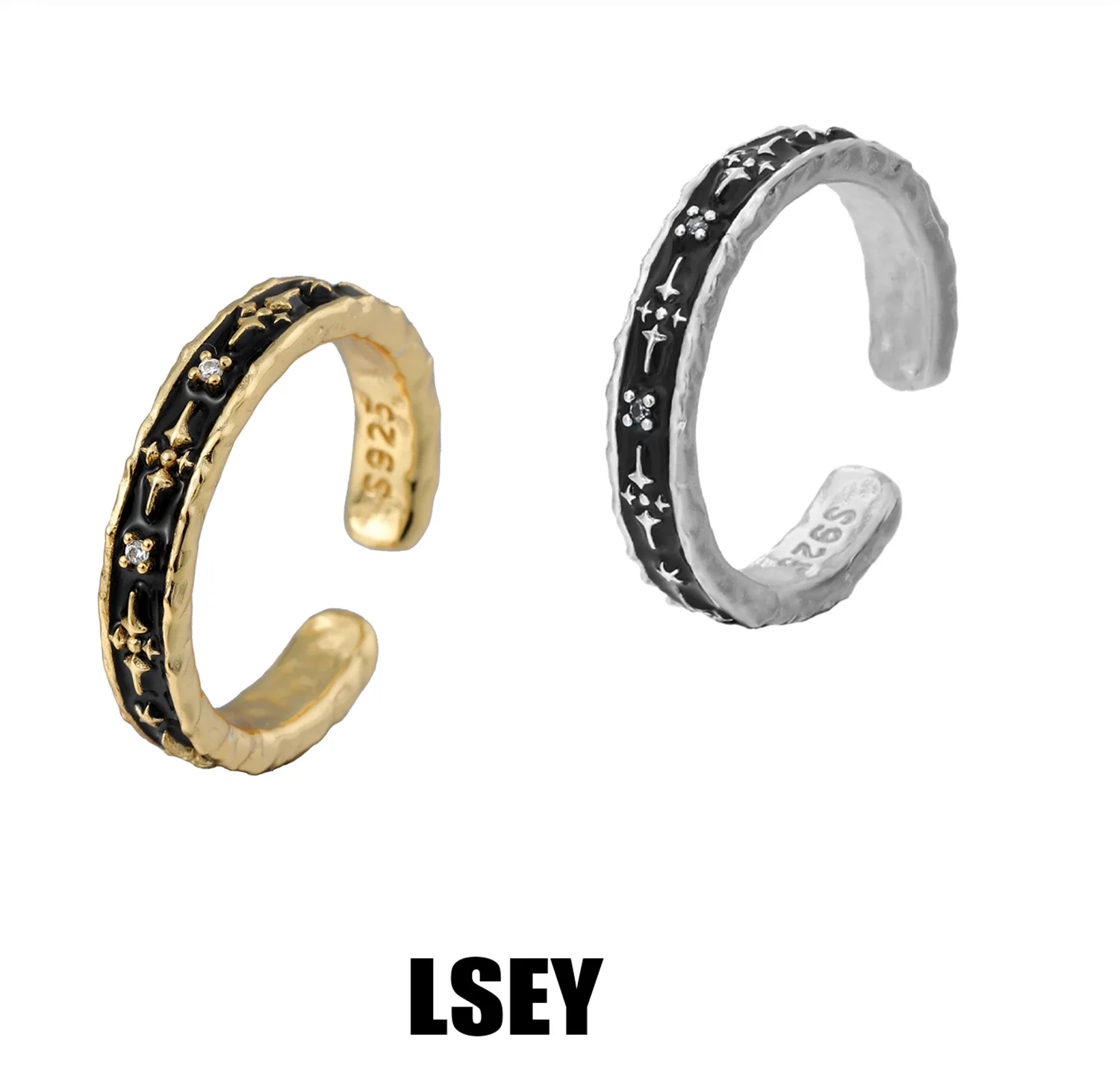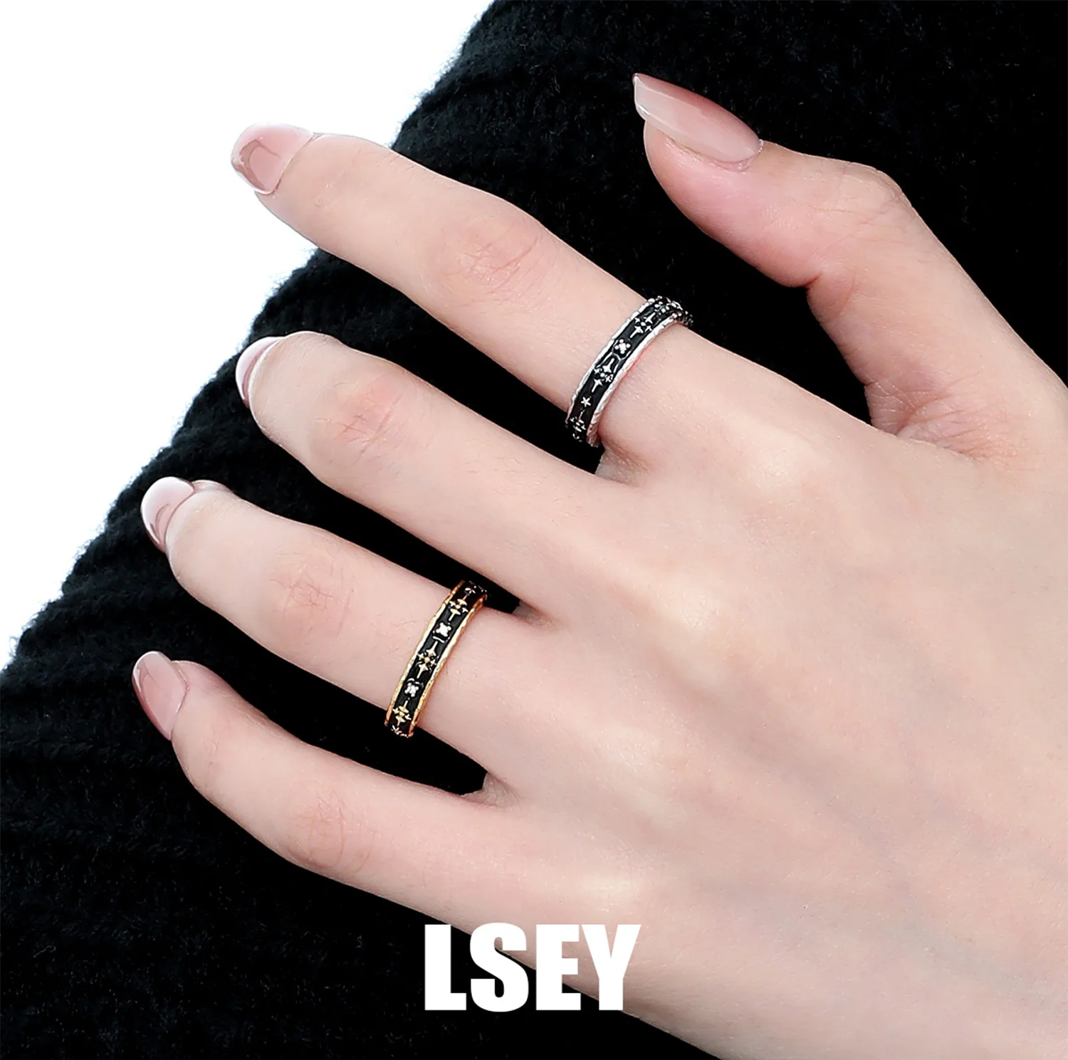 MLKENLY S925 sterling silver Black Gold Star Ring ...