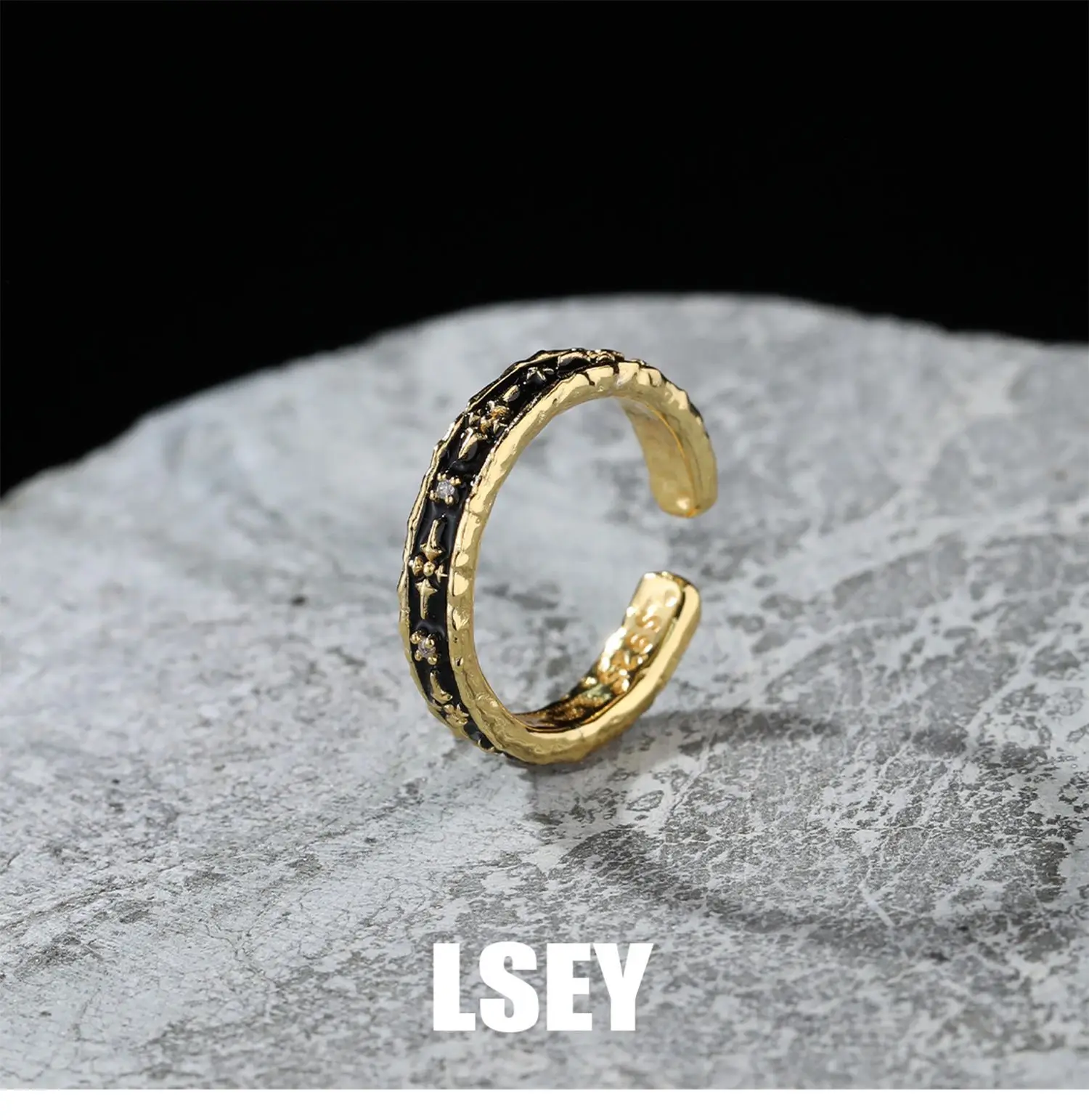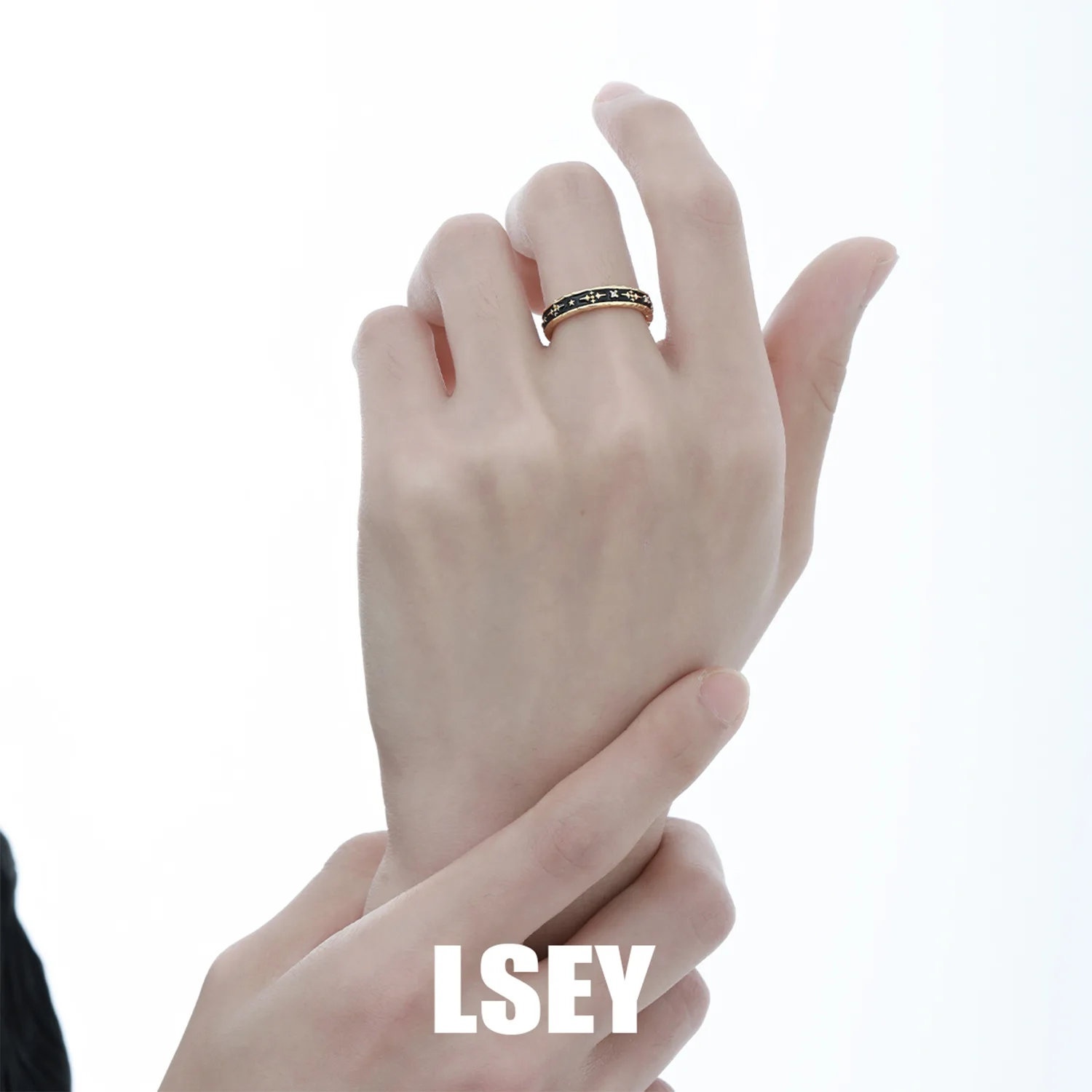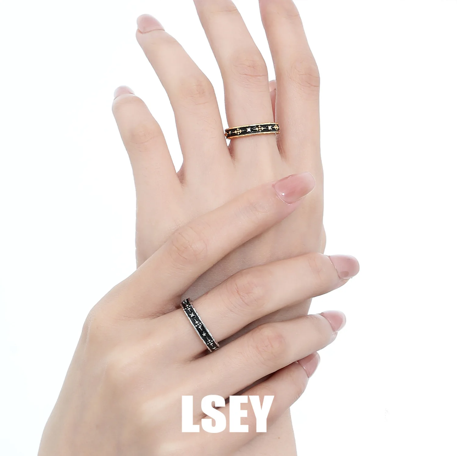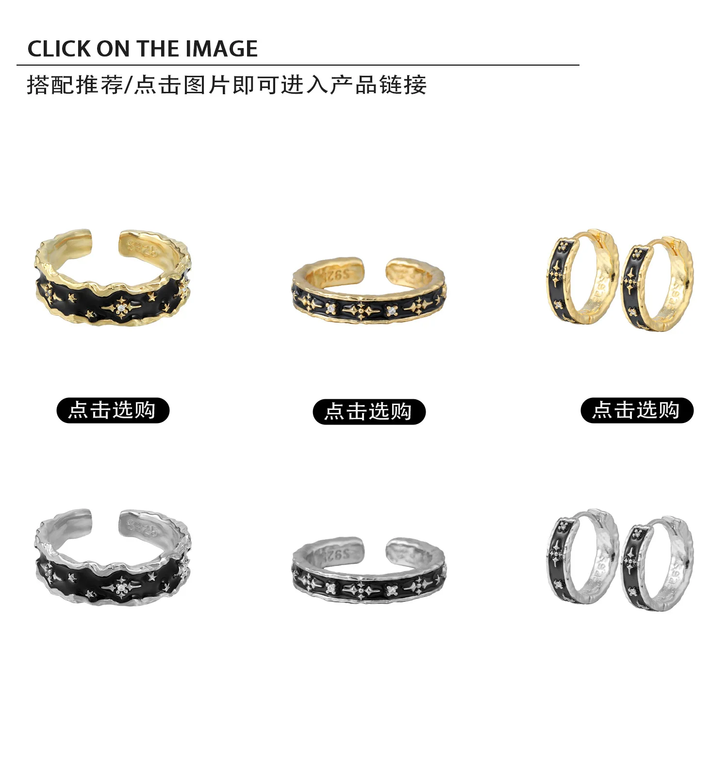 MLKENLY S925 sterling silver Black Gold Star Ring ...