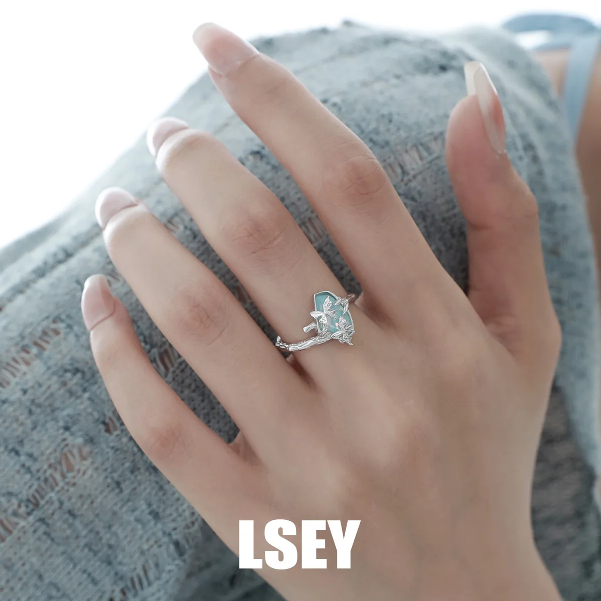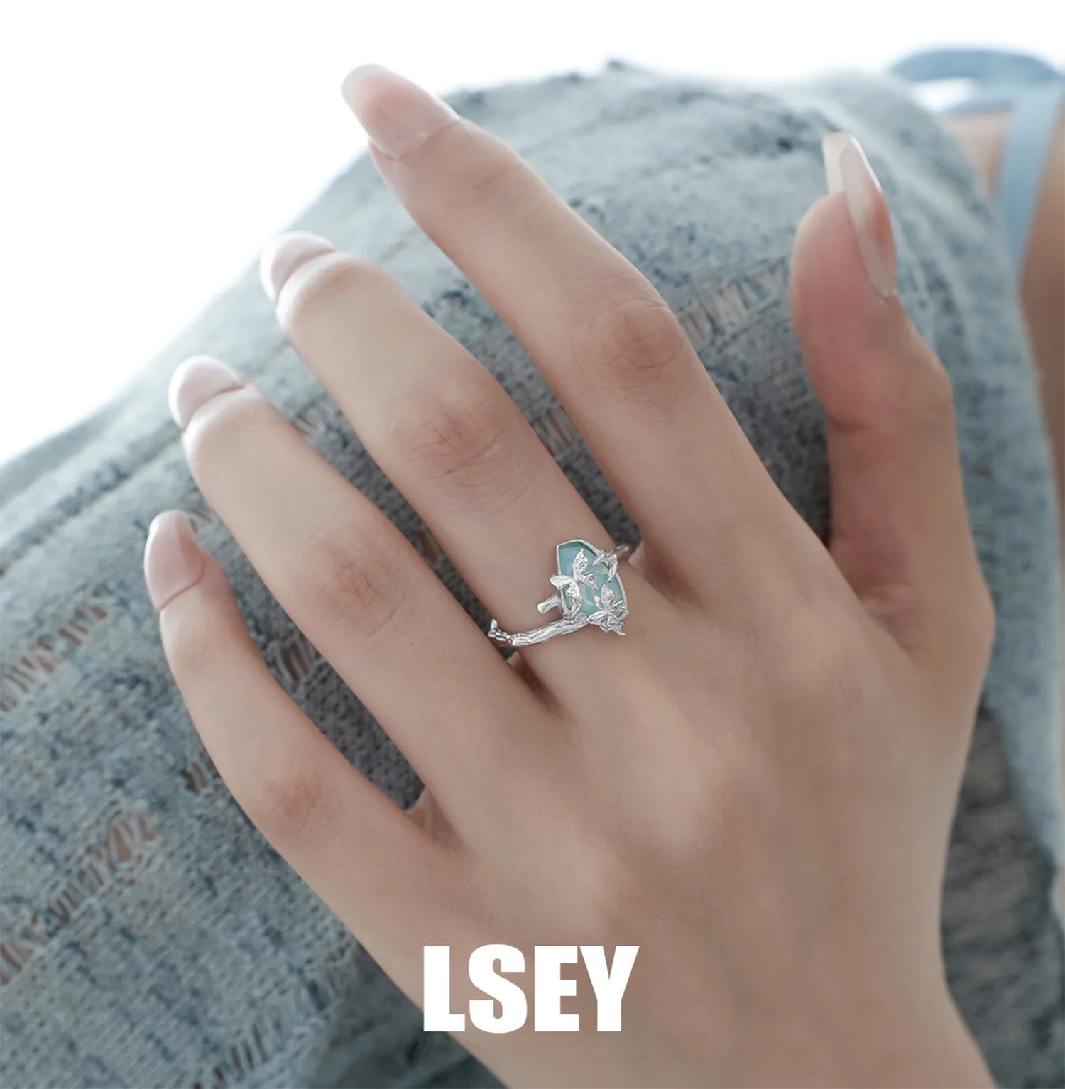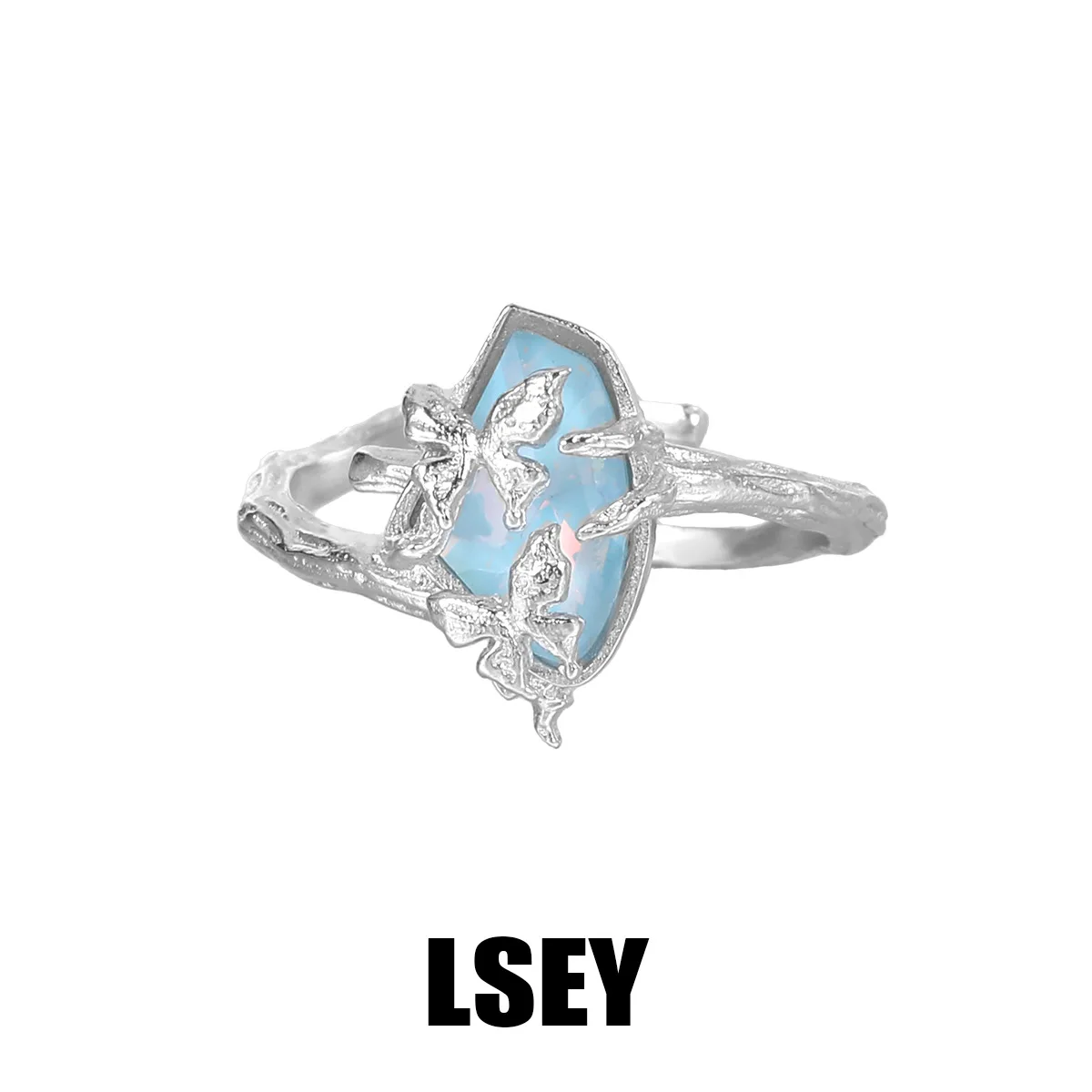 MLKENLY S925 sterling silver Butterfly Branch Water Pattern Stone Ring Cold Wind Ring Women’s Silver Jewelry Wholesale