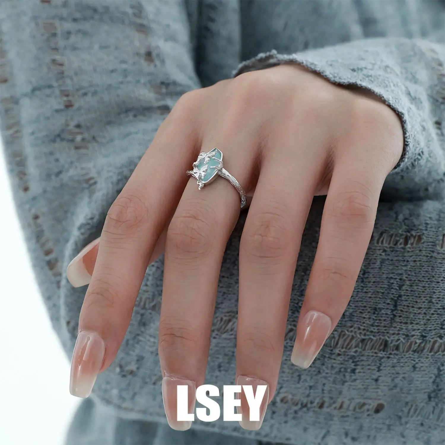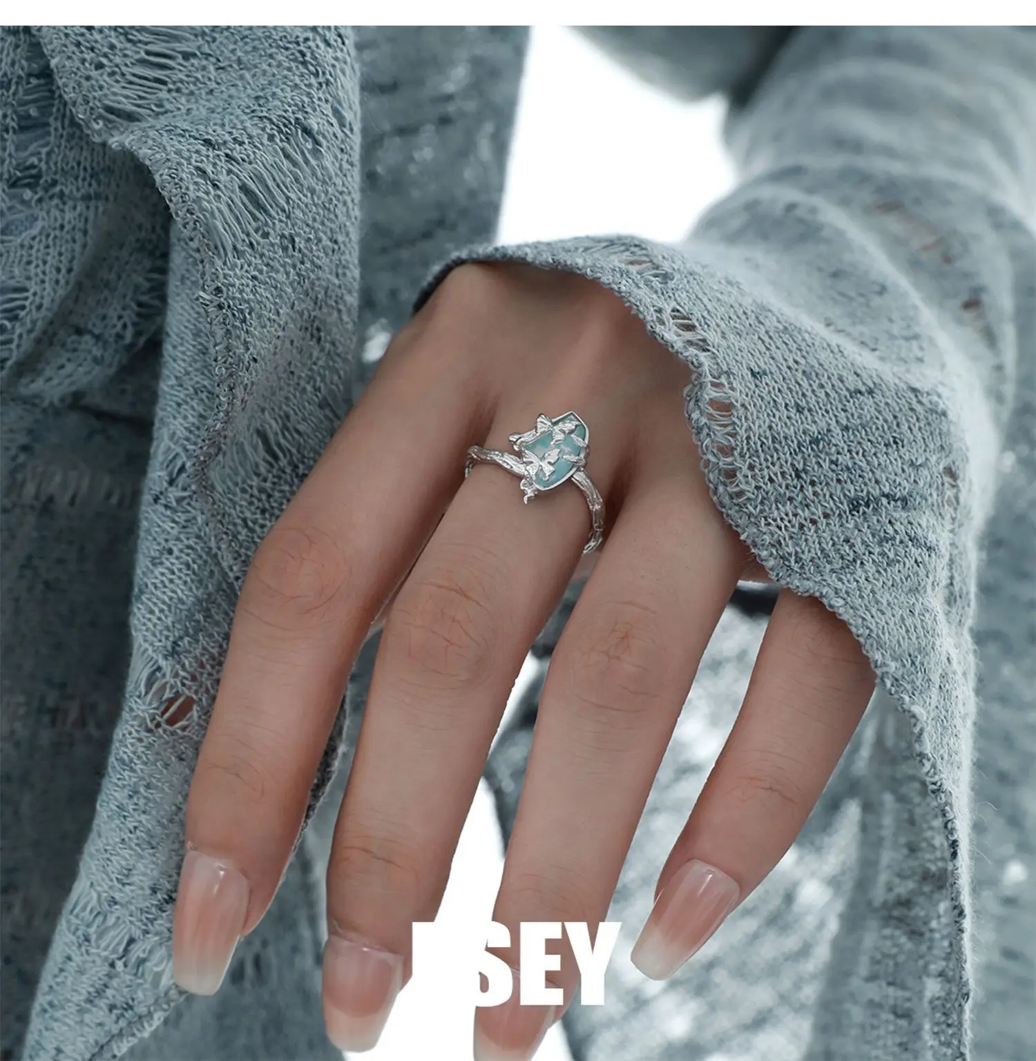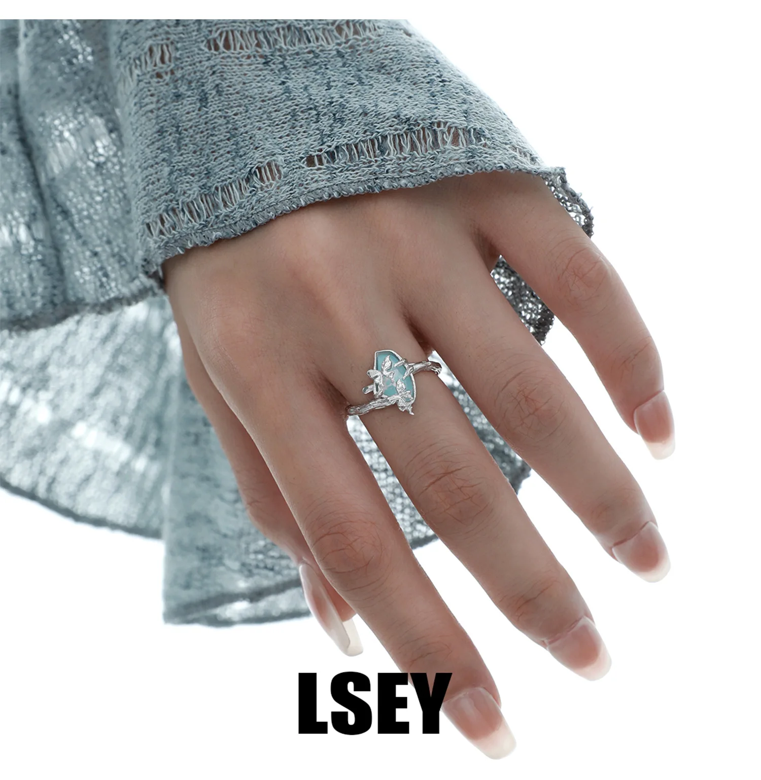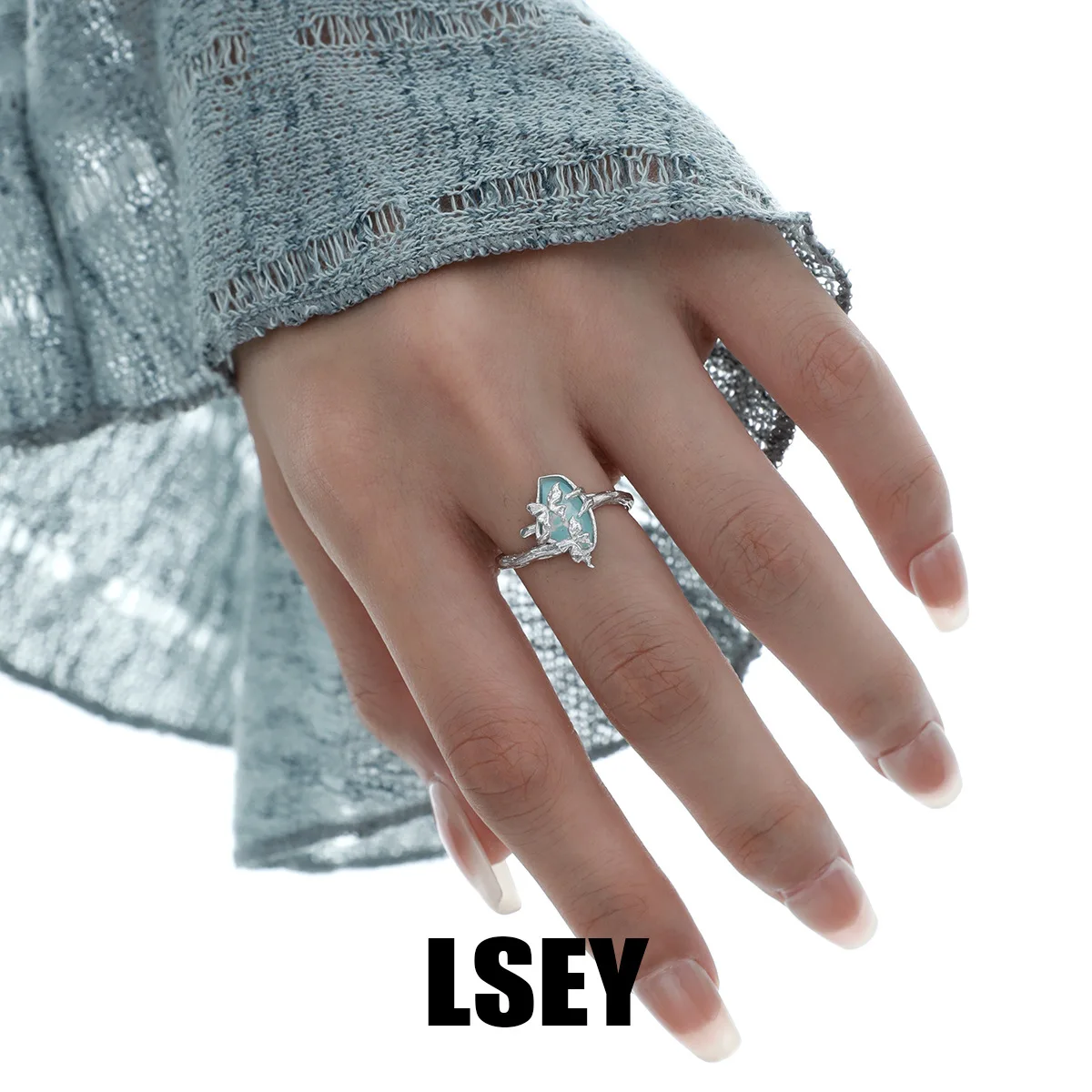 MLKENLY S925 sterling silver Butterfly Branch Water Pattern Stone Ring Cold Wind Ring Women’s Silver Jewelry Wholesale