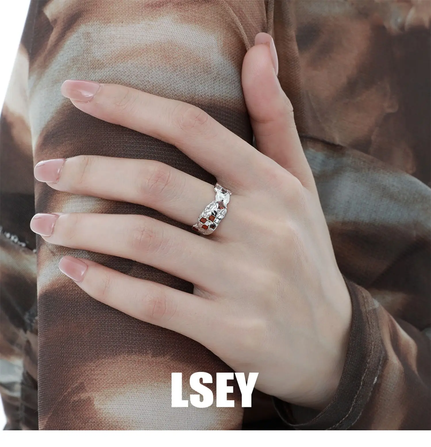 MLKENLY S925 sterling silver Chessboard Design Fem...
