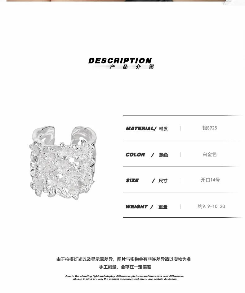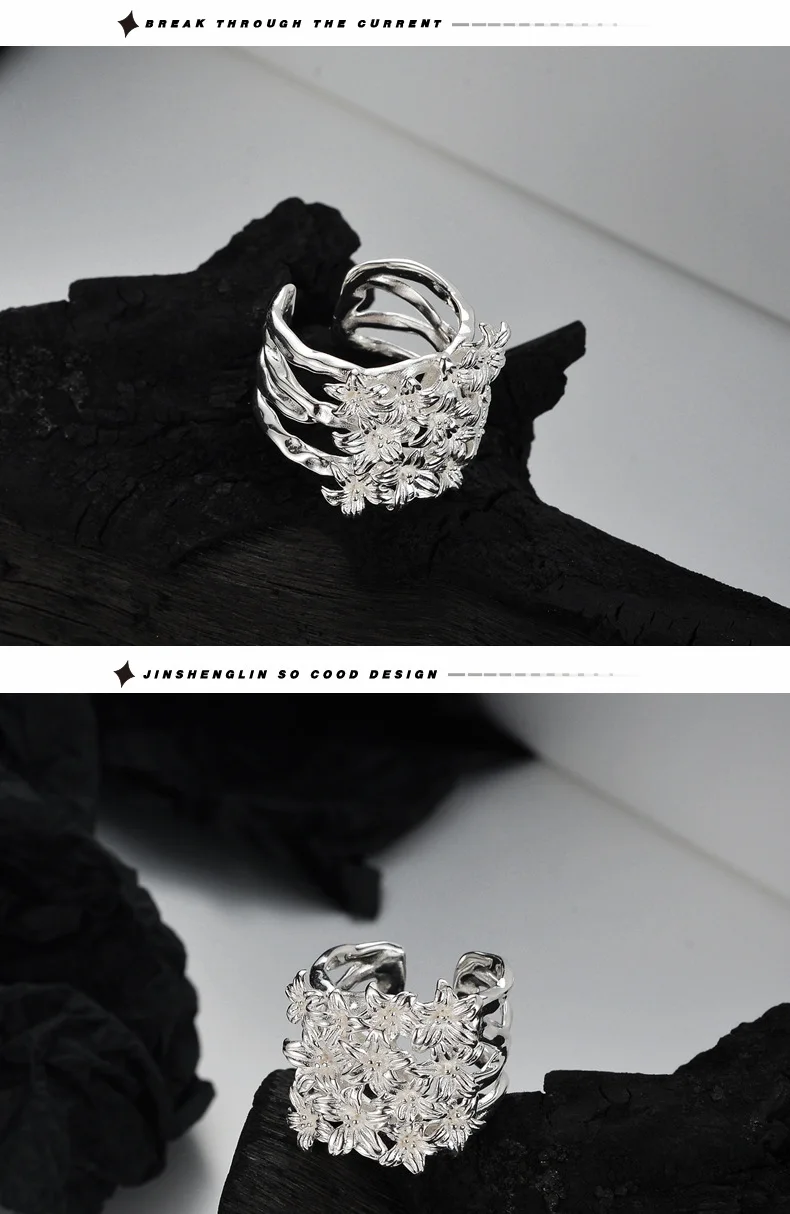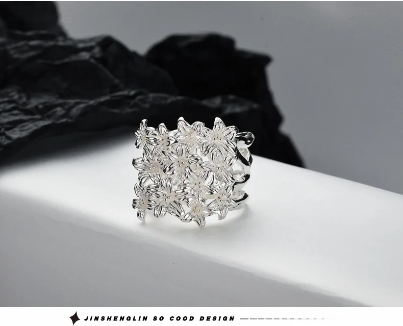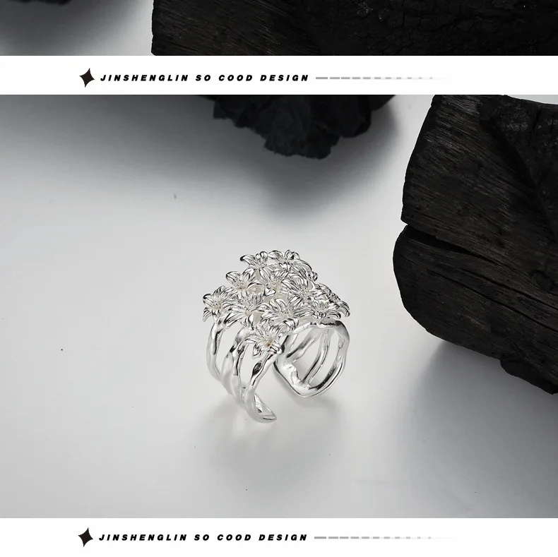 MLKENLY S925 sterling silver Flower Flower Ring Fe...