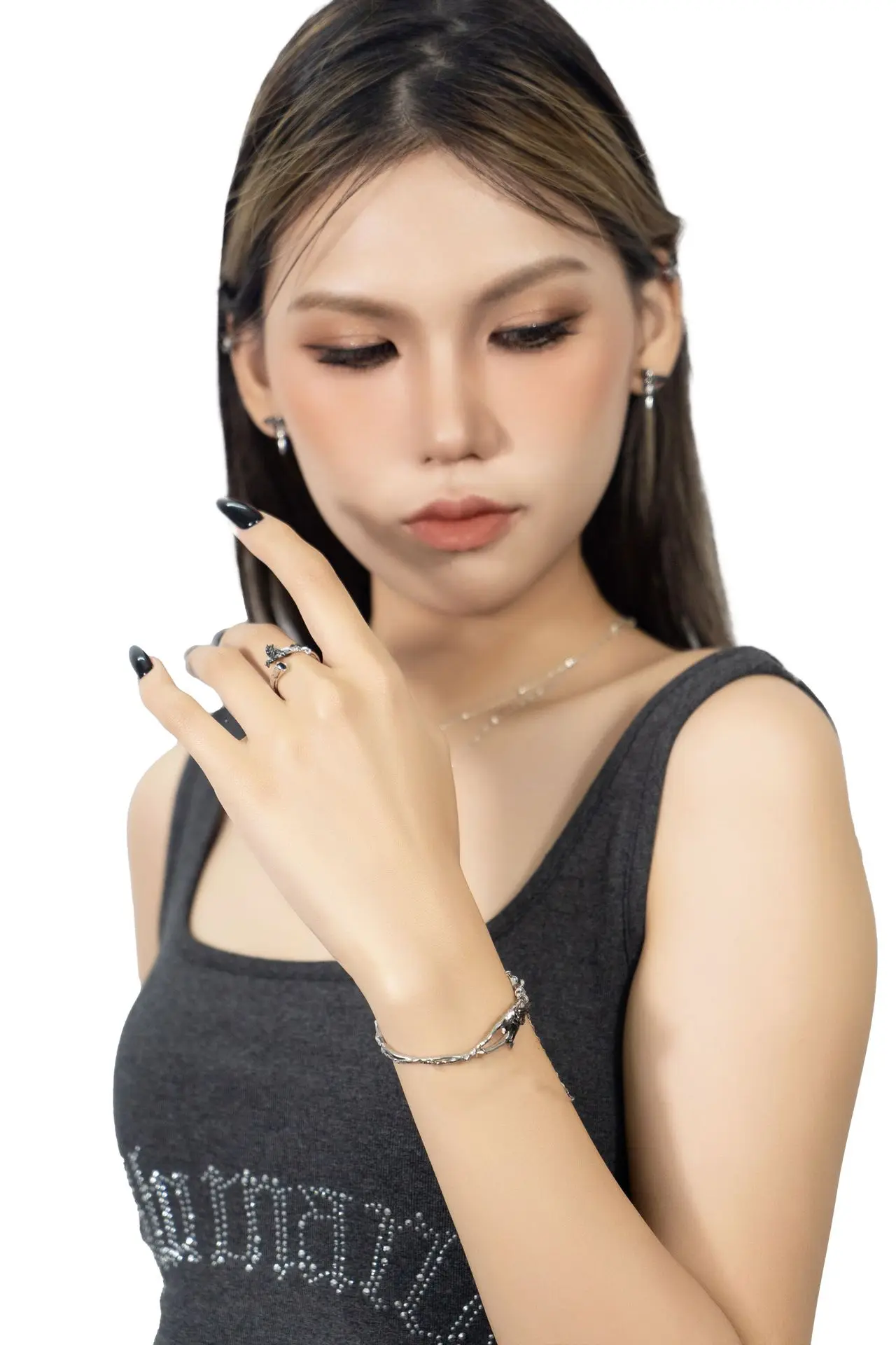 MLKENLY S925 sterling silver Gun Black Two Color O...