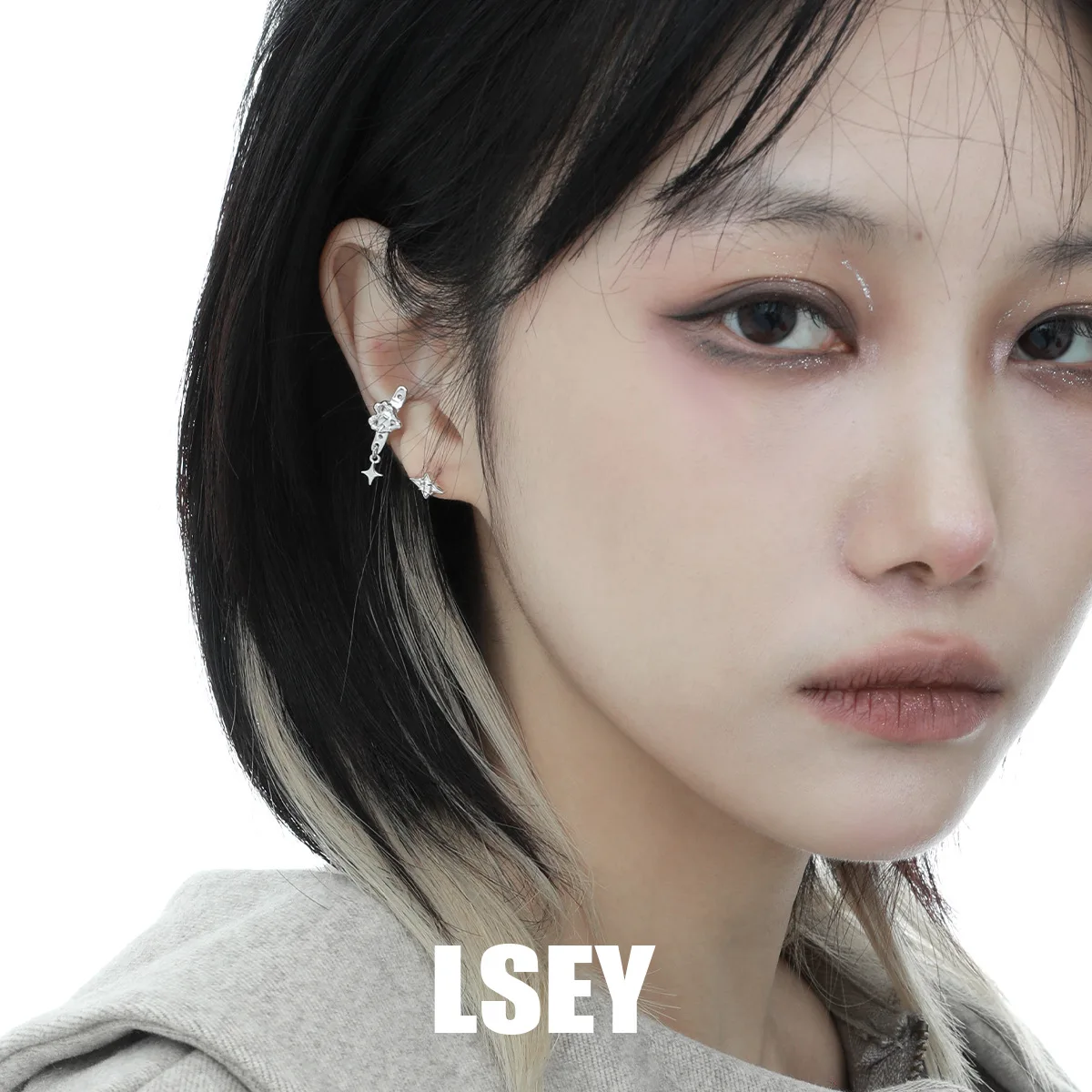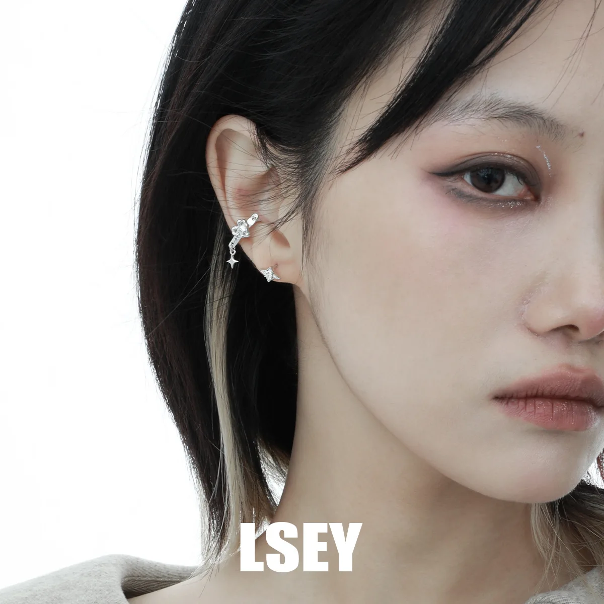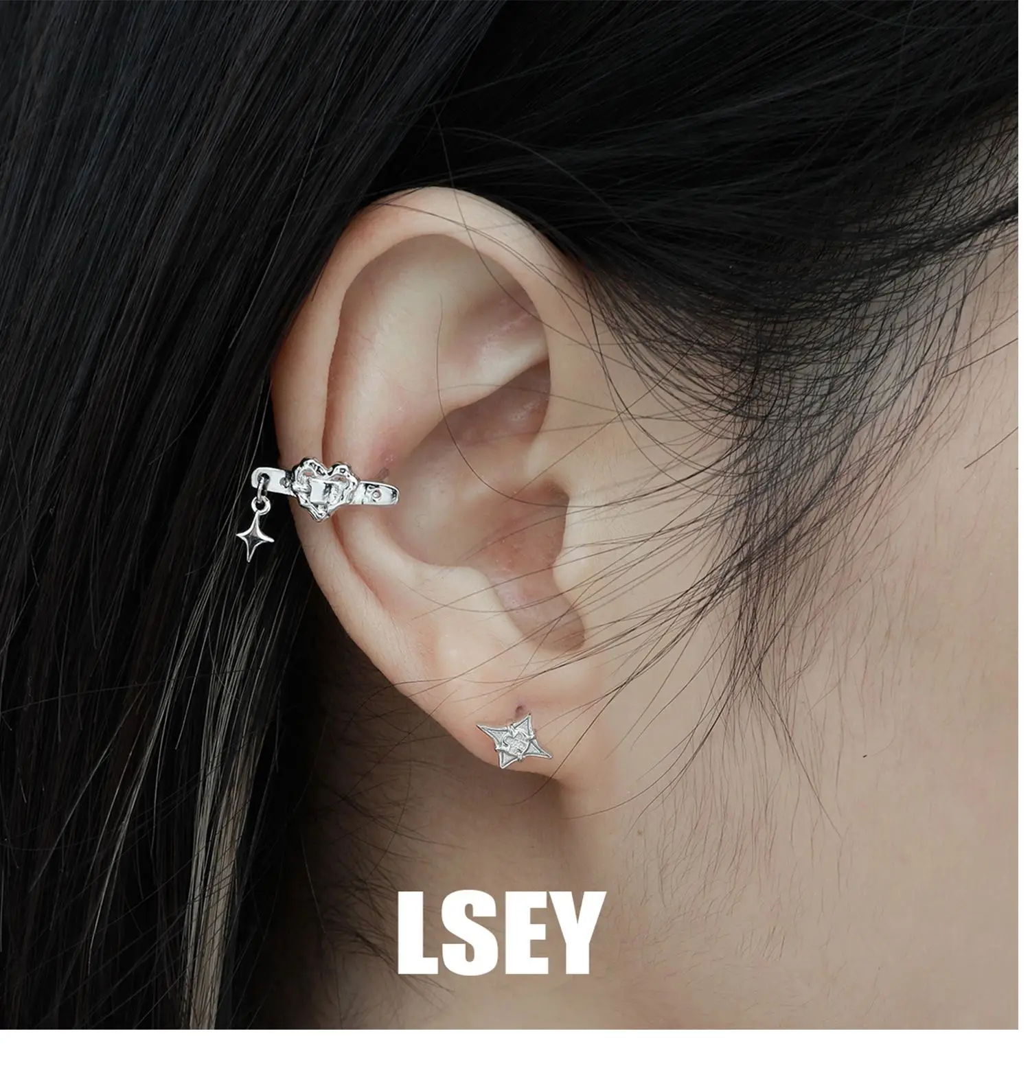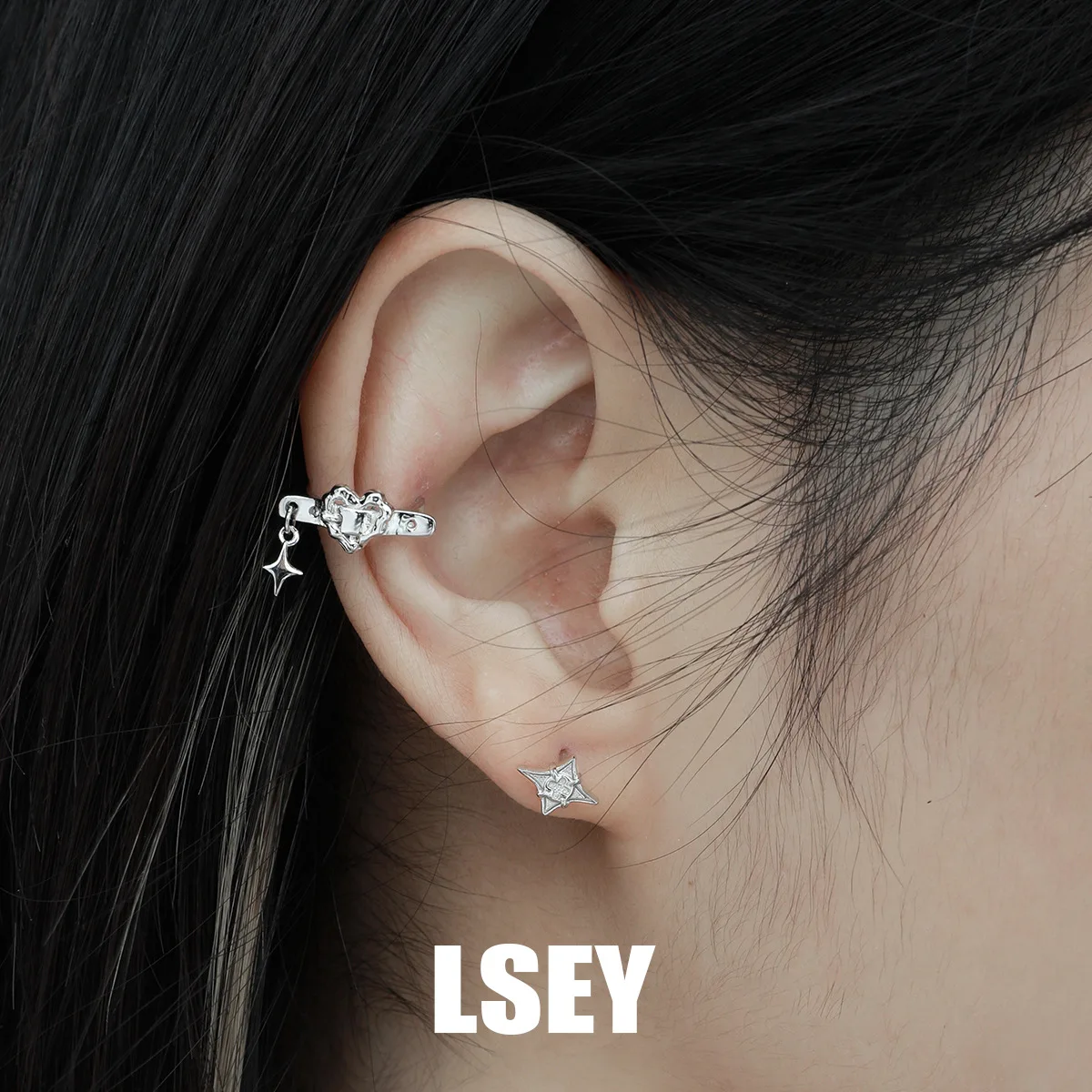 MLKENLY S925 sterling silver Heart CZ Zircon Rock Punk Earcuff Cuff Earring No Piercing Fine Jewelry For Women