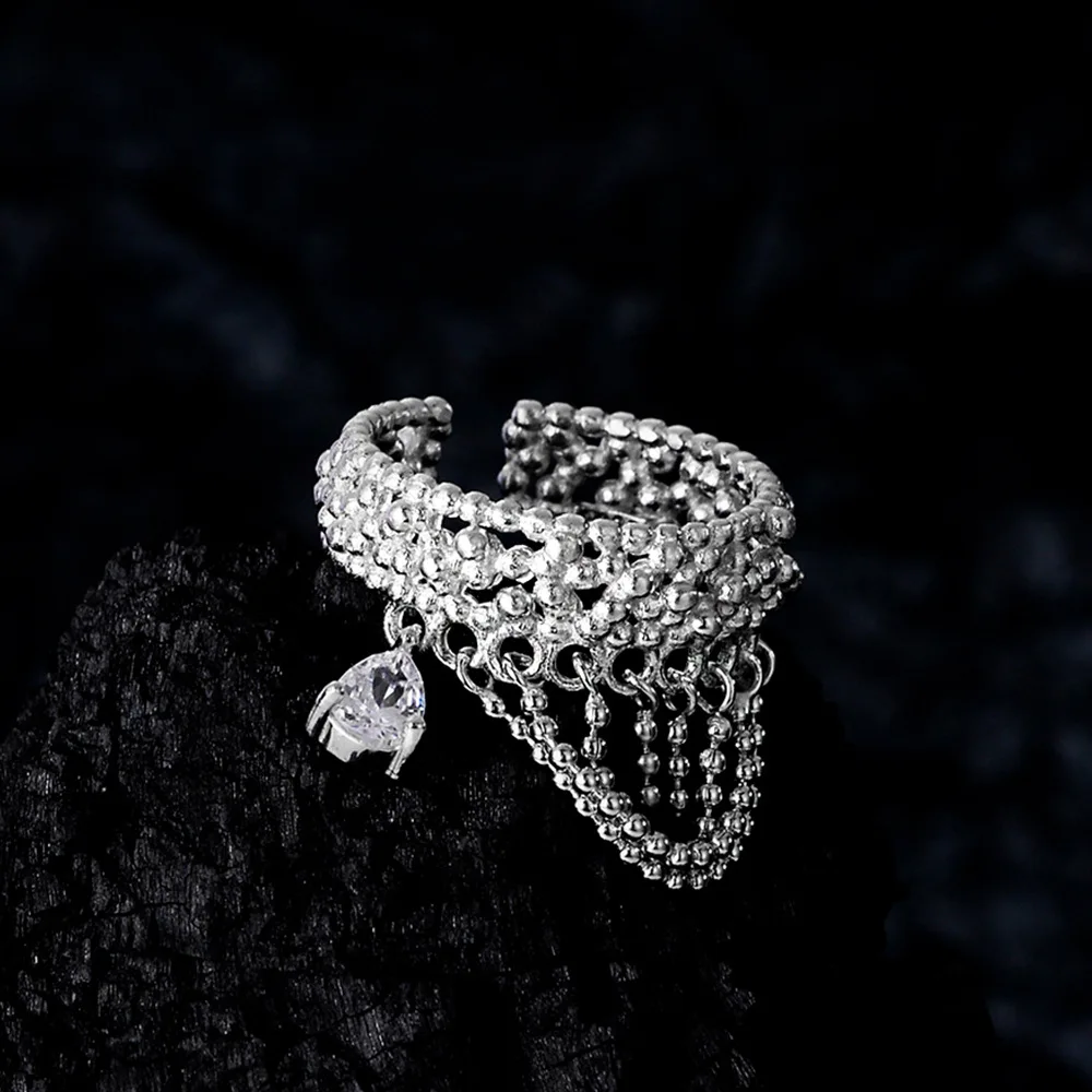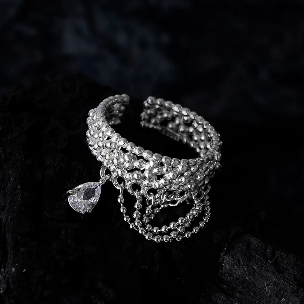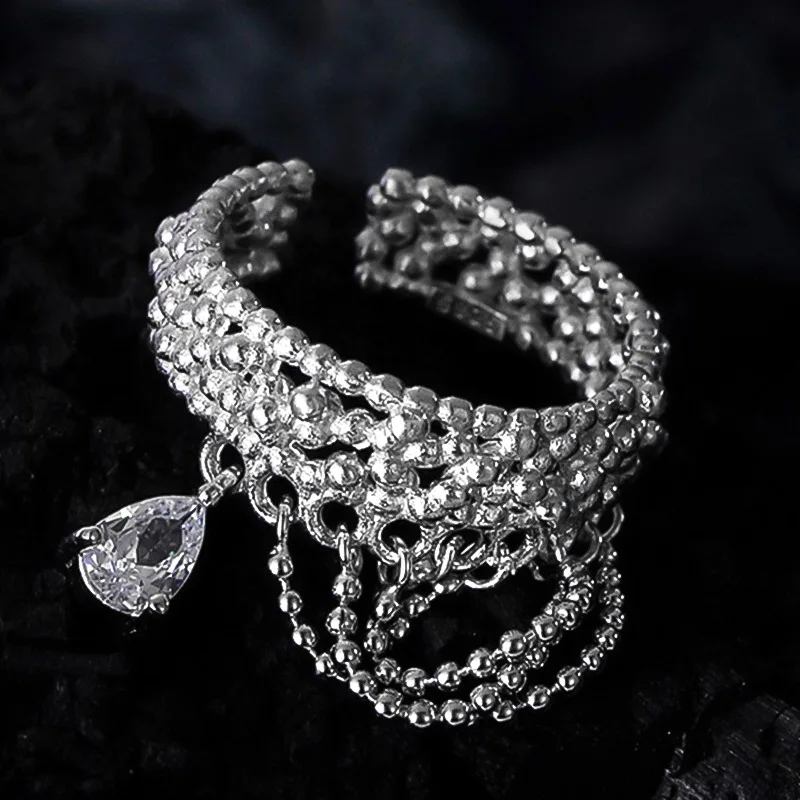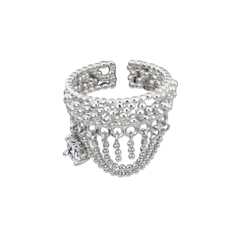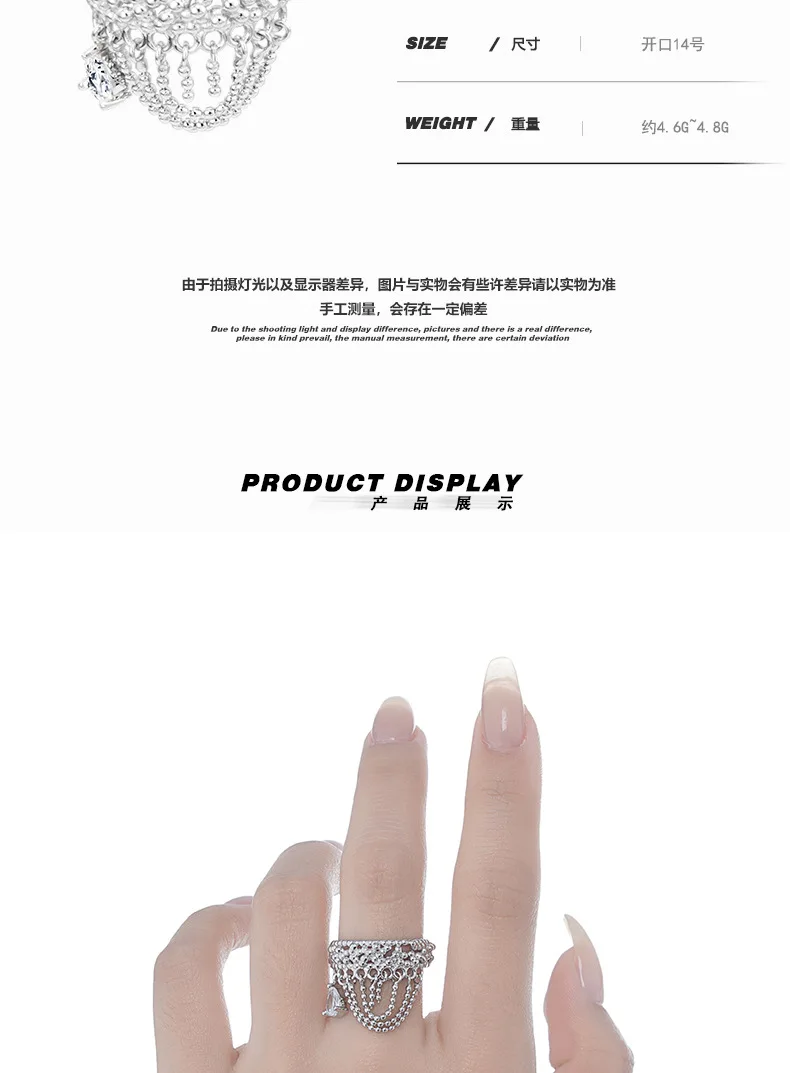 MLKENLY S925 sterling silver Hollow Bean Chain Ring for Women with Ins Style Opening and CZ Inlaid Finger Ring