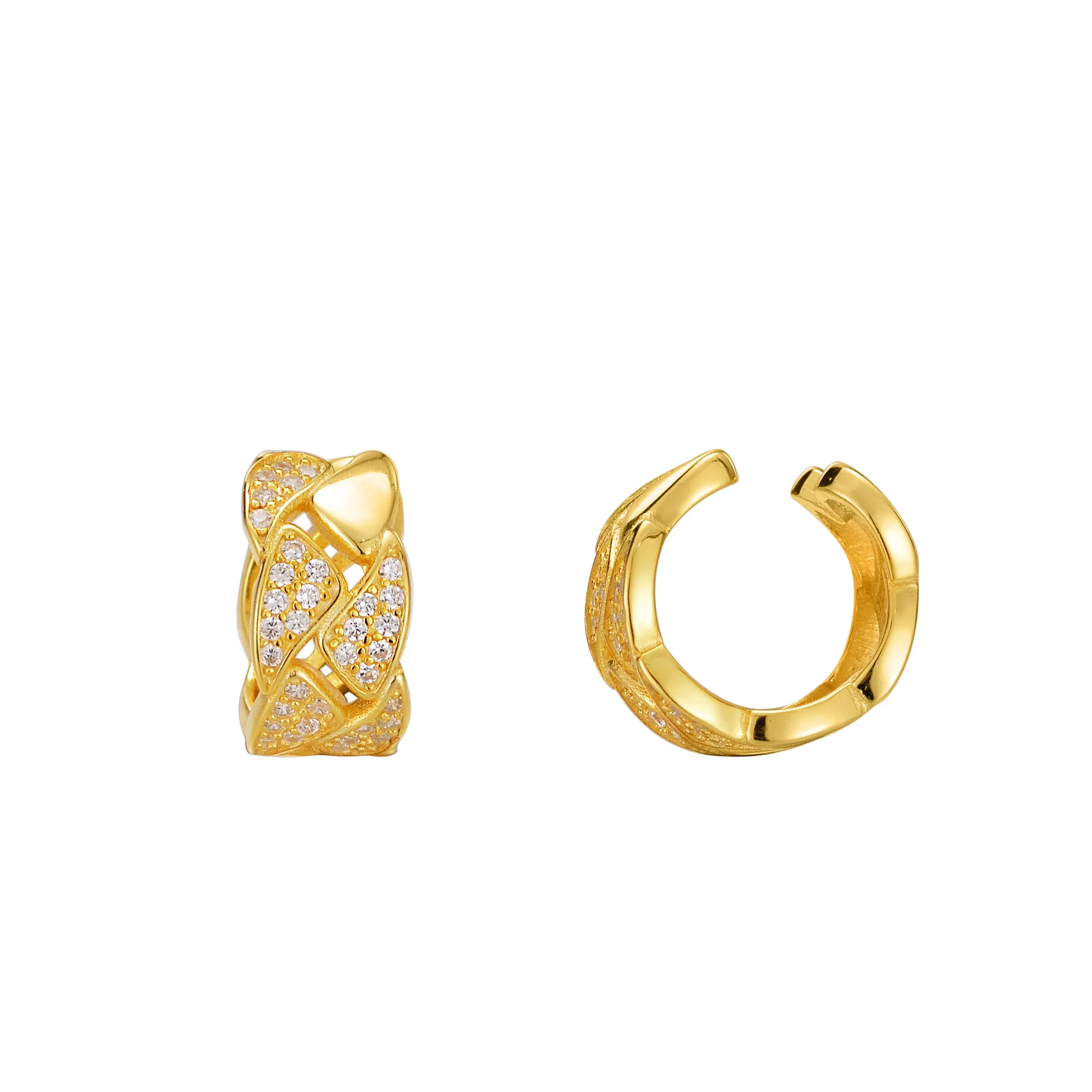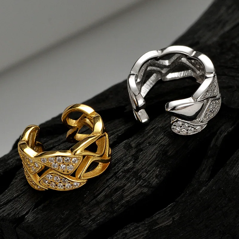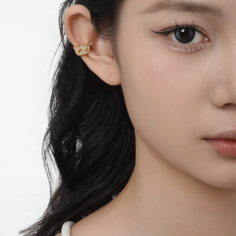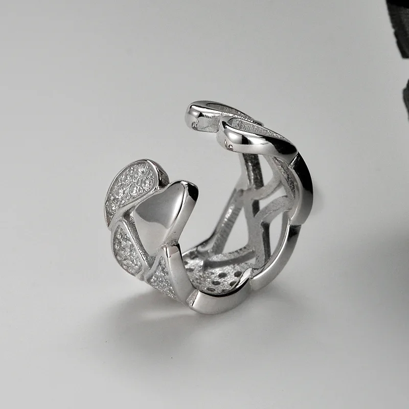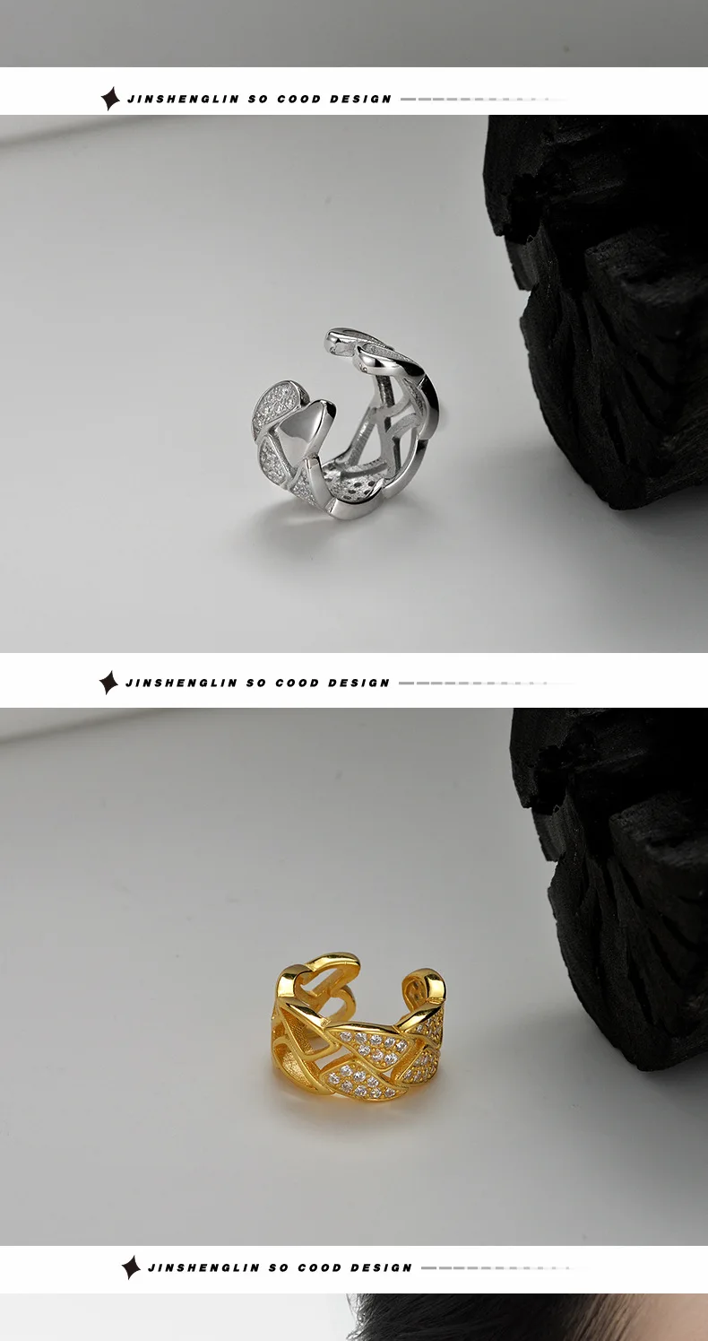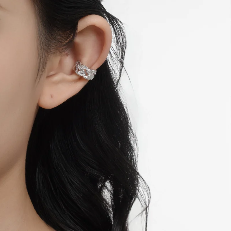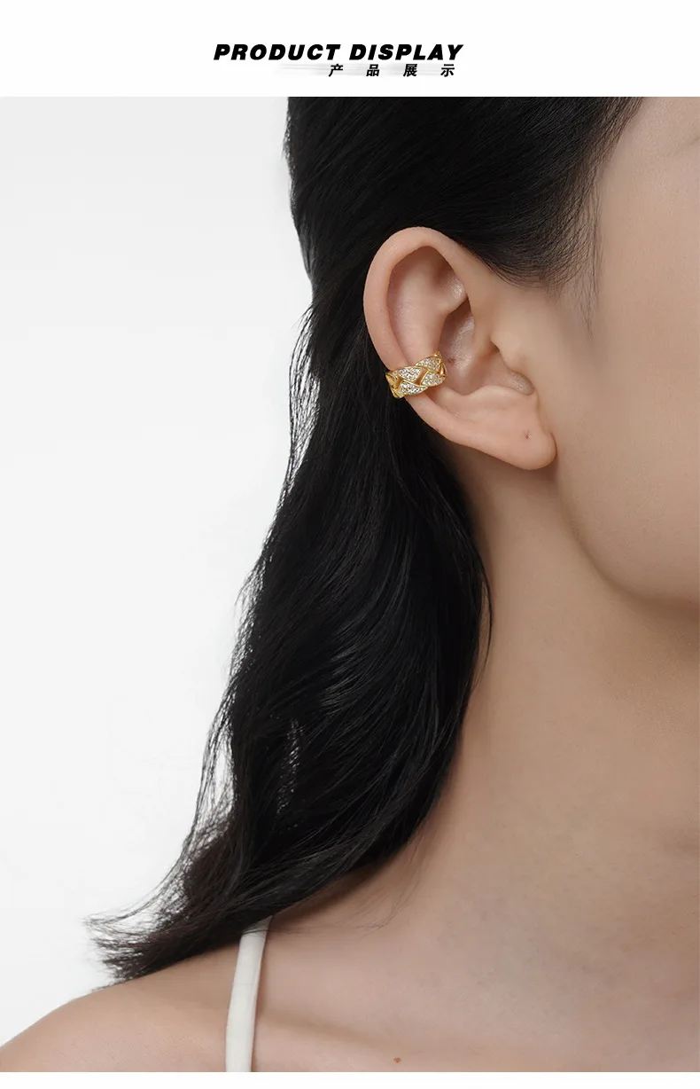 MLKENLY S925 sterling silver Hollow out geometric ear clip for women without ear holes ins, cool style with diamond studd