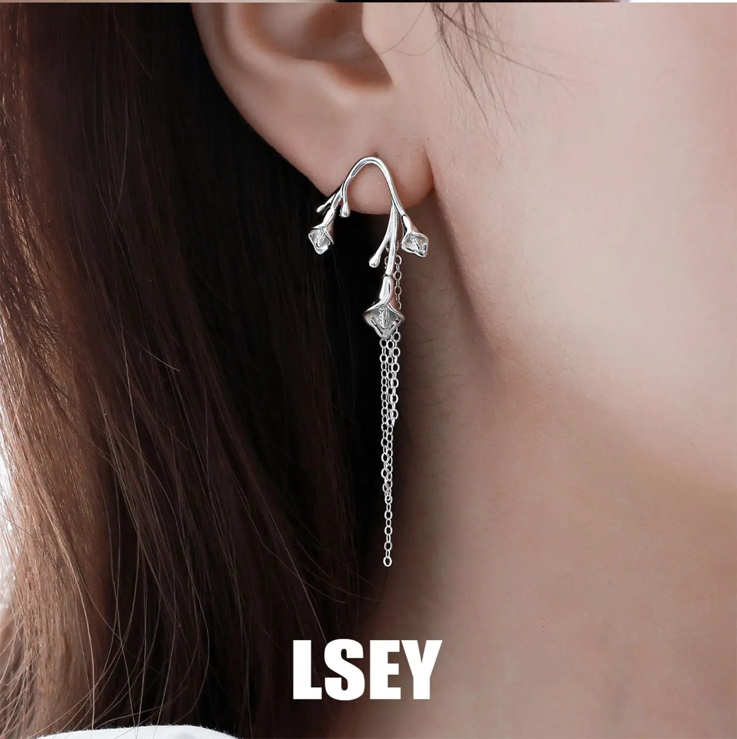 MLKENLY S925 sterling silver Horseshoe Lotus Stud Earrings for Women Vintage Plant Mini Korean Fashion Earring Piercing Jewelry