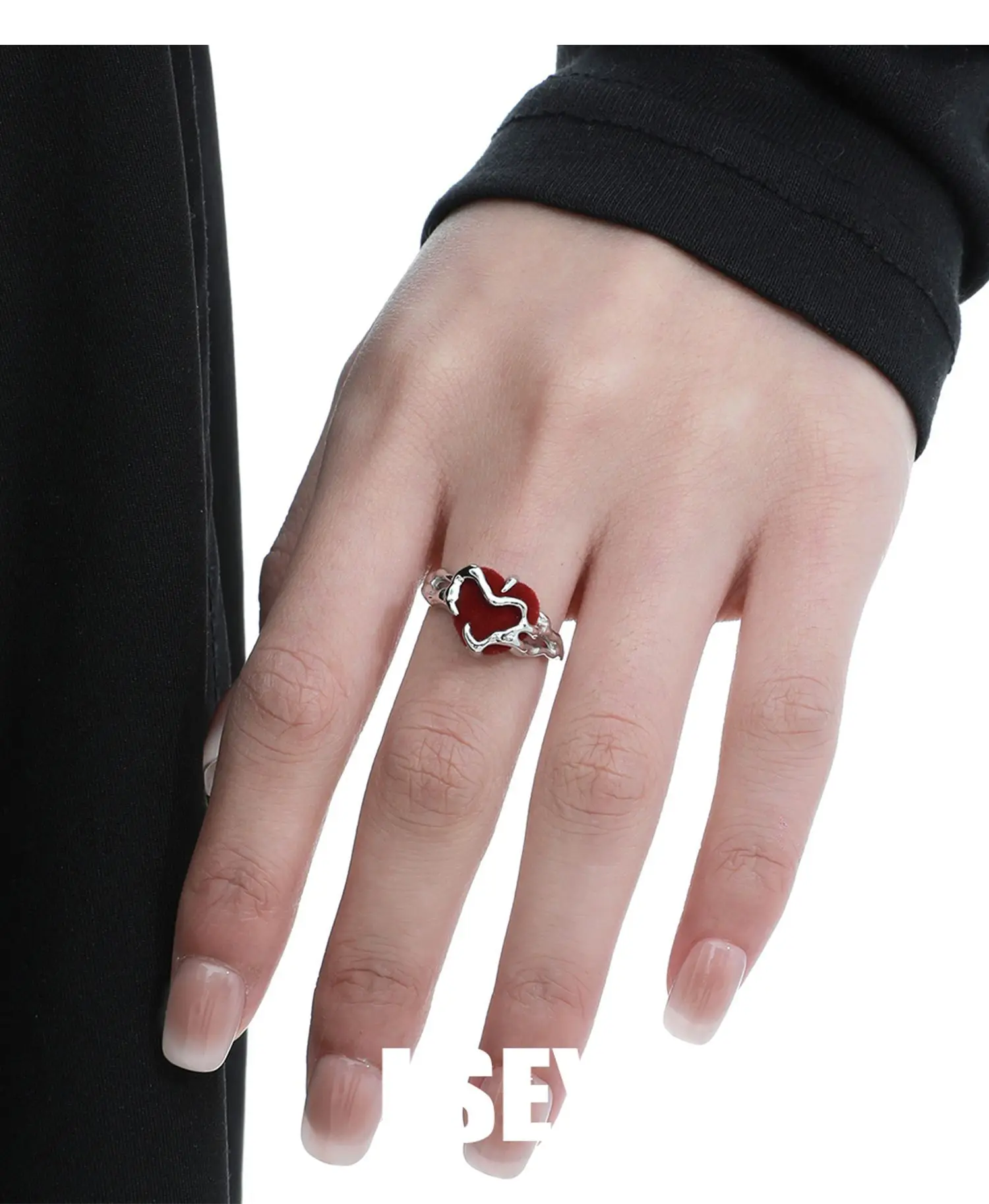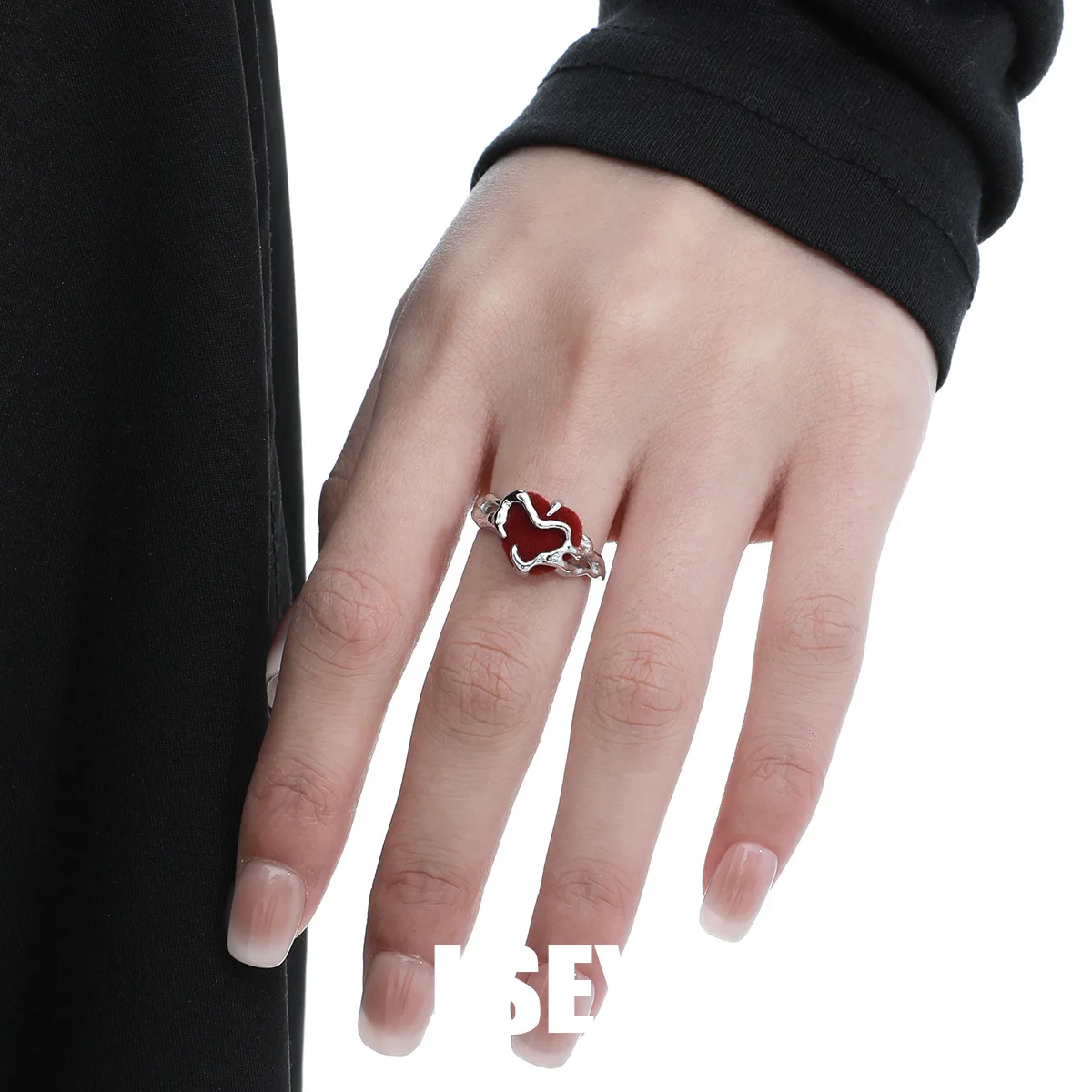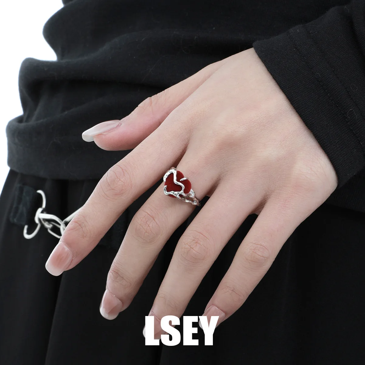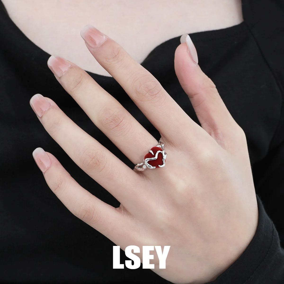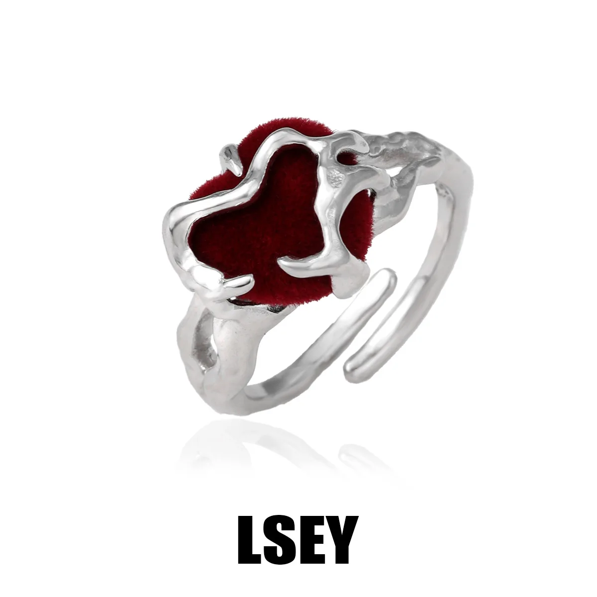 MLKENLY S925 sterling silver Ins Cold Wind Premium Liquid Plush Love Finger Rings Summer Beach Aesthetic Waterproof Jewelry
