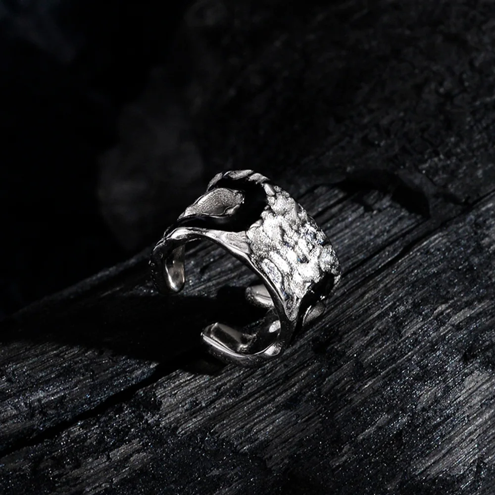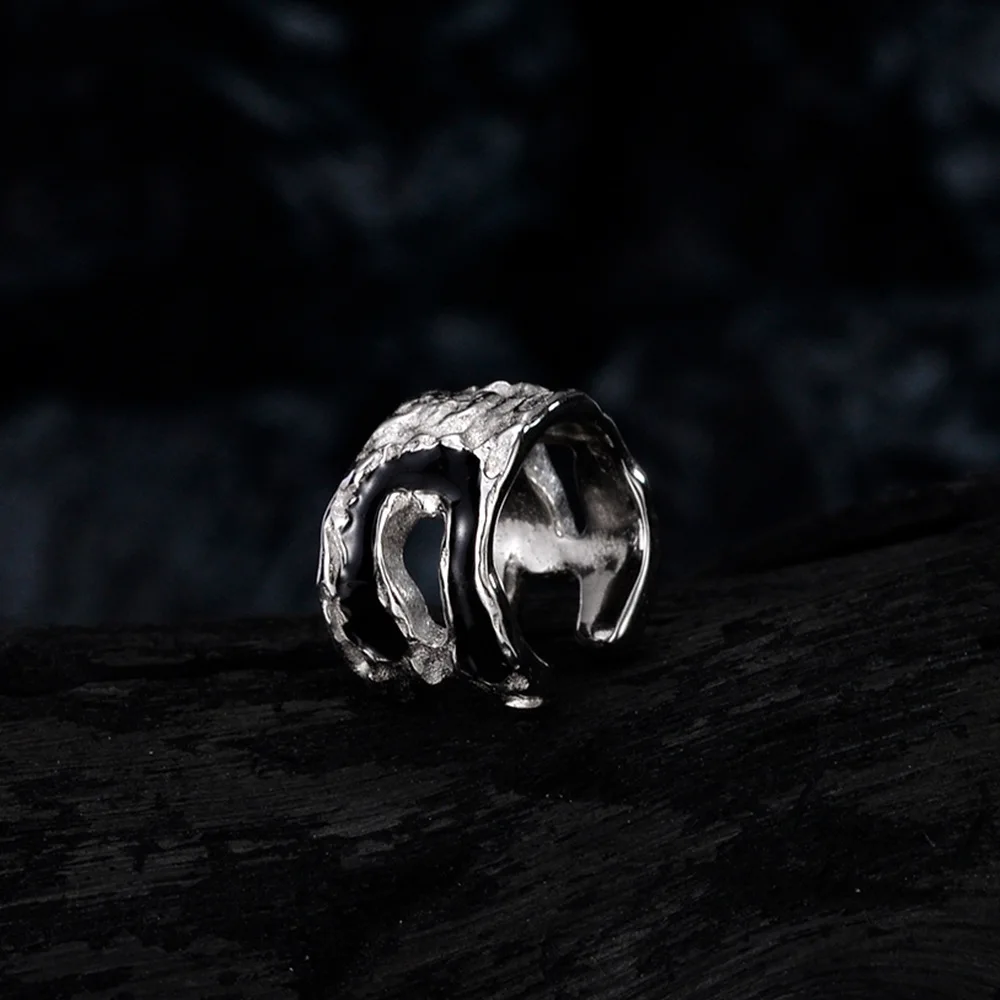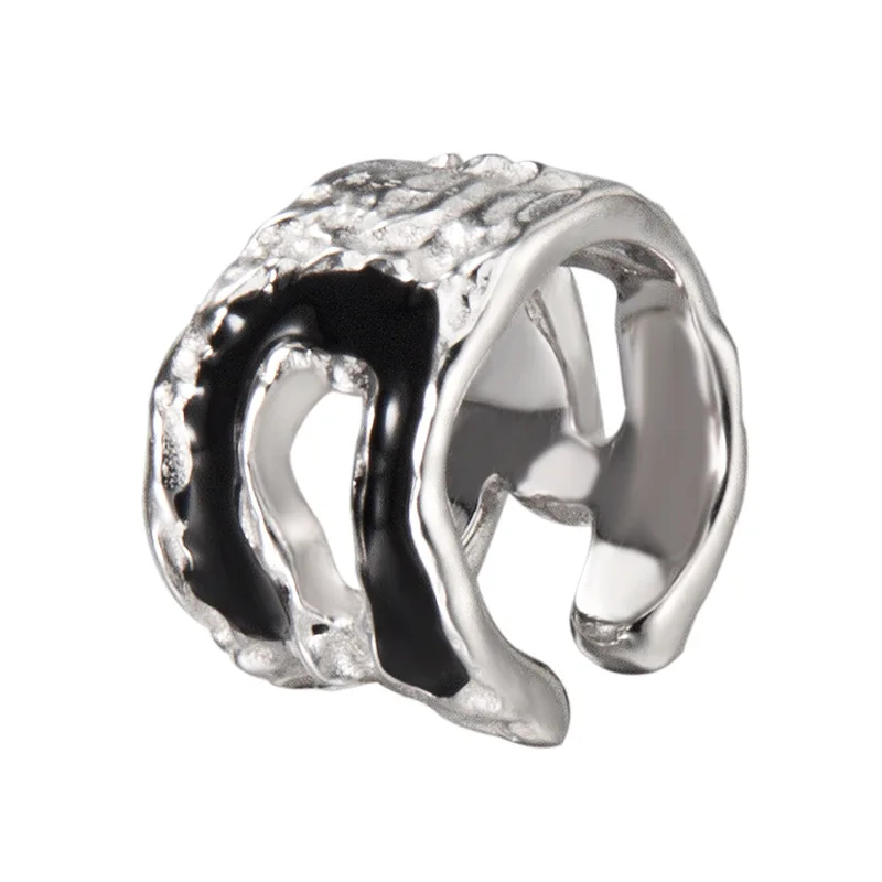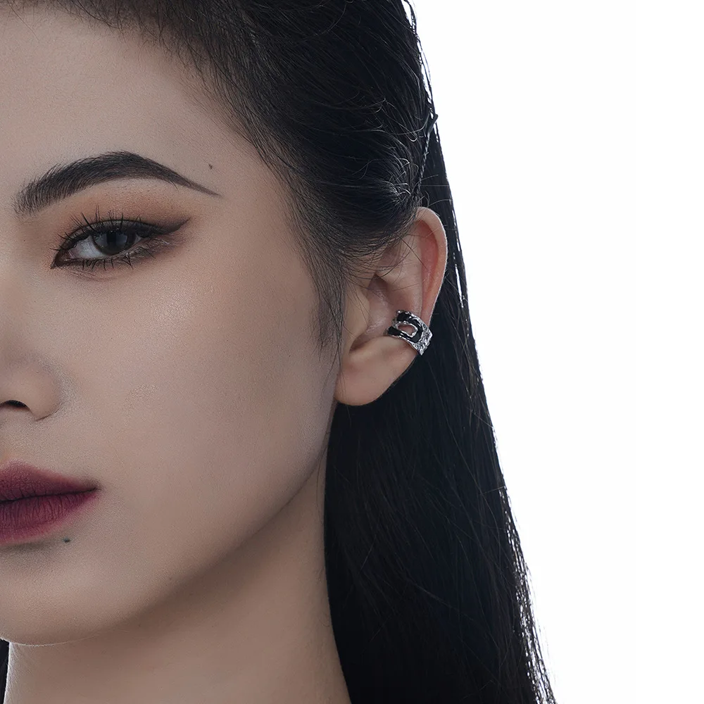 MLKENLY S925 sterling silver Irregular texture ear clip with irregular shape, female ins style, black drip glue ear cuff