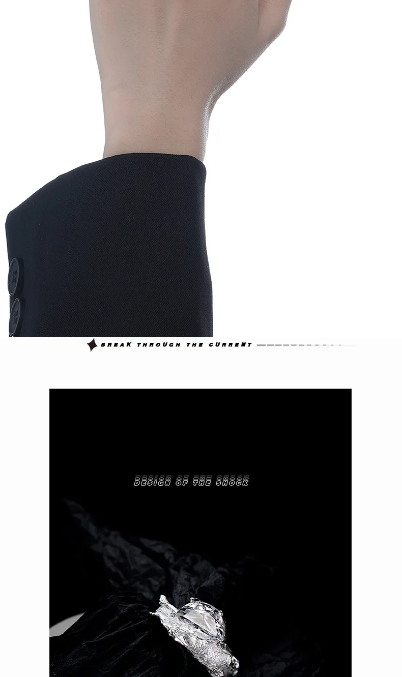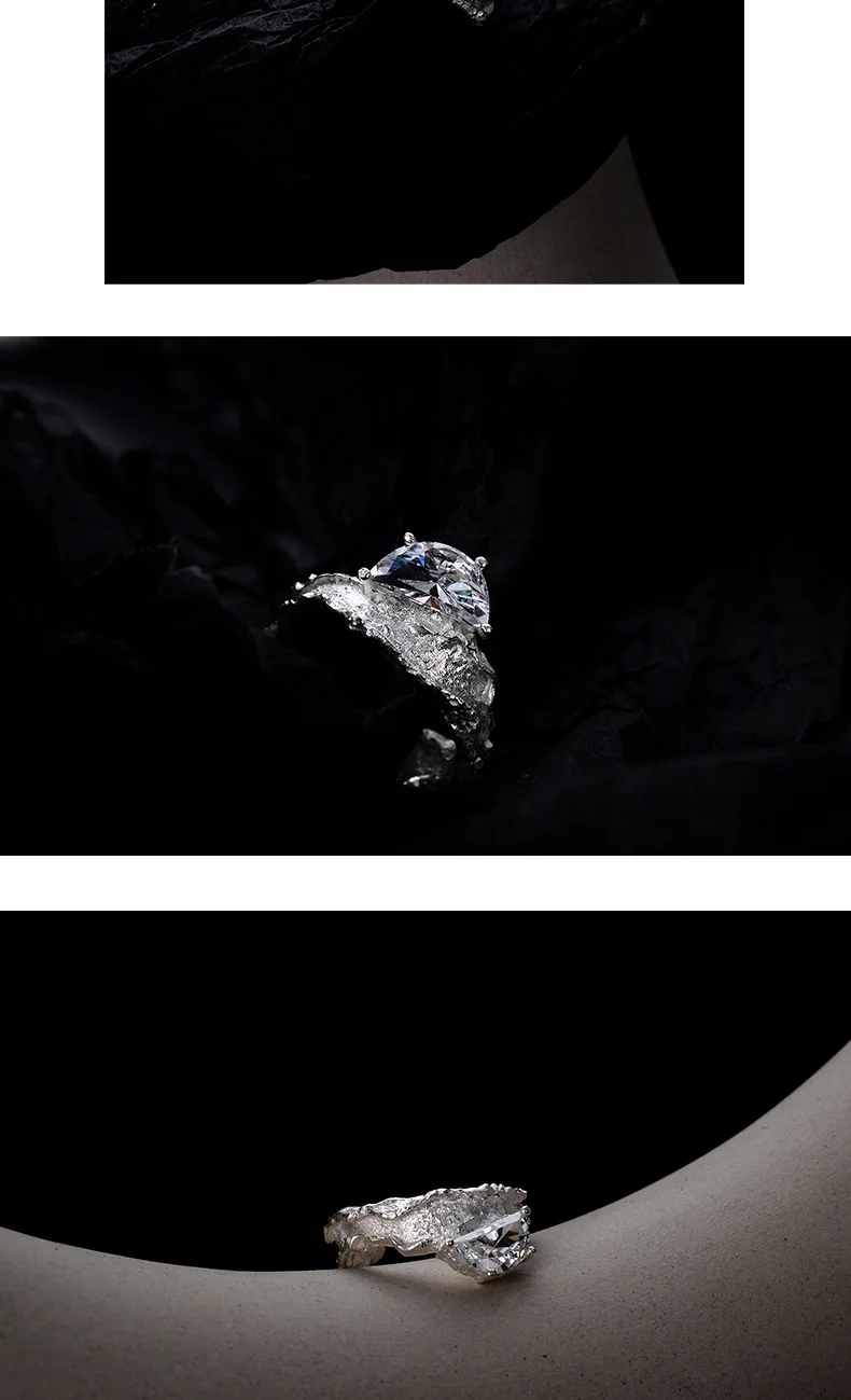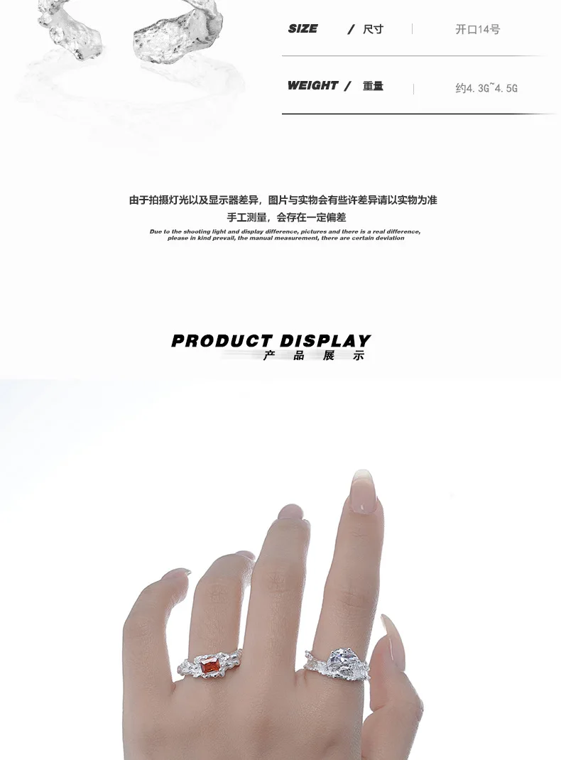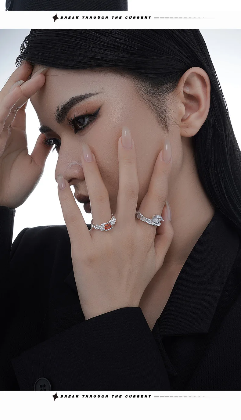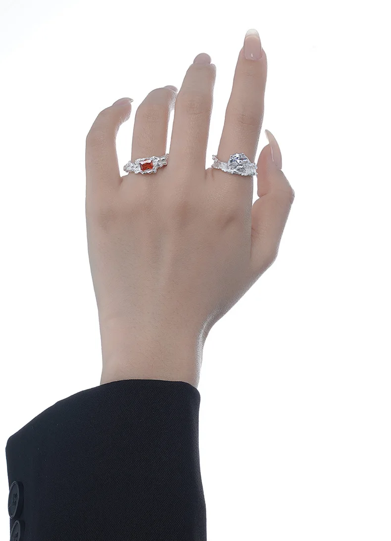 MLKENLY S925 sterling silver Irregular texture ring with female ins style opening inlaid with zircon index finger ring