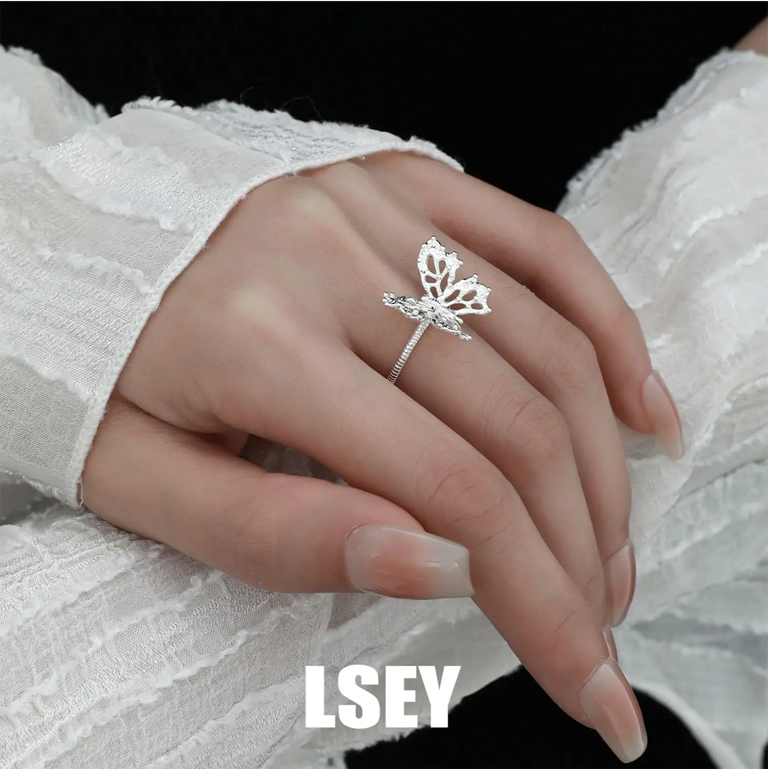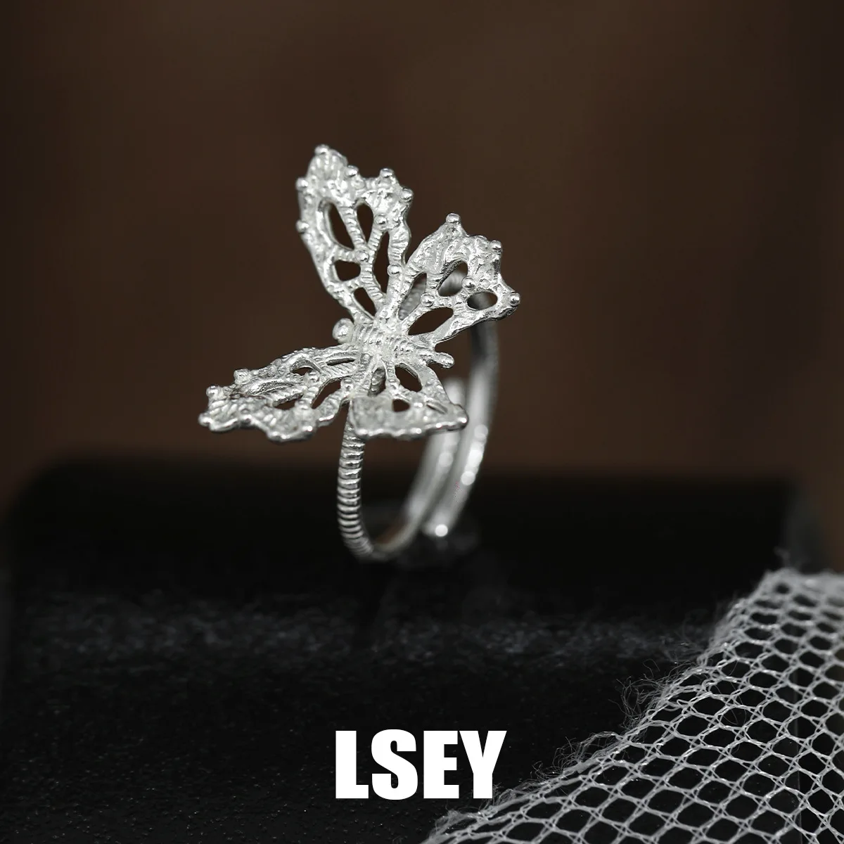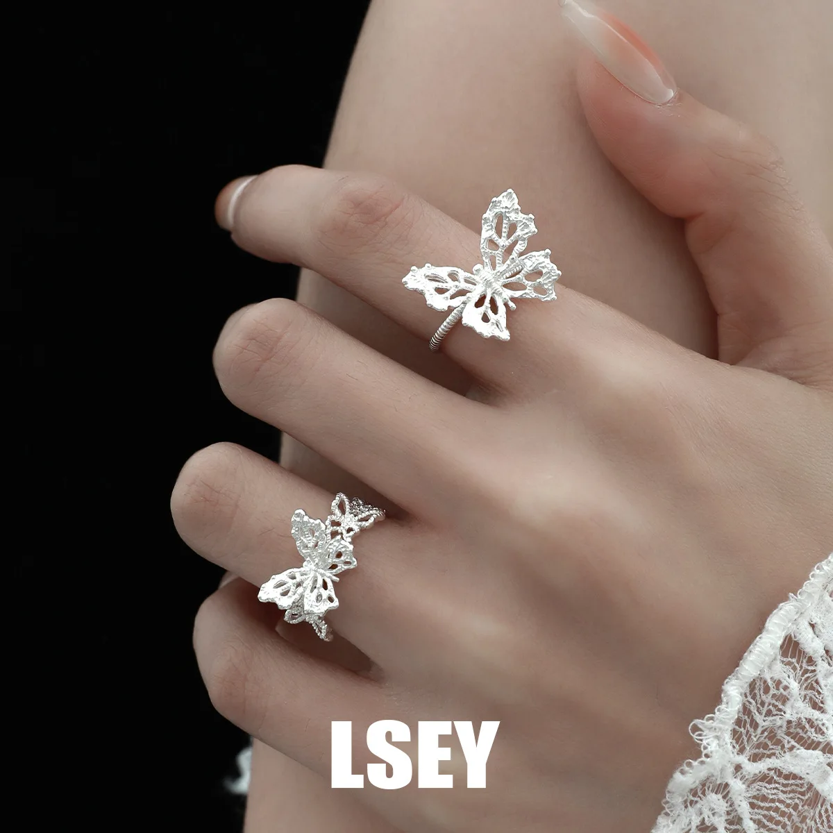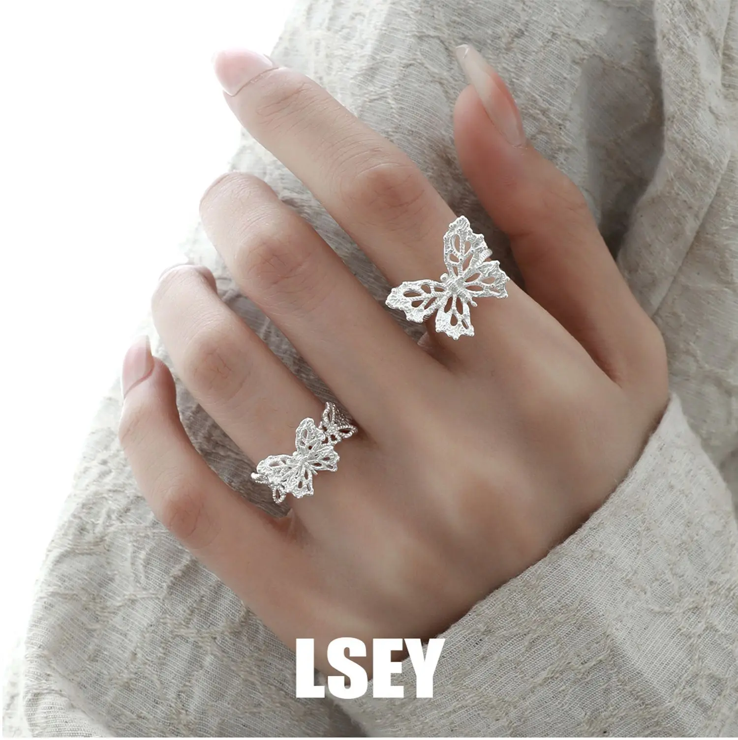 MLKENLY S925 sterling silver Lace Bow Rings For Women Men Simple Design Fashion Open Adjustable Ring Gift