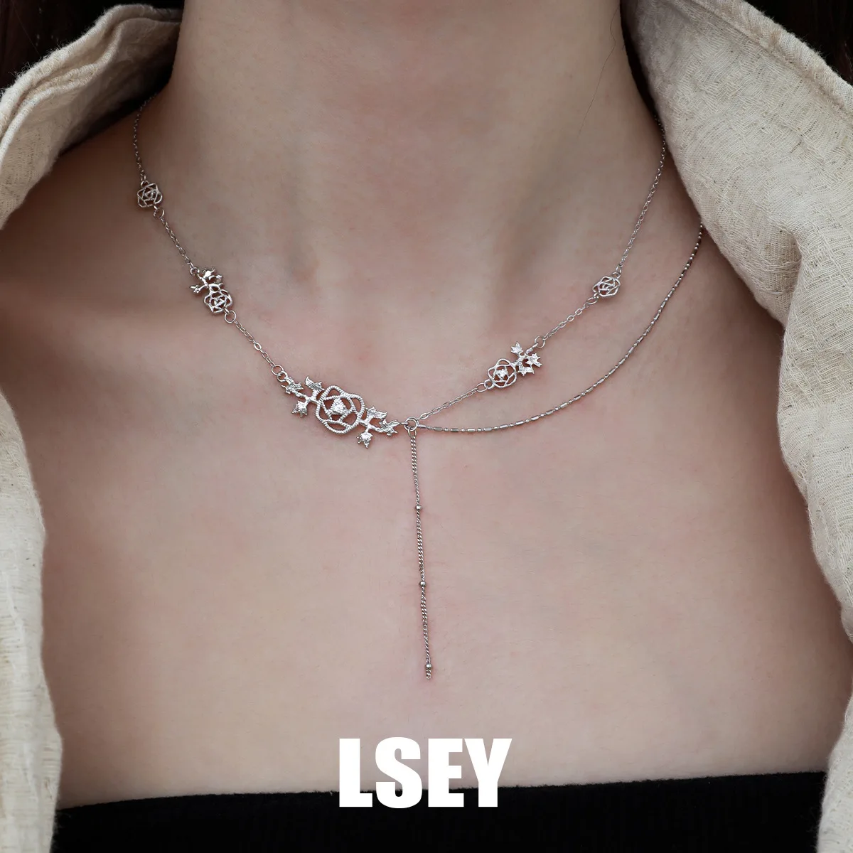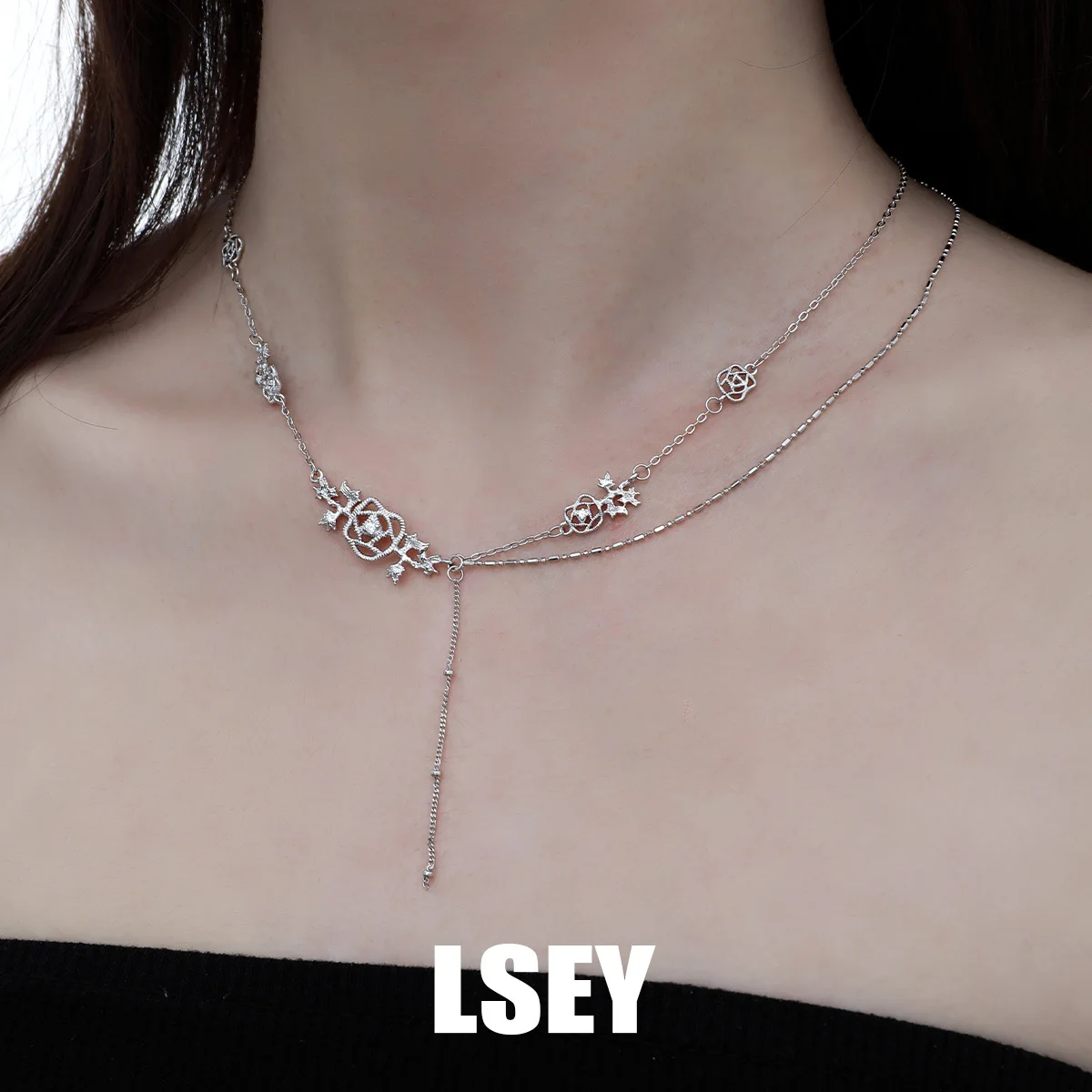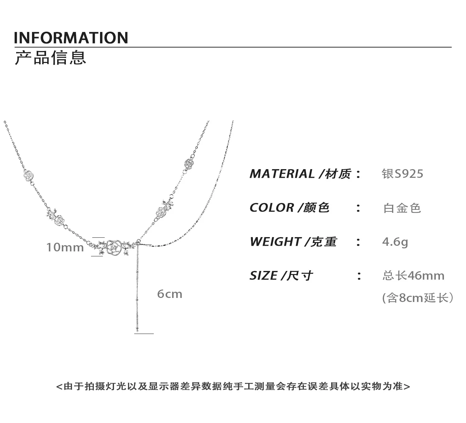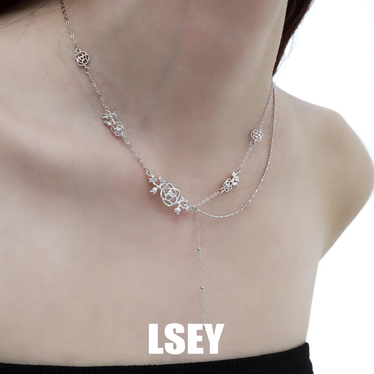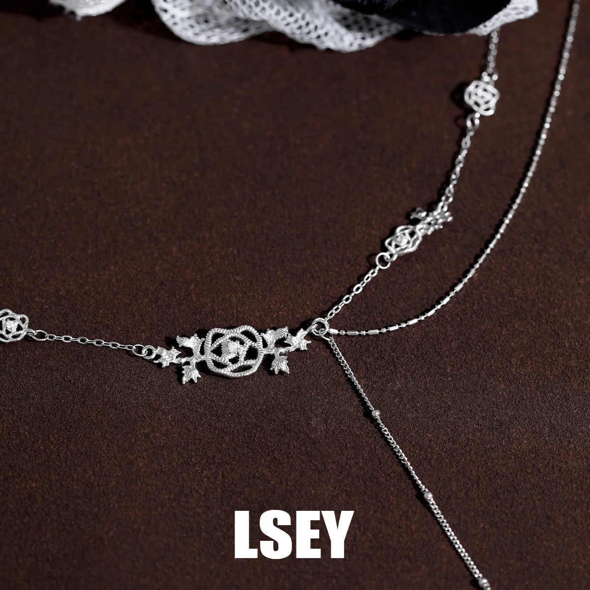 MLKENLY S925 Sterling Silver Lace Rose Necklace For Women Rose Fine Jewelry Simple Style Classical hollowed out woven jewelry