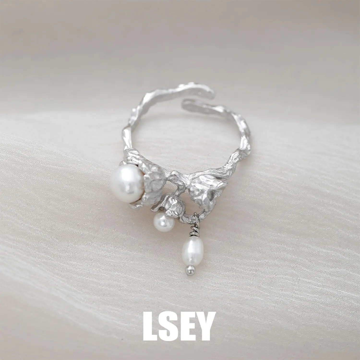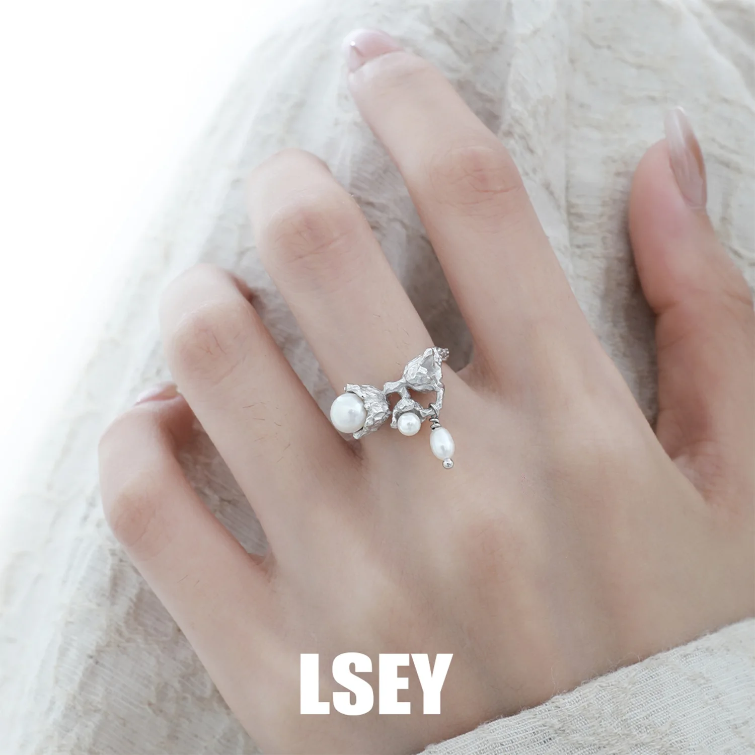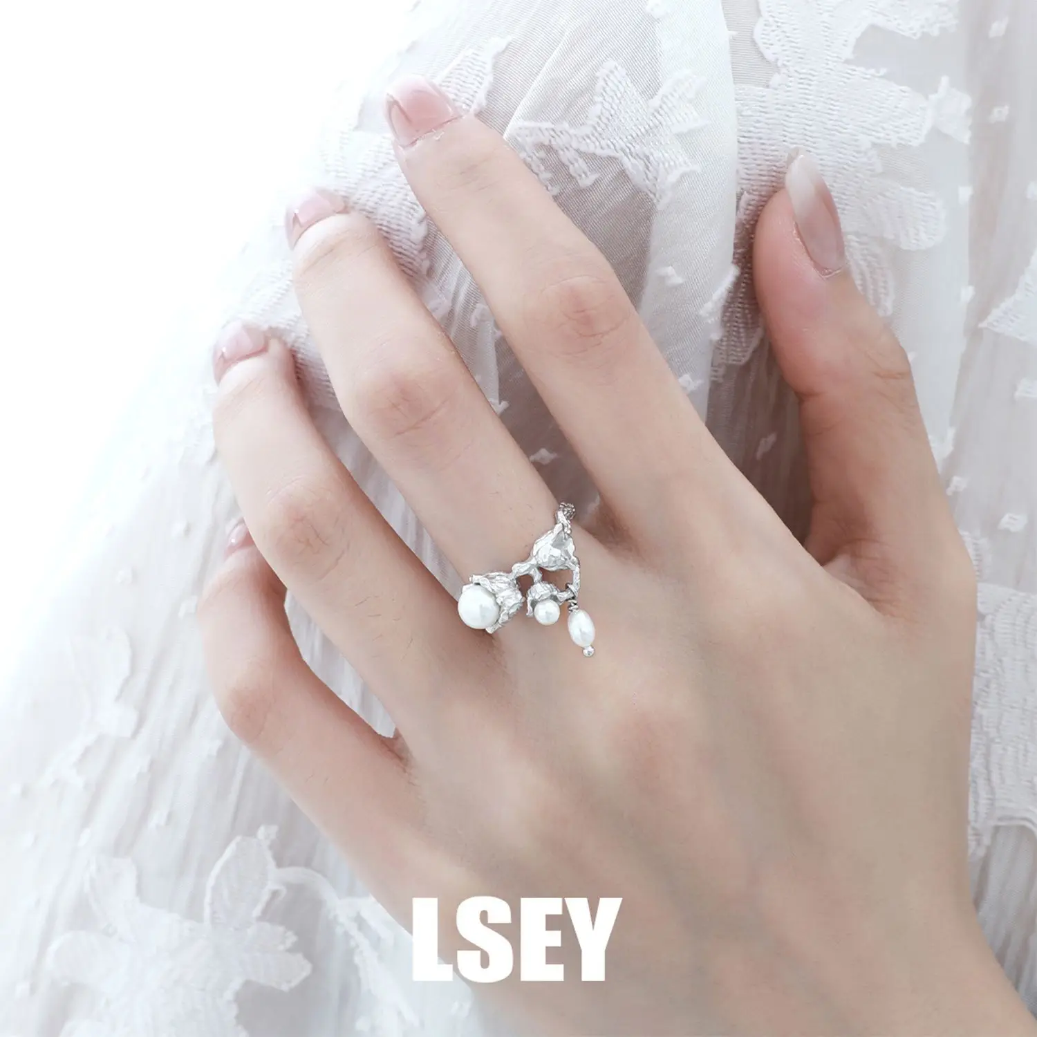 MLKENLY S925 sterling silver Lily Pearl Open Ring ...
