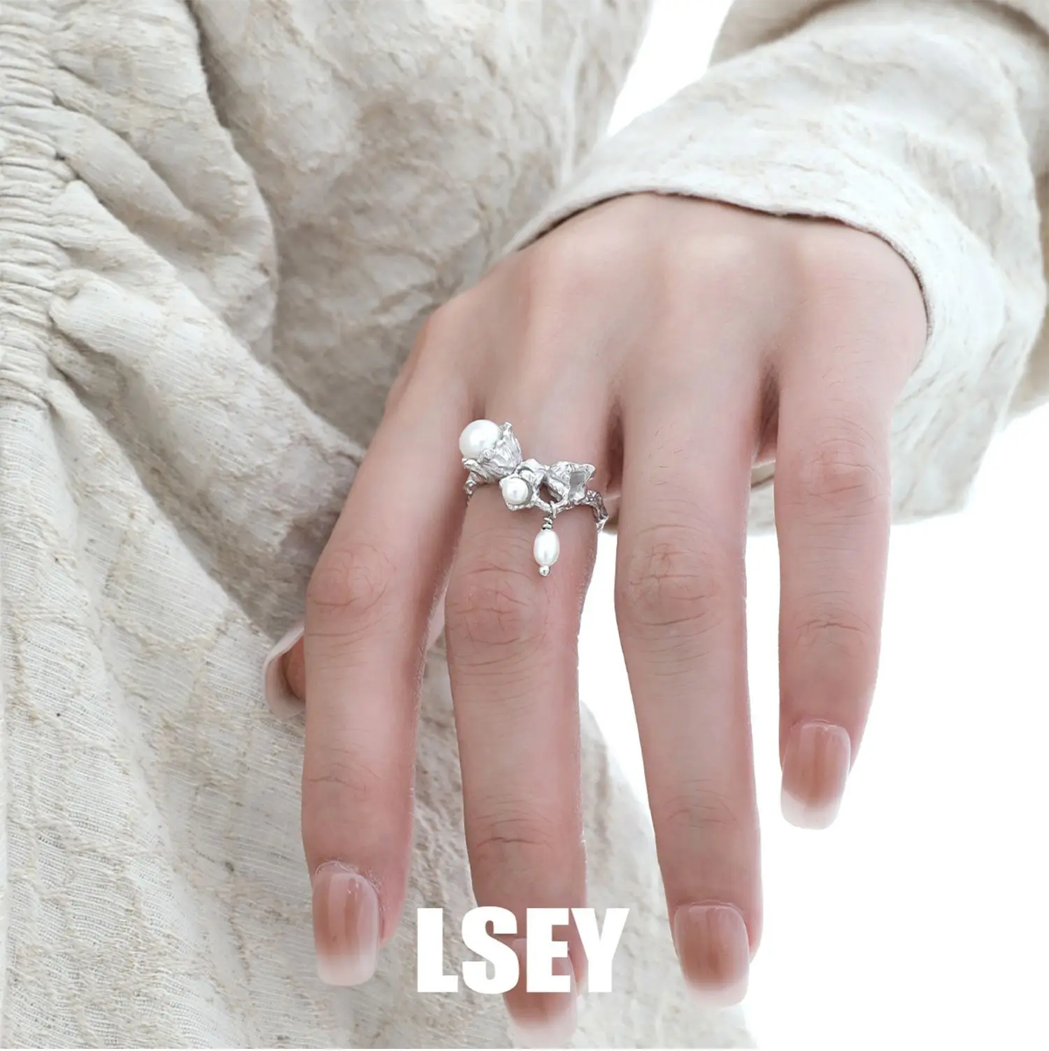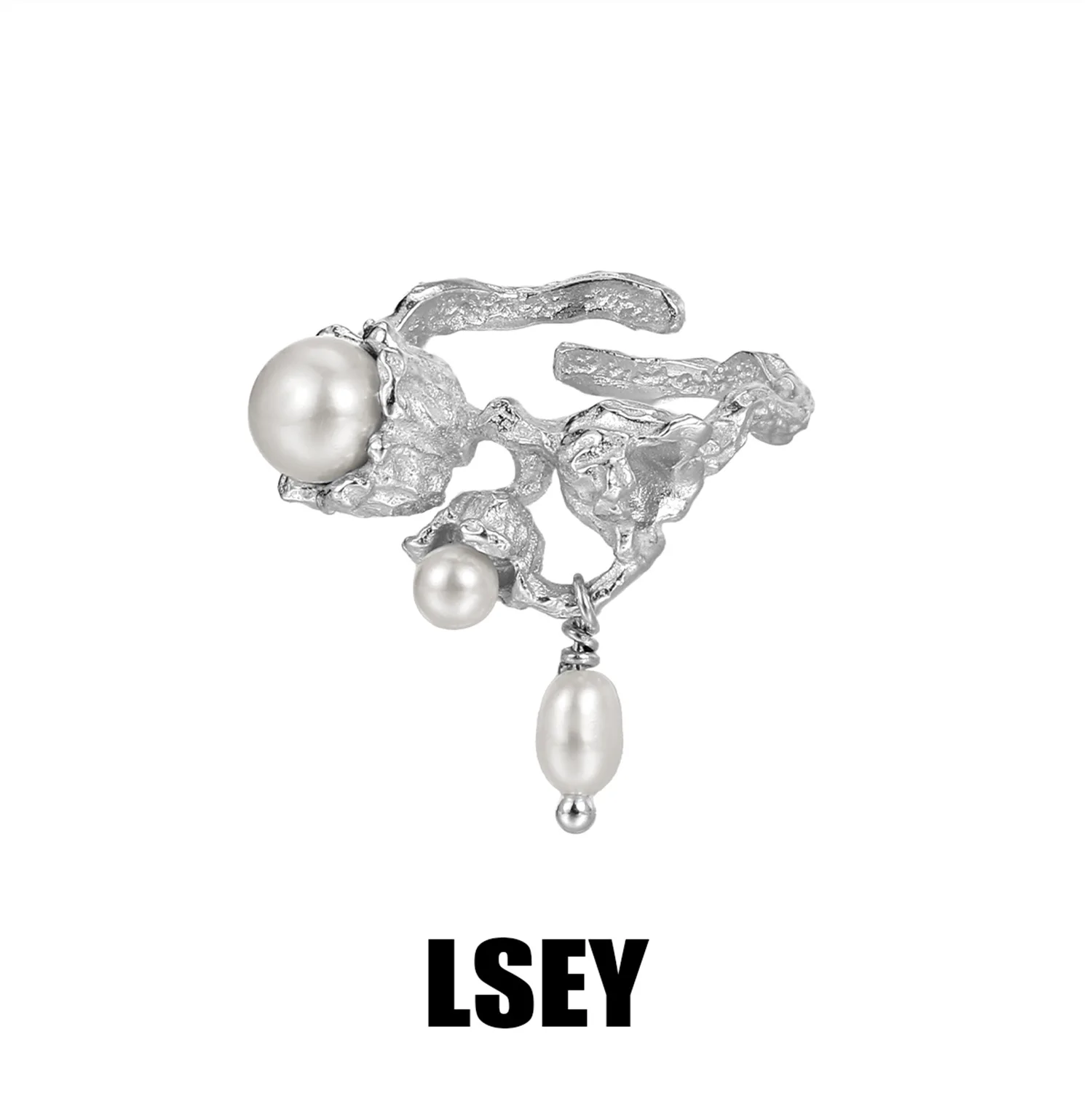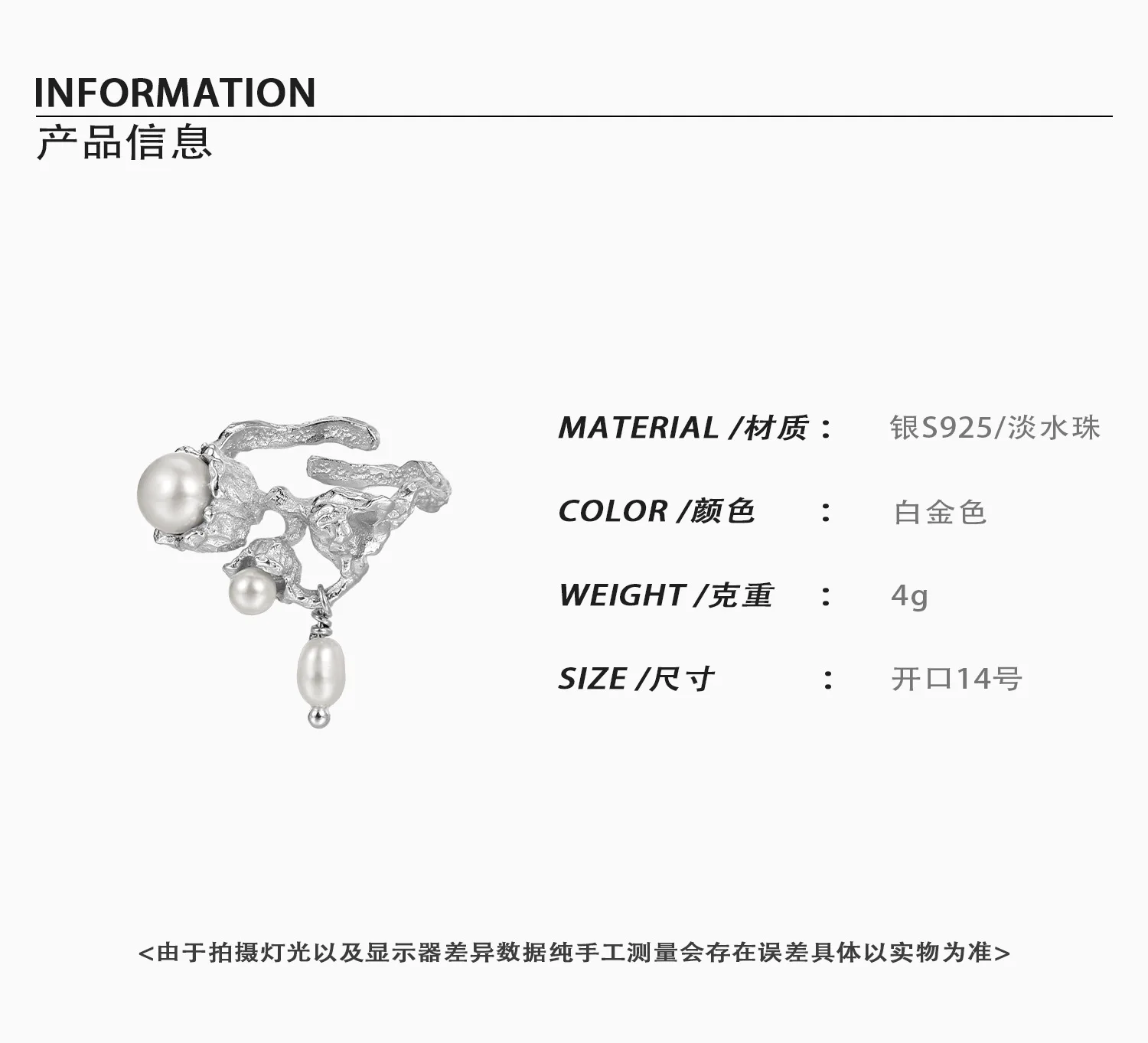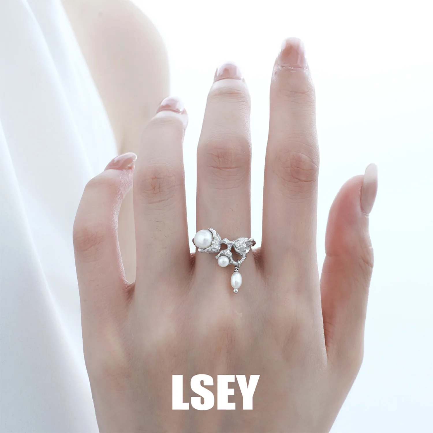 MLKENLY S925 sterling silver Lily Pearl Open Ring ...