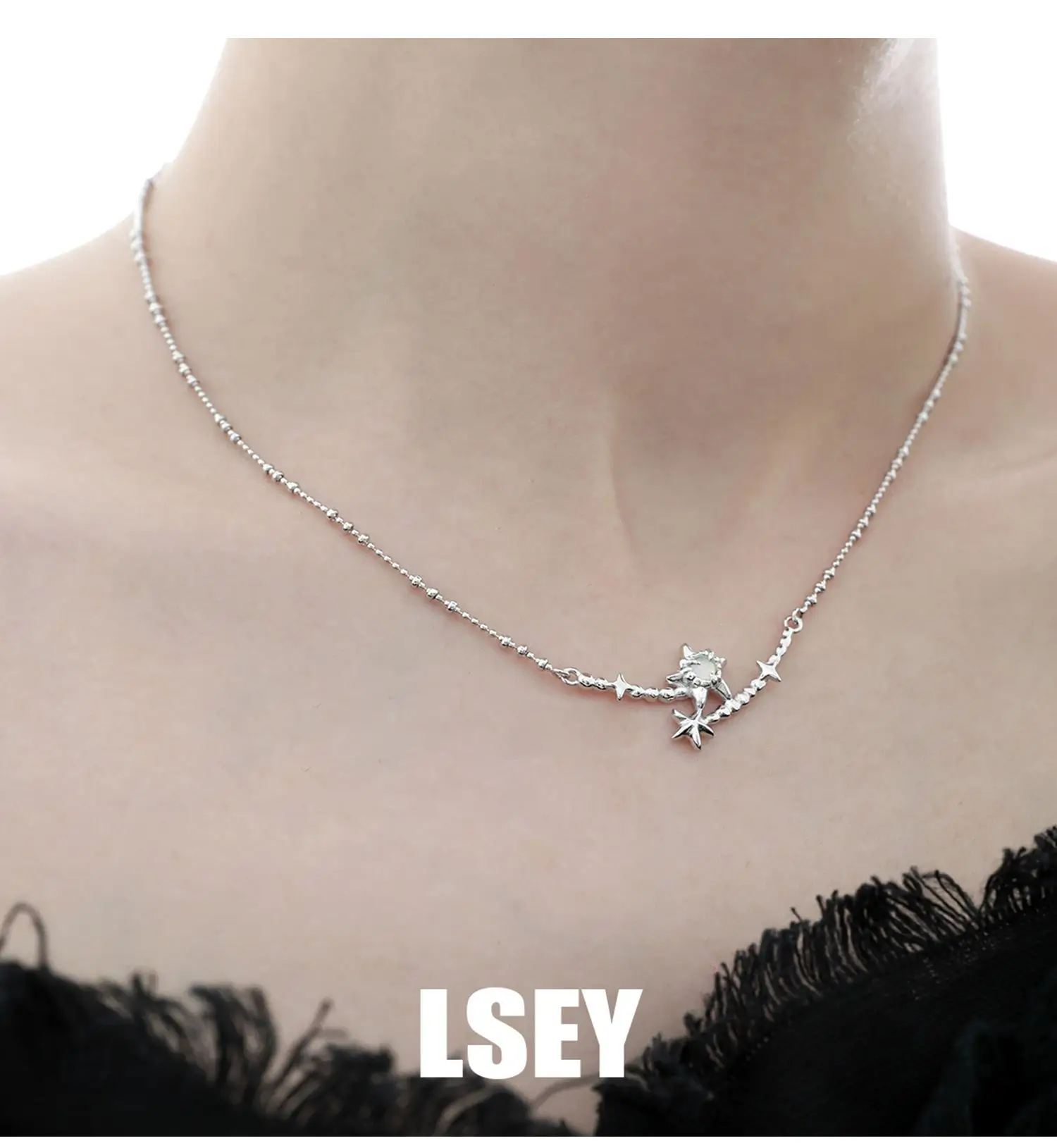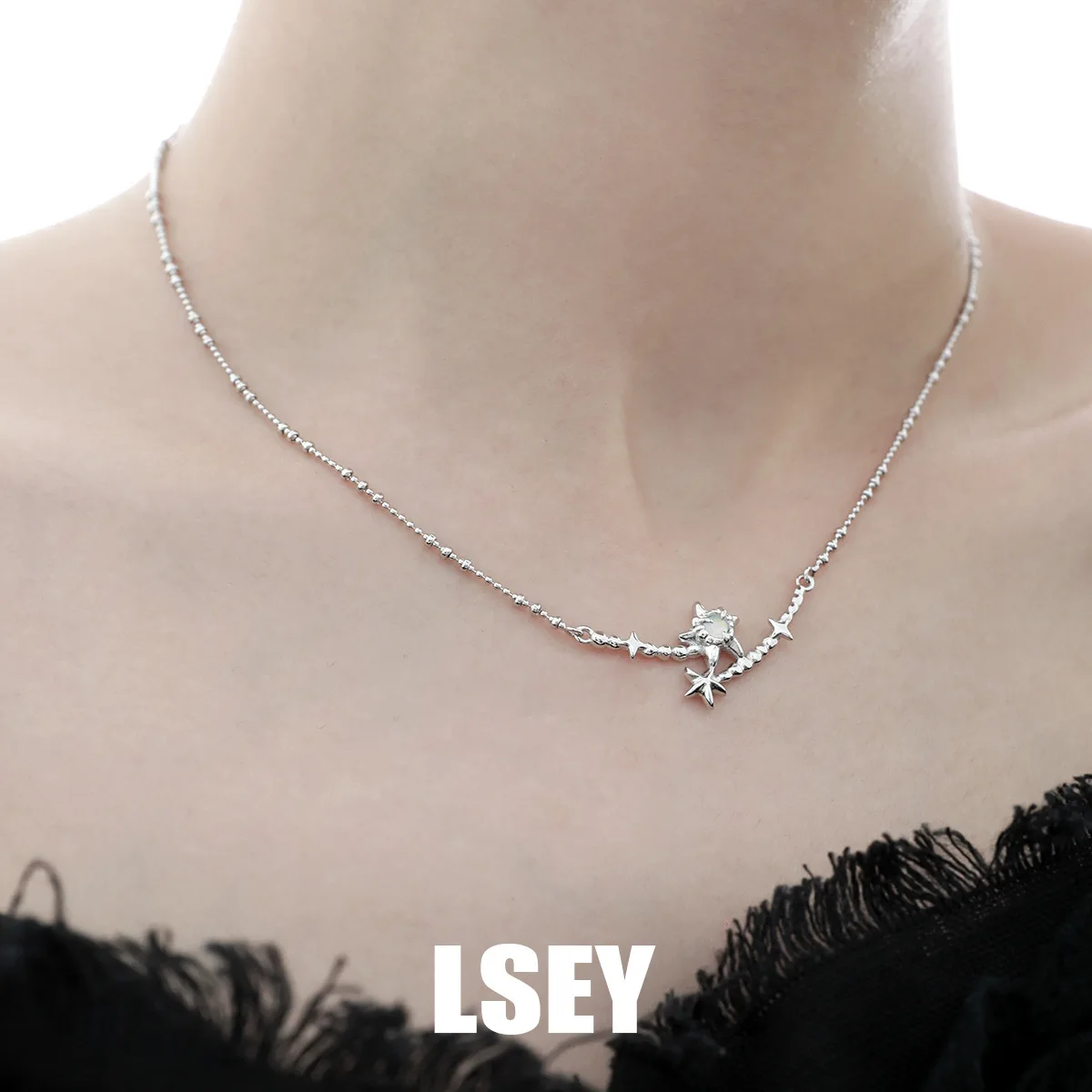MLKENLY S925 sterling silver Opal Star Pendant Chain Non-fading summer choker jewelry necklace Women’s Accessories ornament