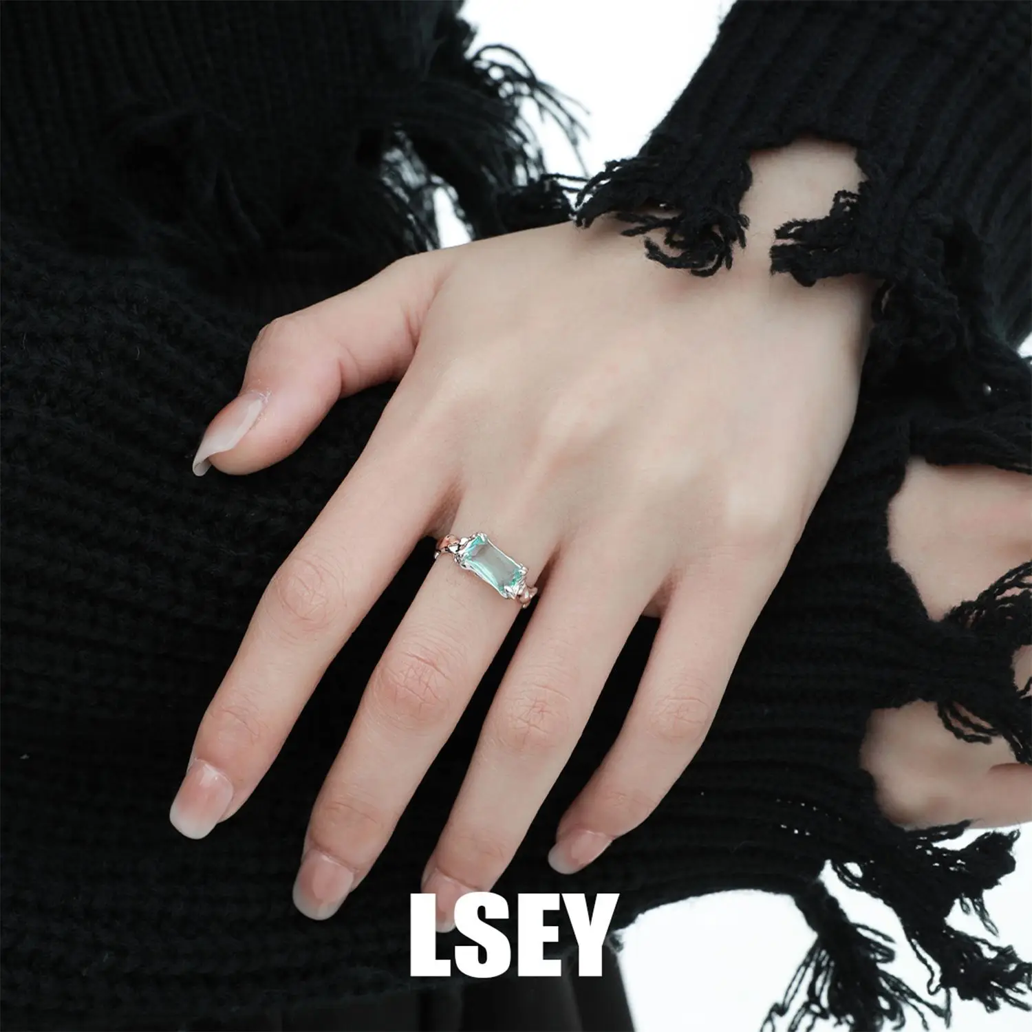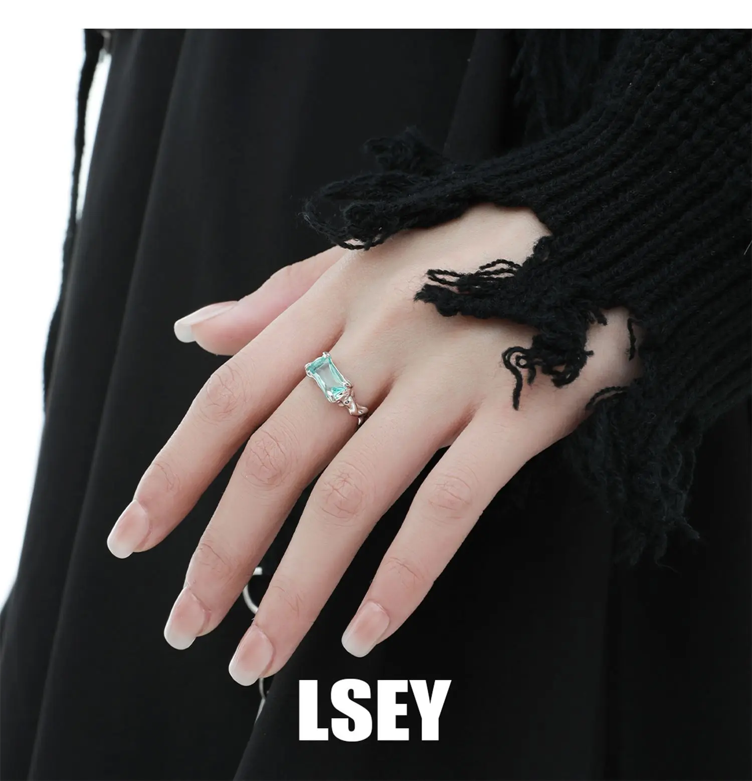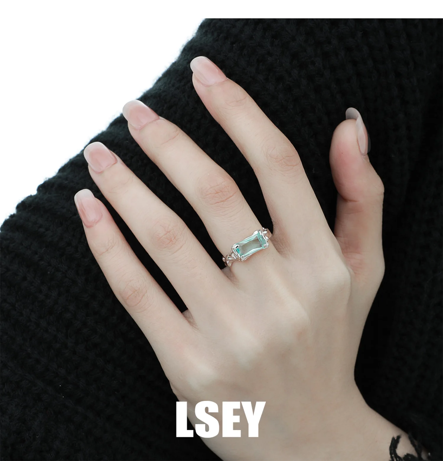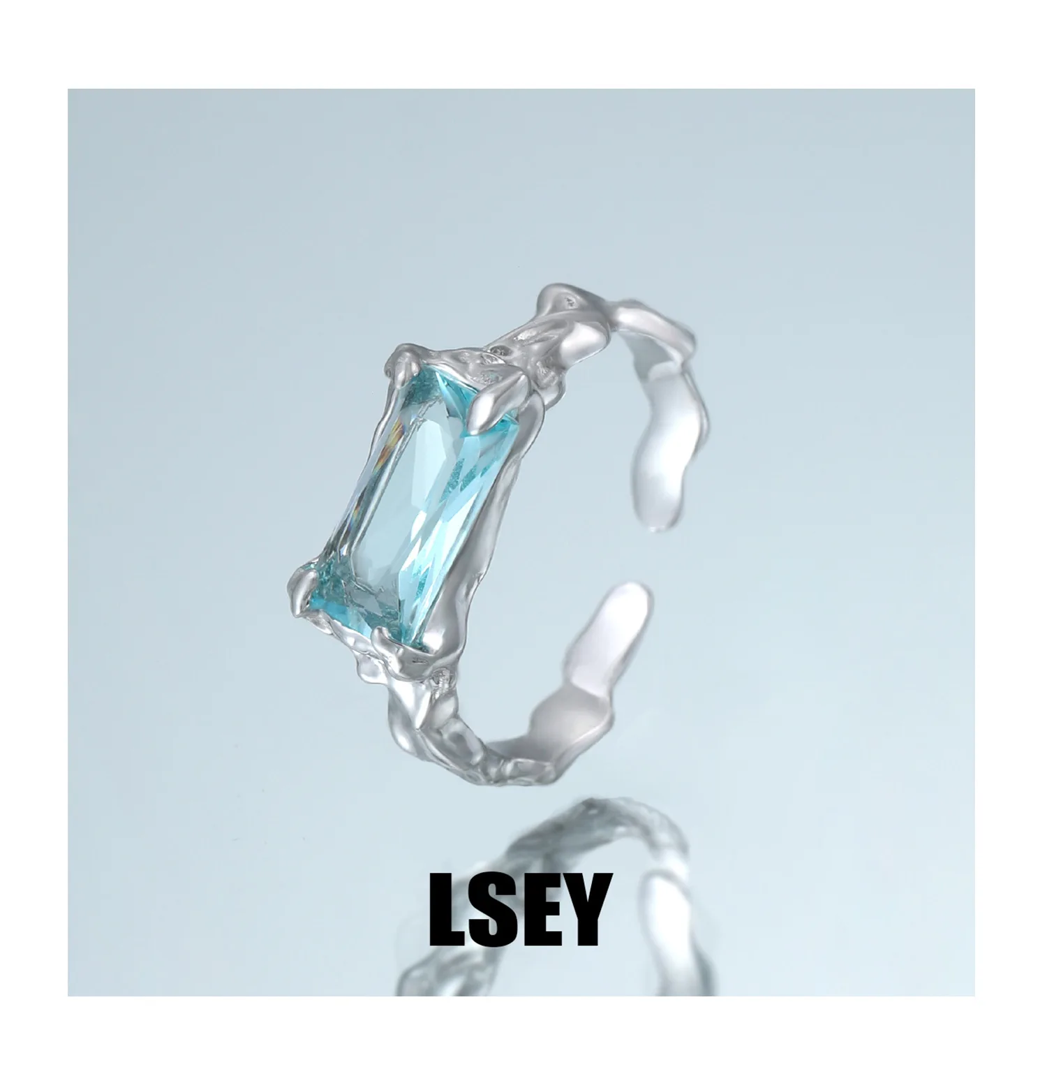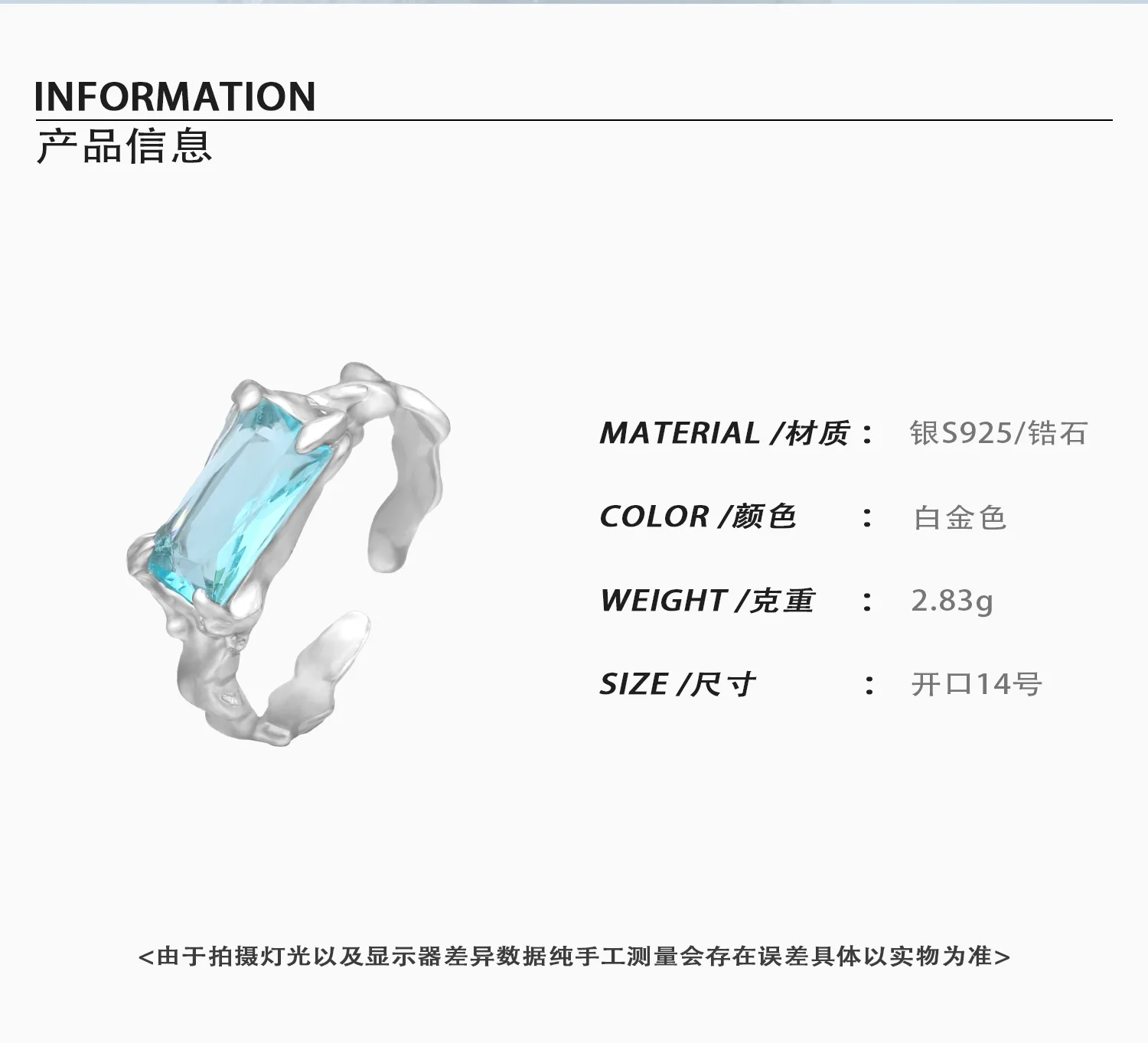 MLKENLY S925 sterling silver Open Ring Texture Blu...