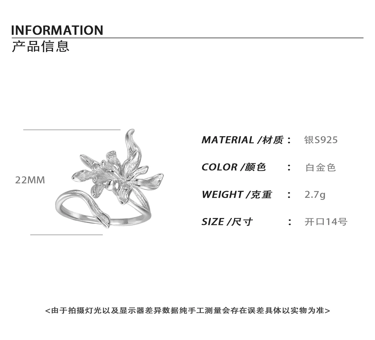MLKENLY S925 sterling silver Orchid Flower Resizab...