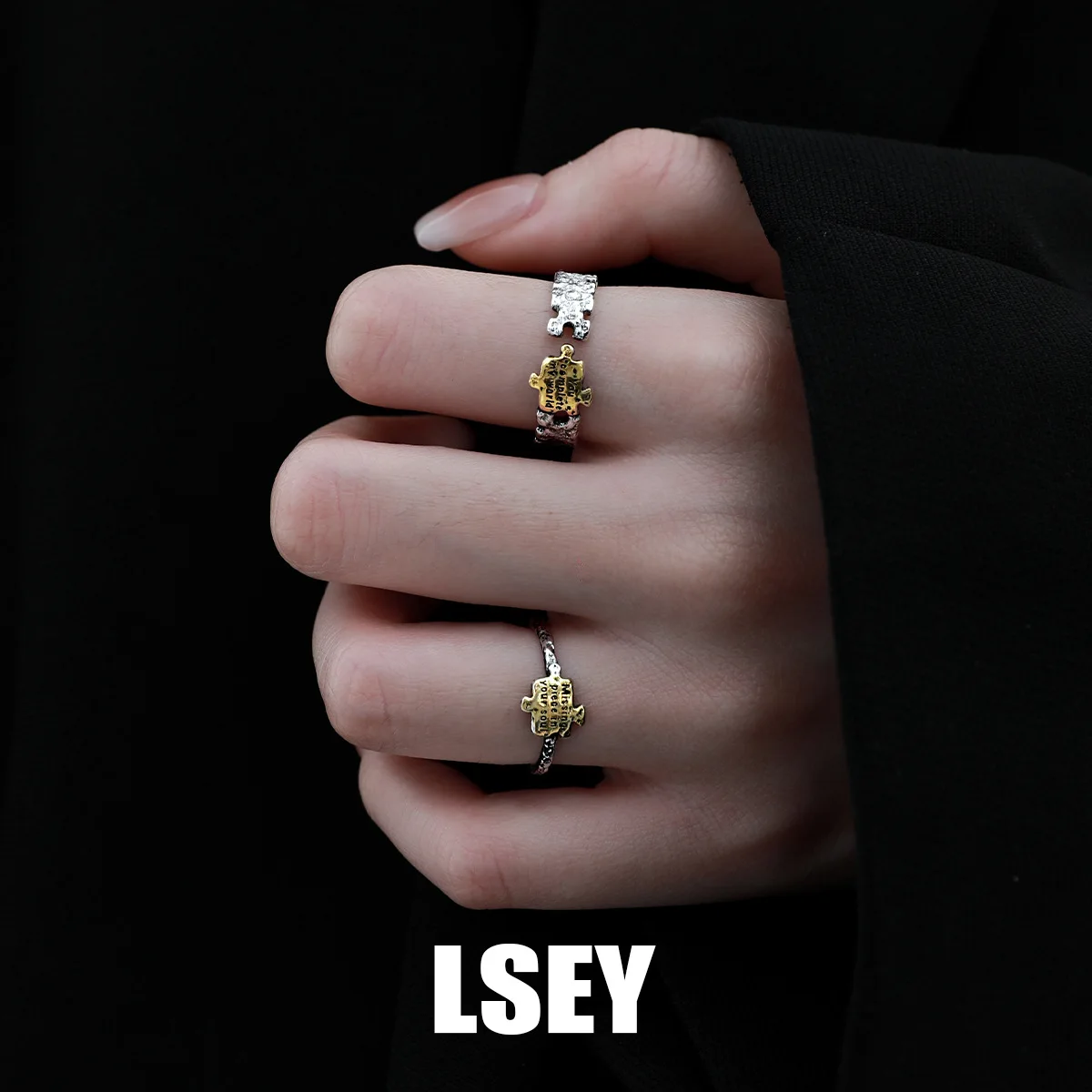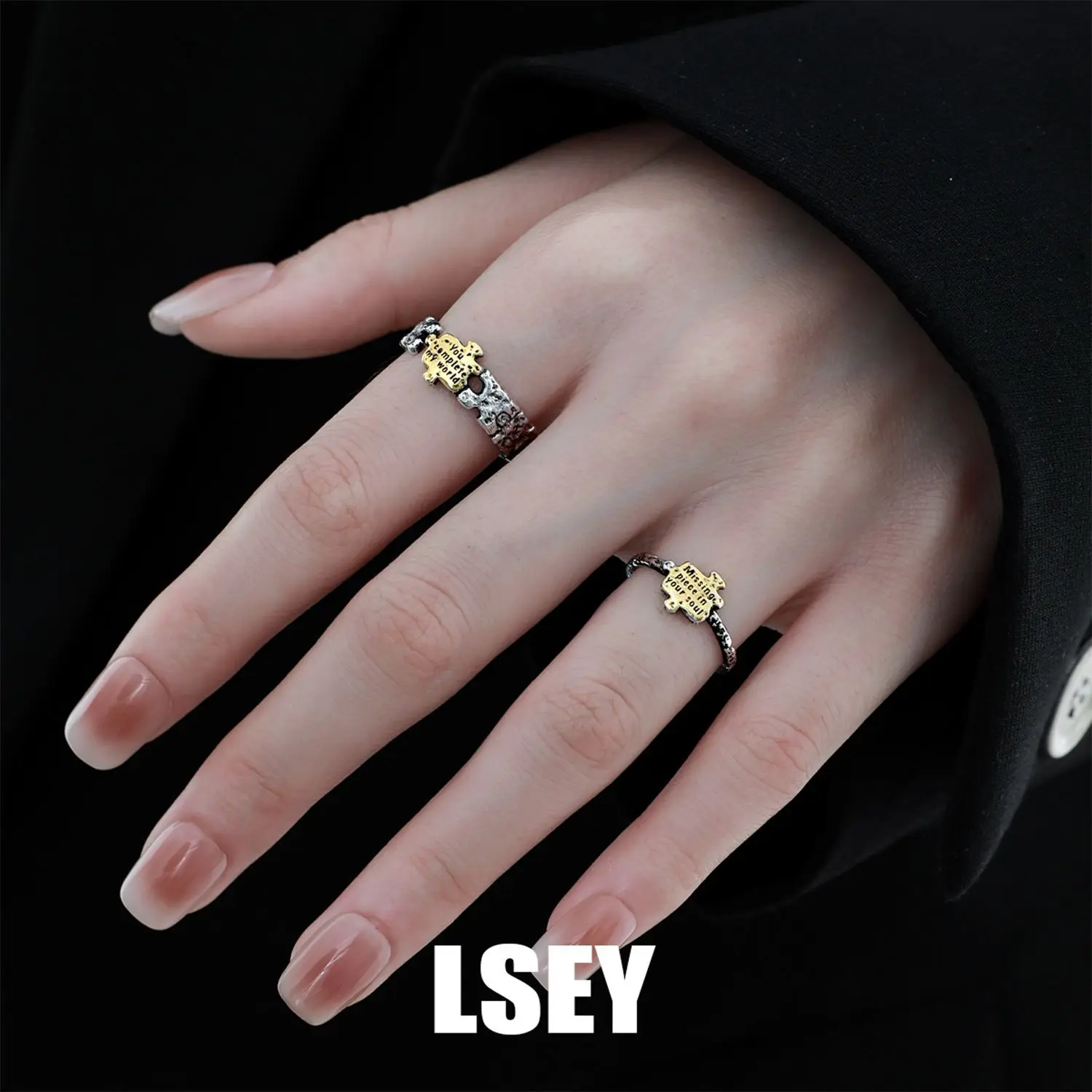 MLKENLY S925 sterling silver Promise Ring for Her Him Projection Couple Ring Adjustable I Love You Engagement Wedding Ring