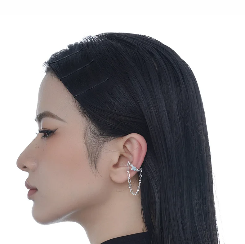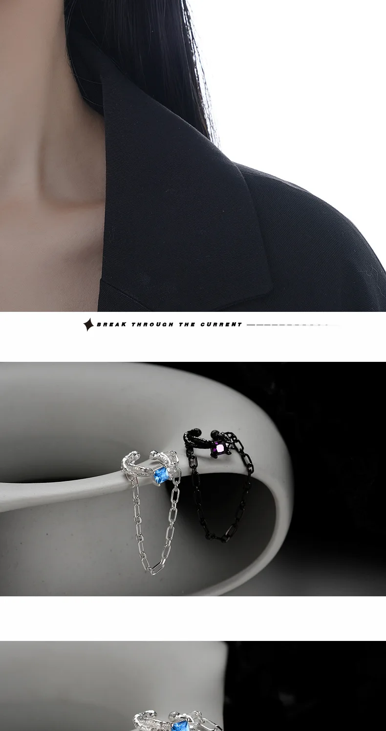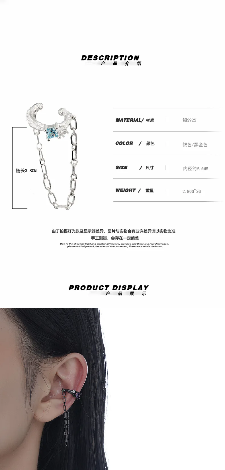 MLKENLY S925 sterling silver Texture Chain Ear Cli...