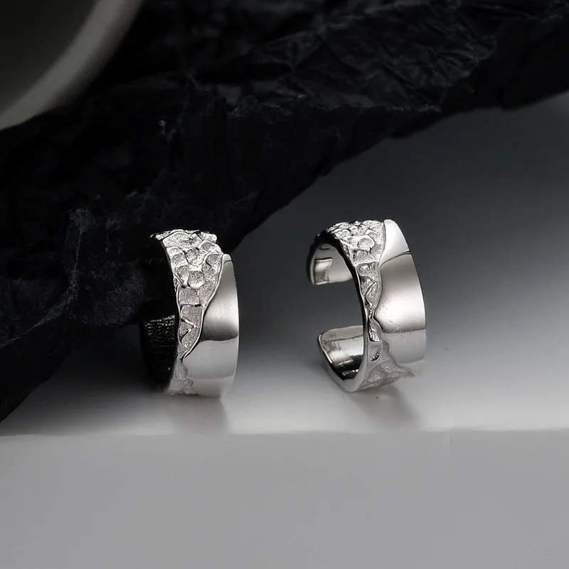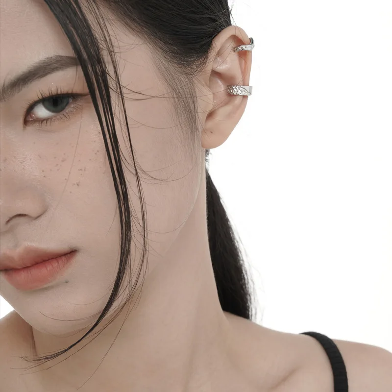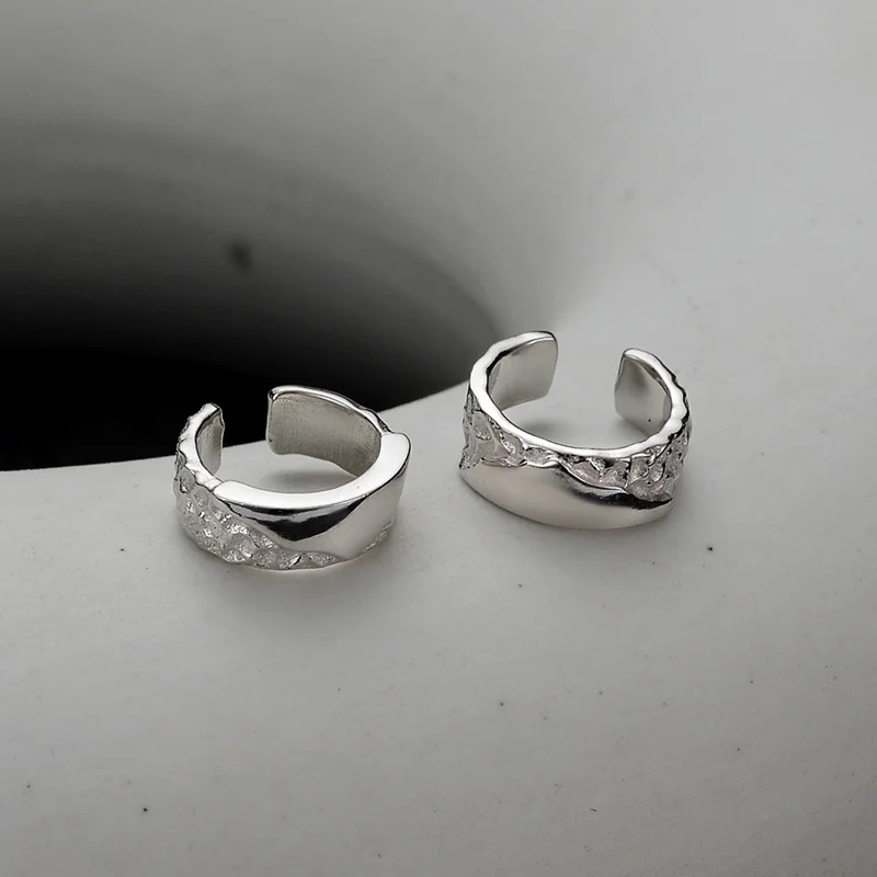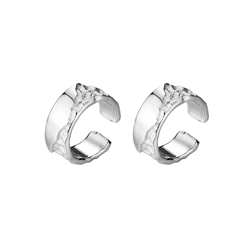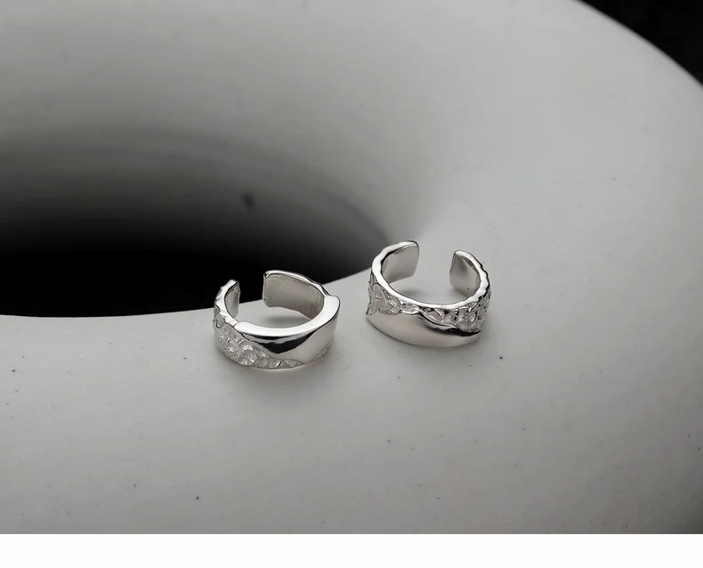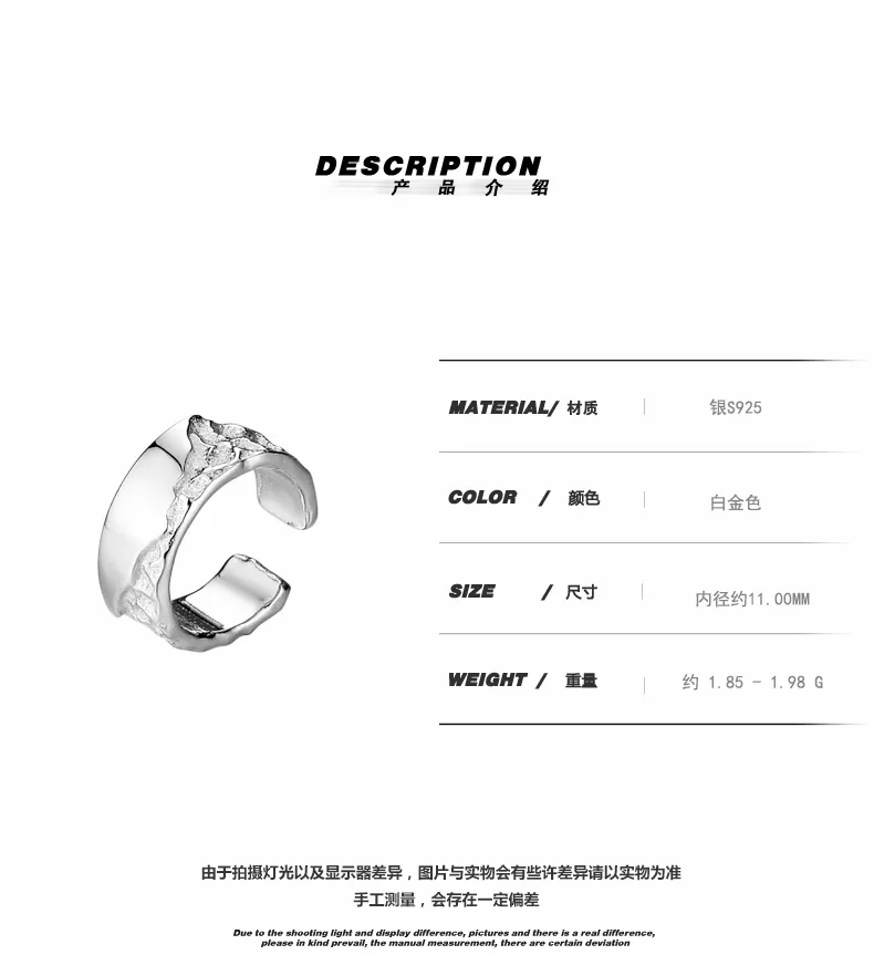 MLKENLY S925 sterling silver Texture ear clip, female personality trend, niche design, irregular ear hole free earrings