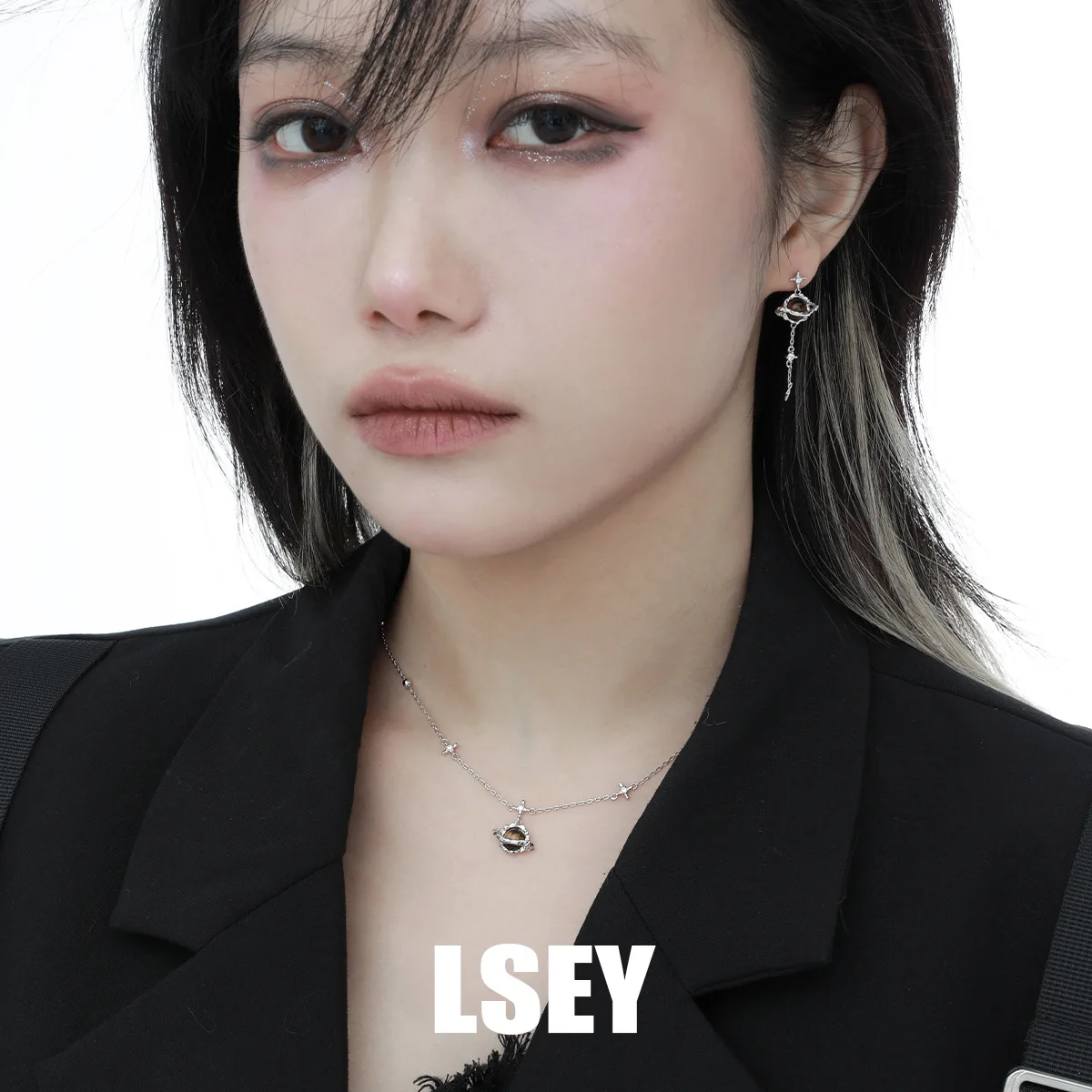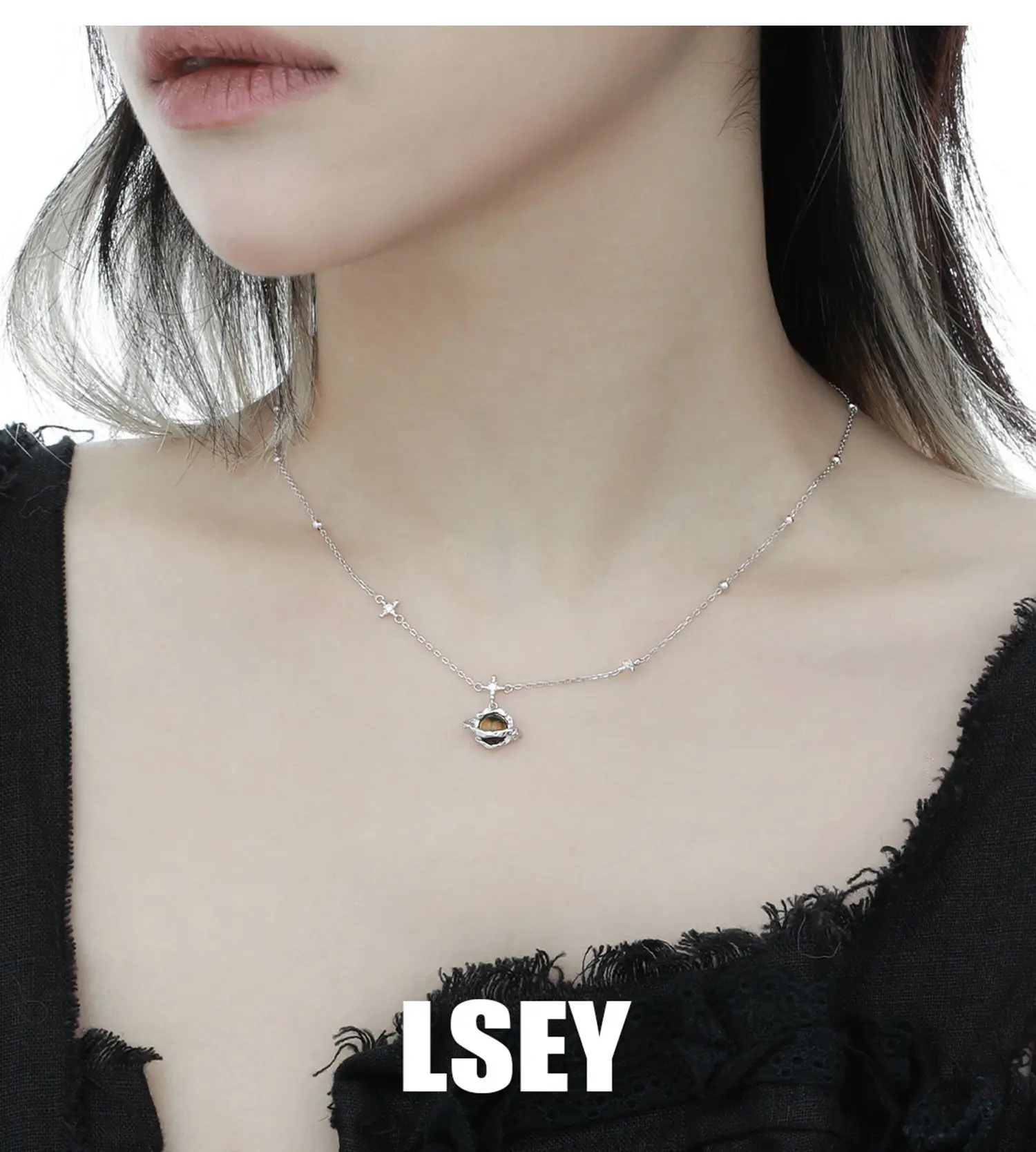 MLKENLY S925 Sterling Silver Versatile temperament Saturn tiger eye stone Pendant Necklace For Women Collarbone Chain Sets
