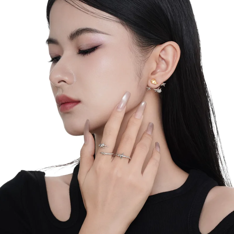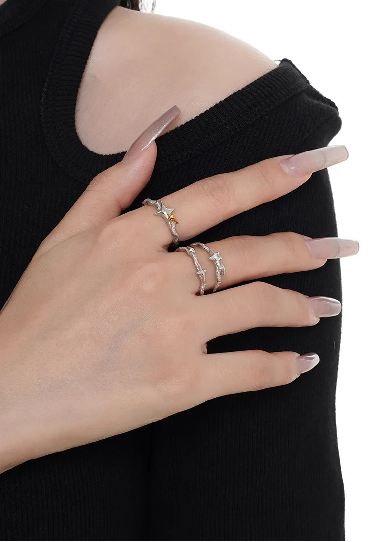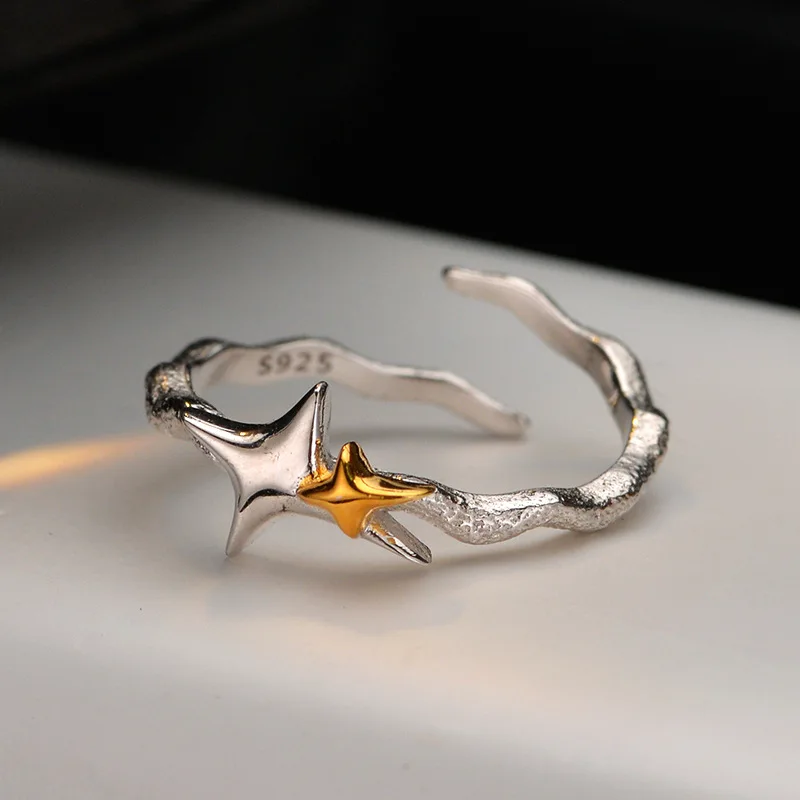 MLKENLY S925 sterling silver Vintage Irregular Cross Star Open Ring for Women Men Punk Adjustable Couple Rings Jewelry Gift