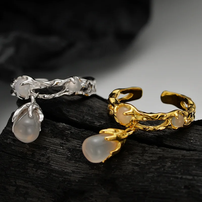 MLKENLY S925 sterling silver Waterdrop agate ring ...
