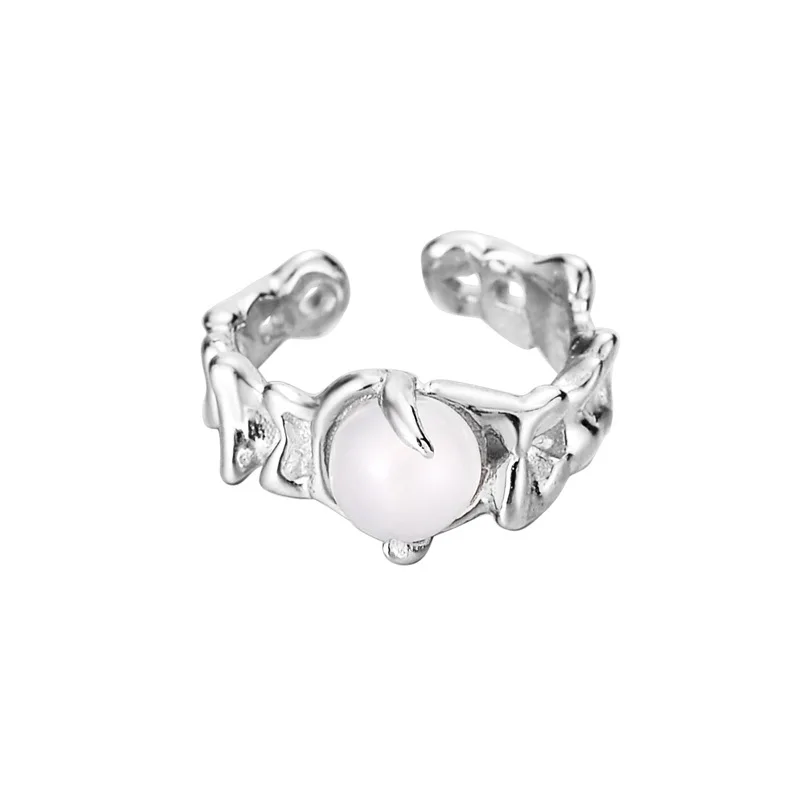 MLKENLY S925 sterling silver White agate ear clip female ins wind without ear hole damage texture