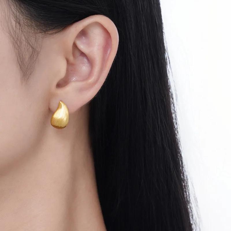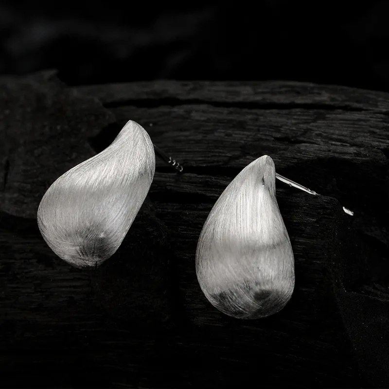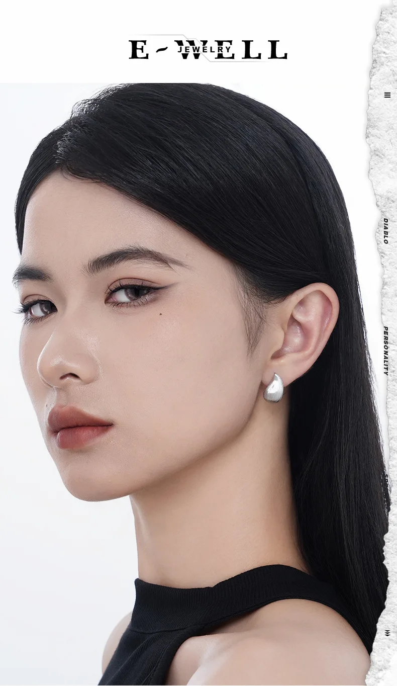 MLKENLY S925 Sterling Stud earrings Brushed texture water droplet earrings for female ins, cool style geometric earrings