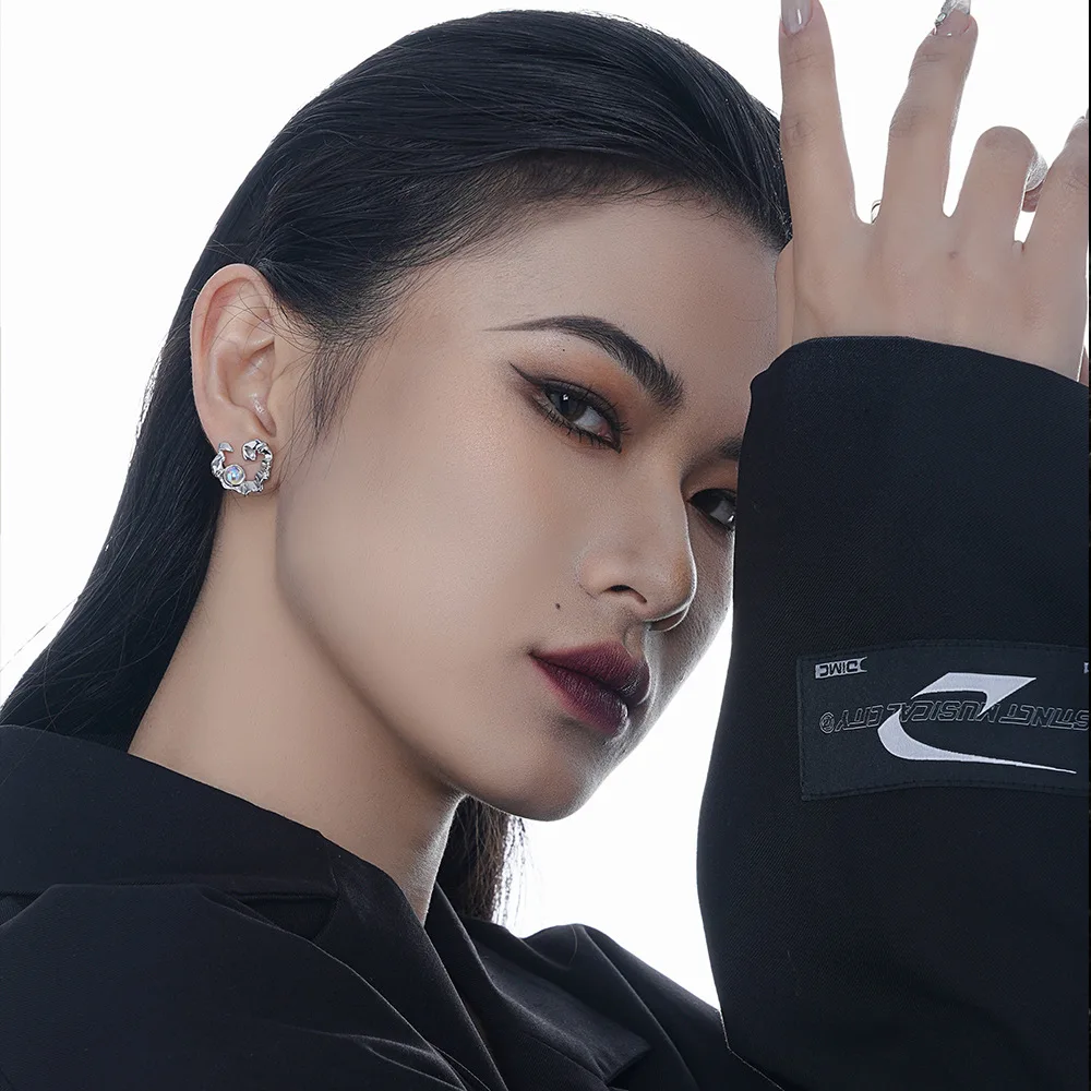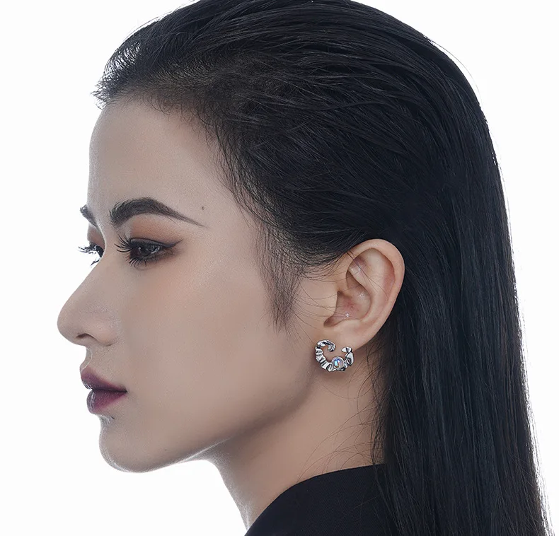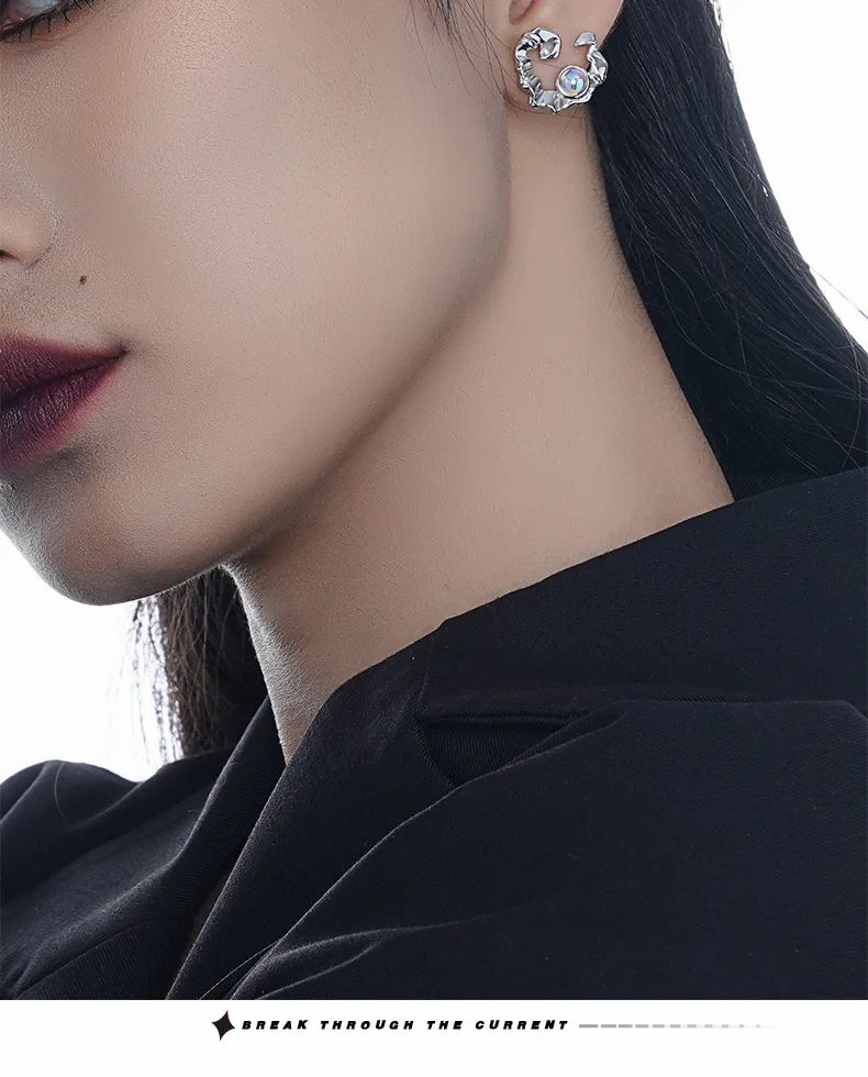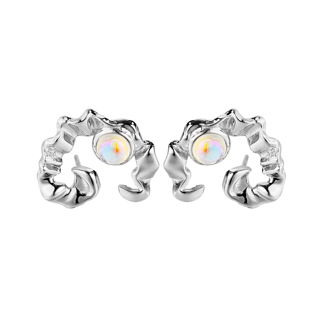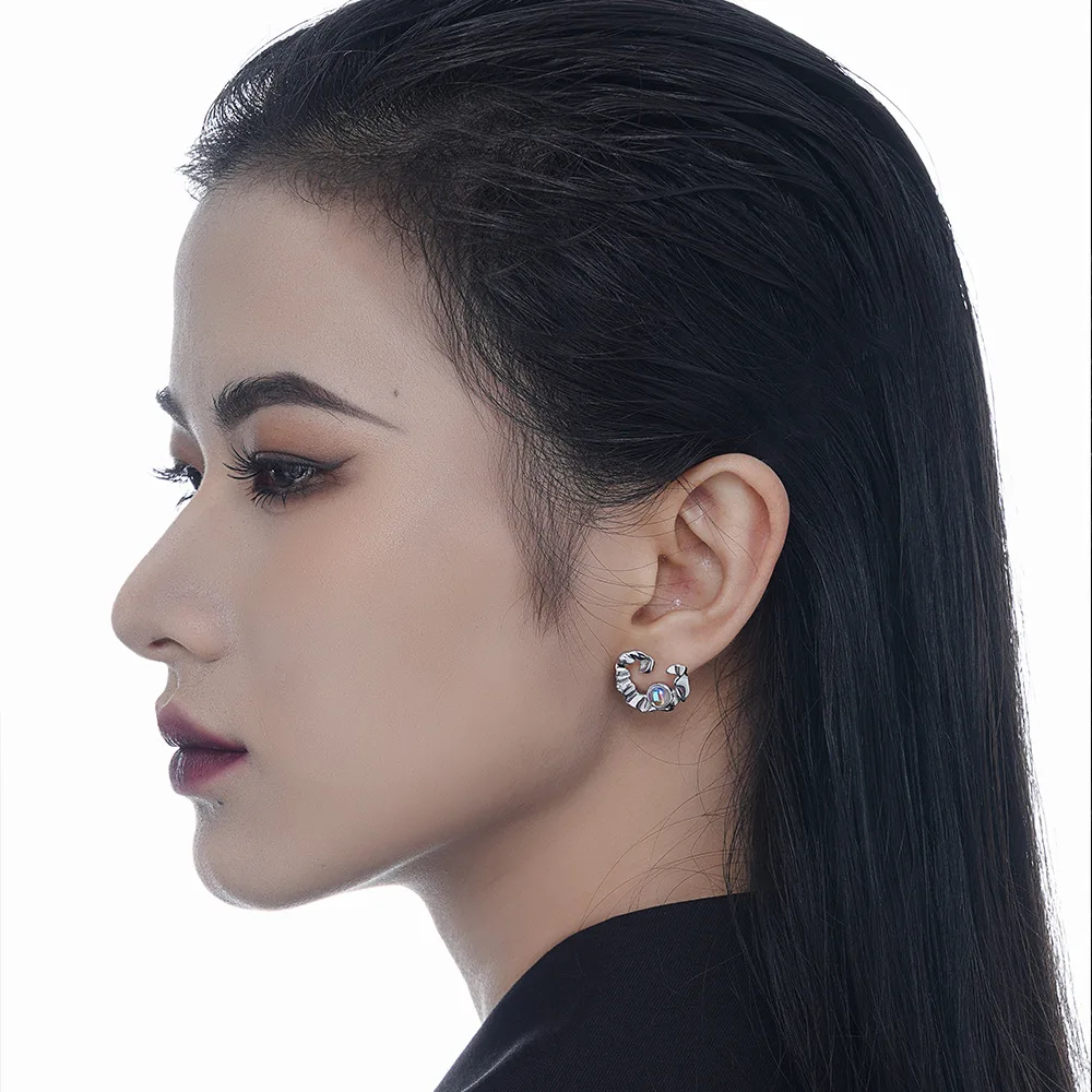 MLKENLY Unique 925 Sterling Silver Gradient Moonstone Stud Earrings Women’s Irregular Origami Texture Earring Jewelry