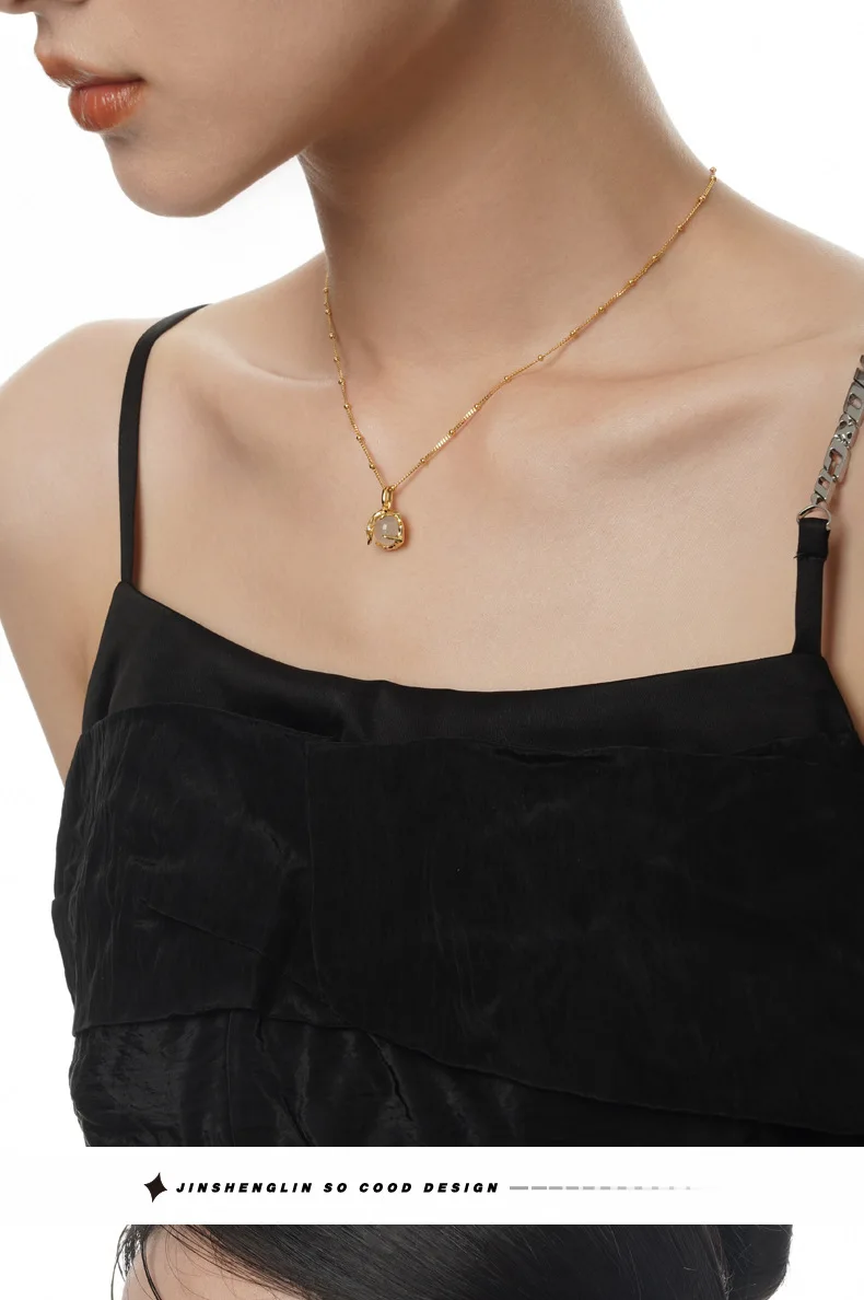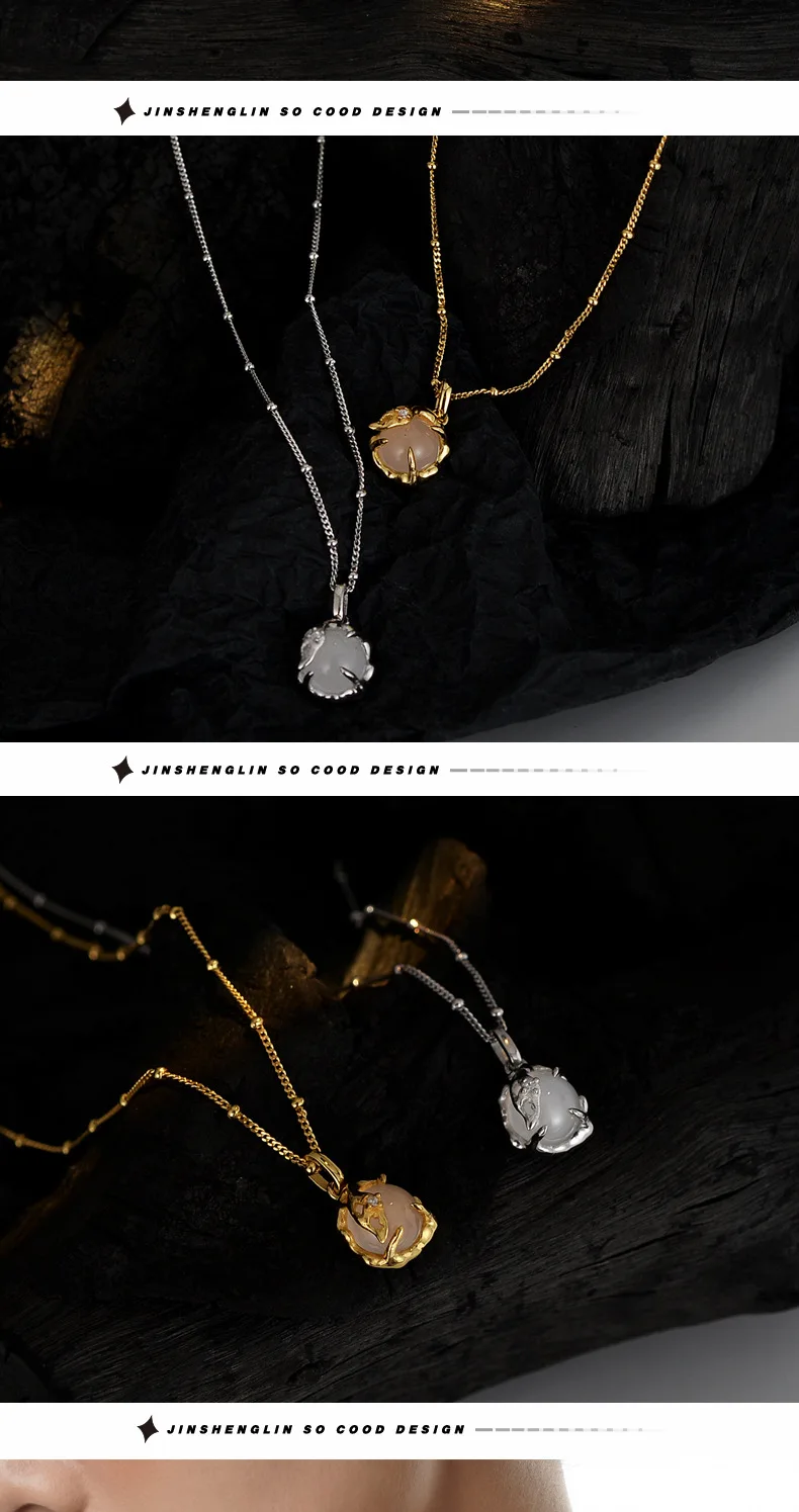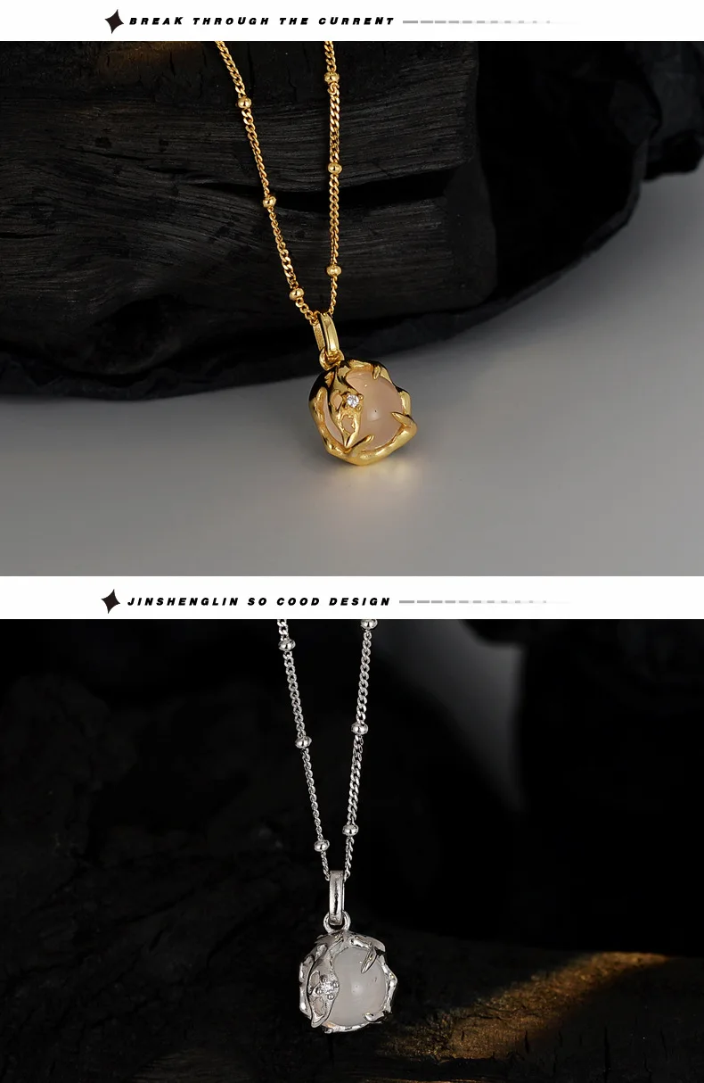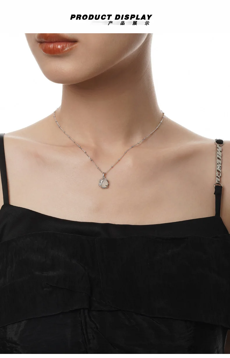 MLKENLY Zircon Micro Inlaid White Agate Necklace f...