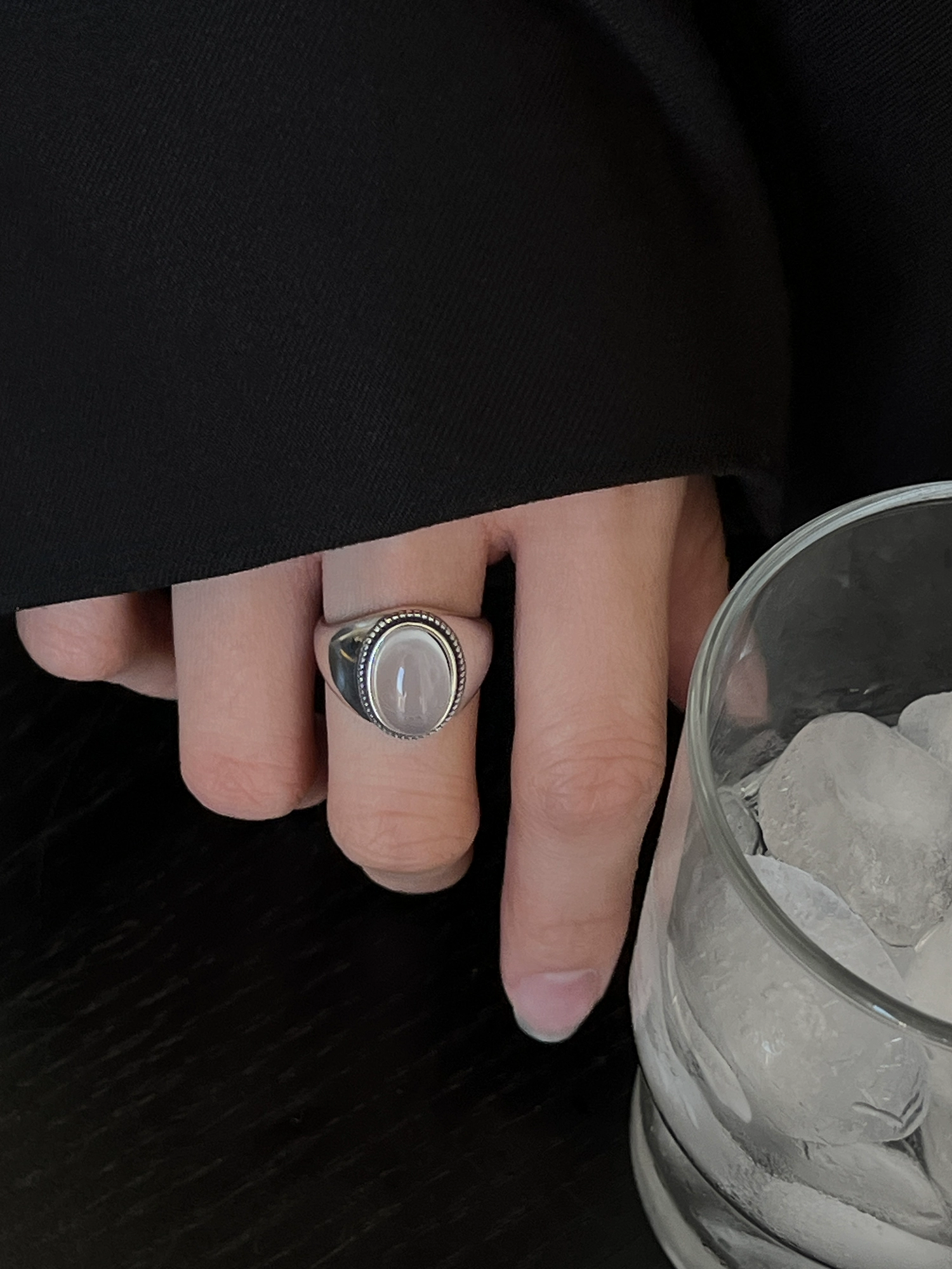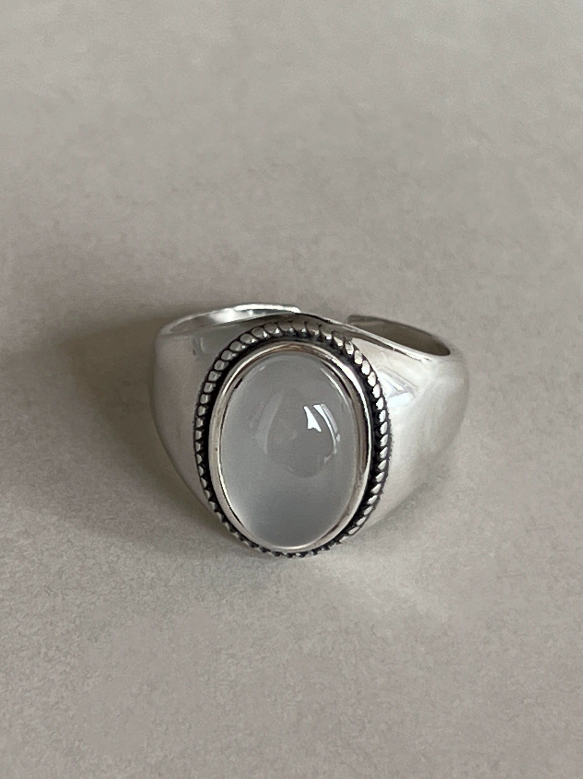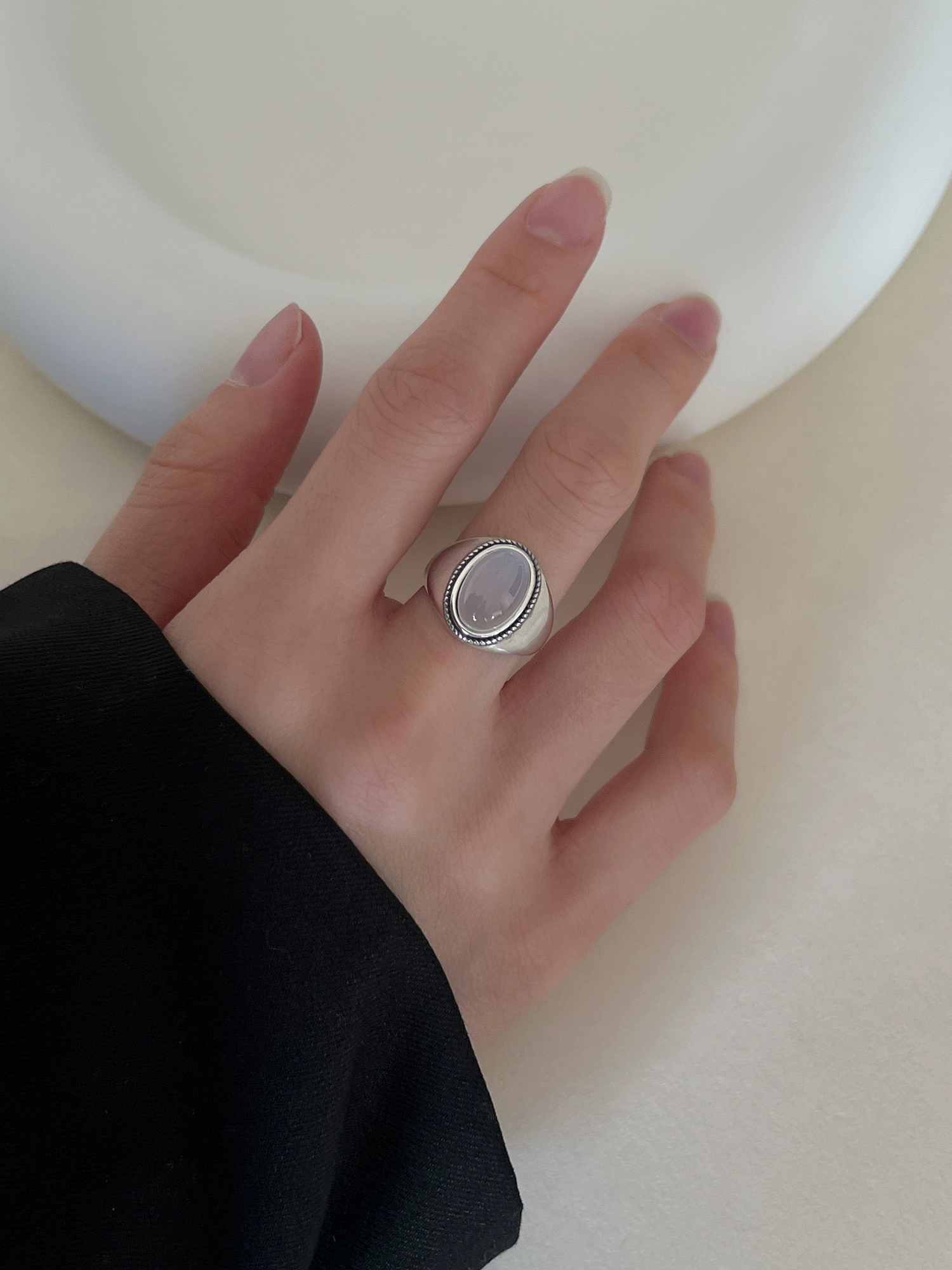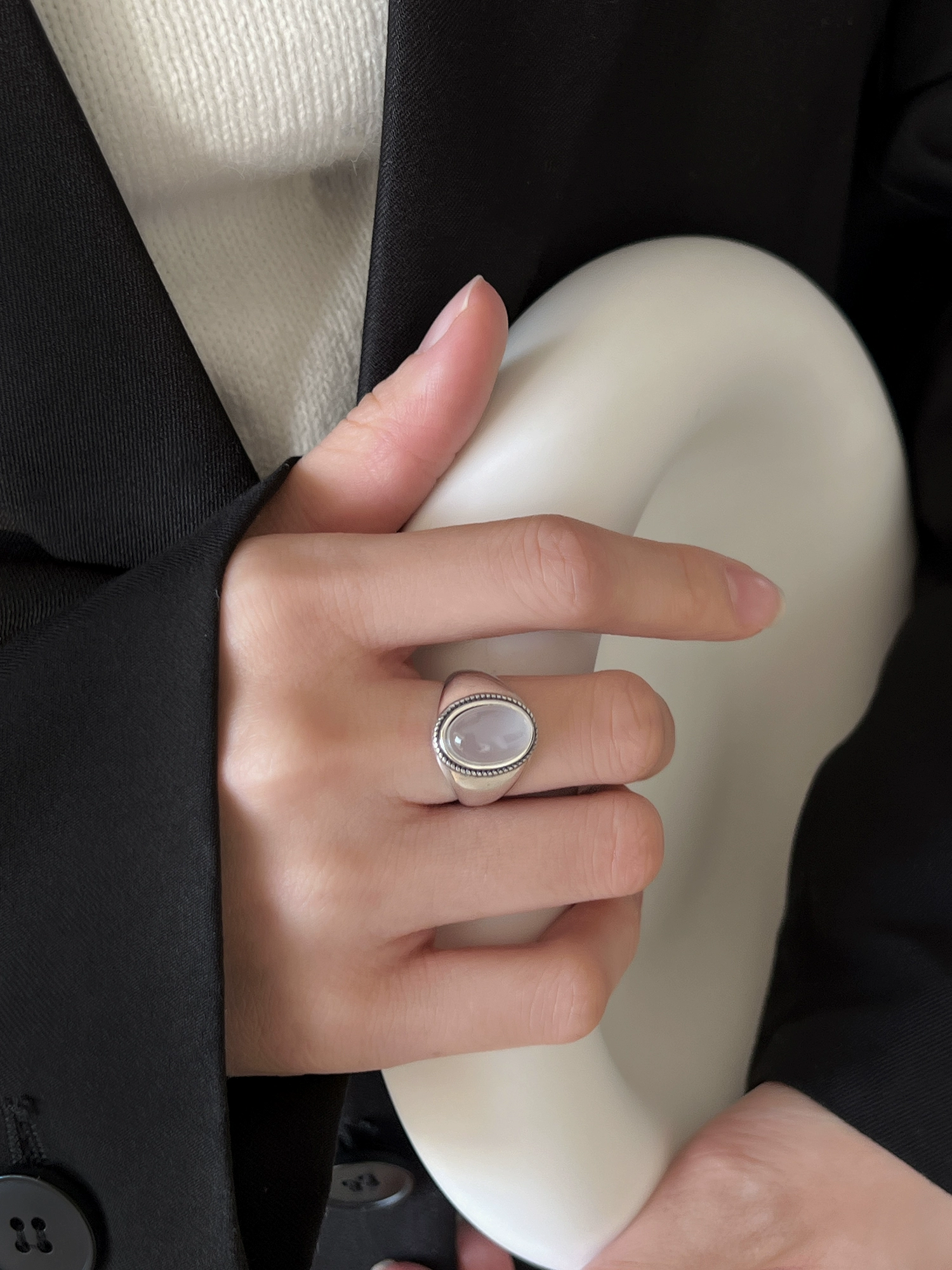 Niche design sense ins simple retro white agate ring women’s 925 sterling silver high-end fashion index finger ring trend